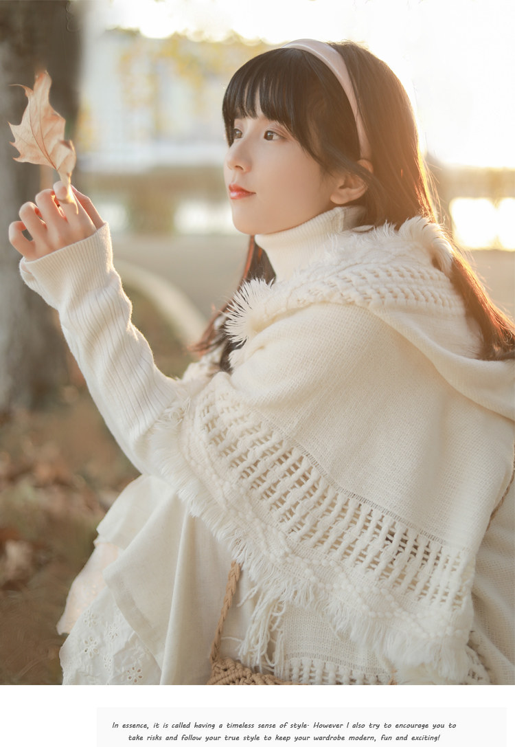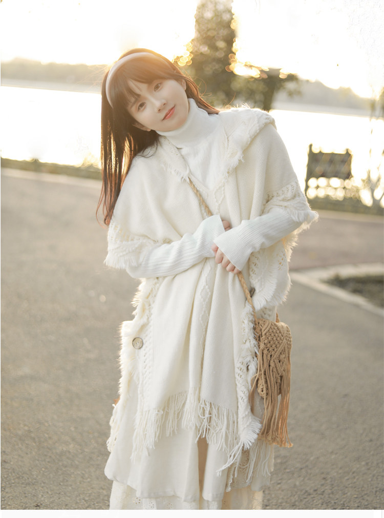 森系披肩波西米亞流蘇毛衣針織衫雲南青海旅遊套頭連帽鬥篷春秋女