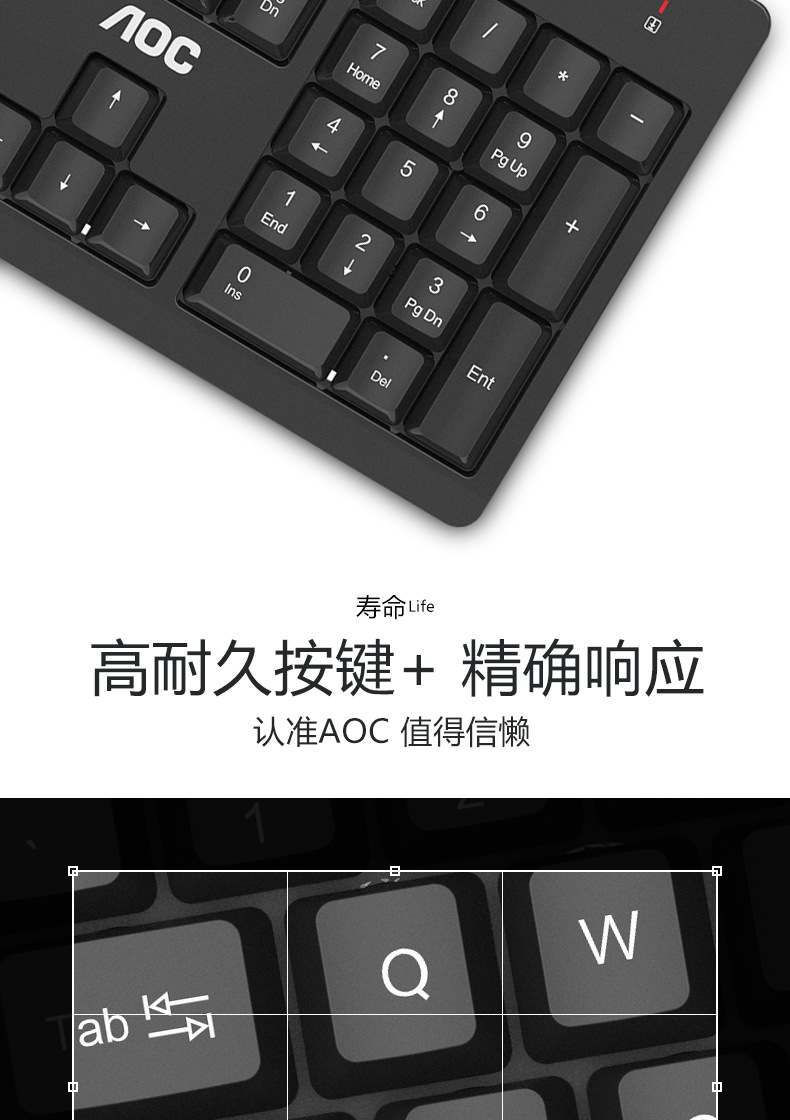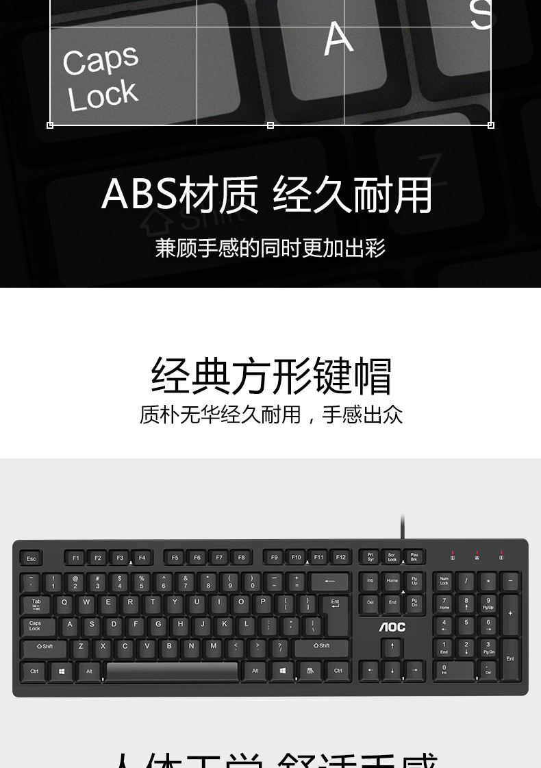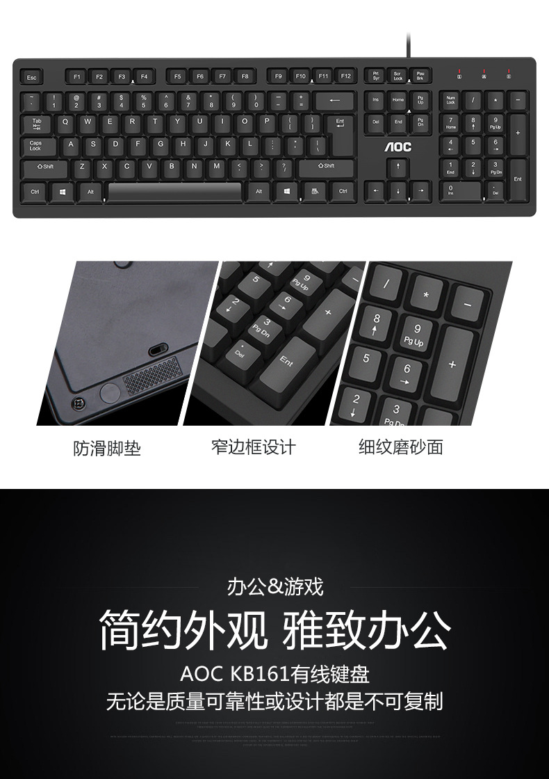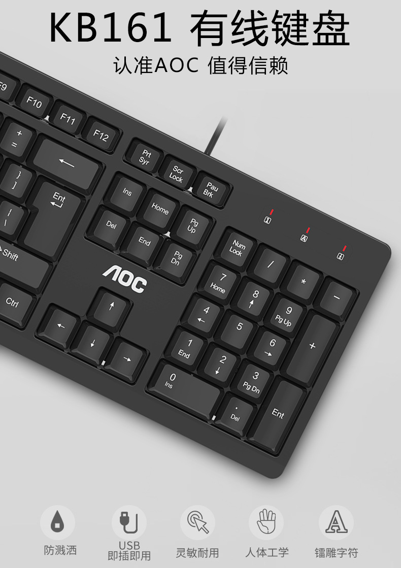 AOC KB161有线单键盘 USB笔记本台式电脑商务办公便携通用键盘