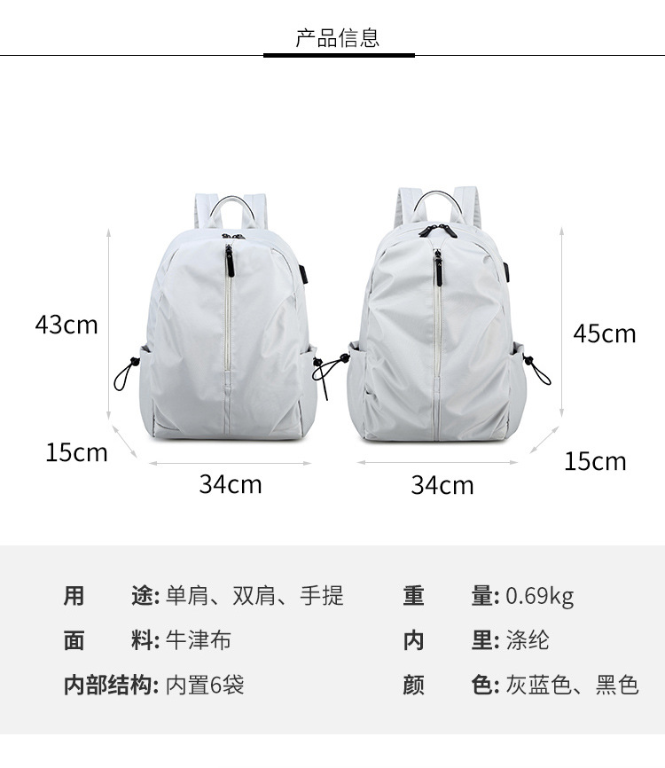 牛津布多功能旅行双肩包大容量轻便USB时尚电脑包14寸女休闲背包