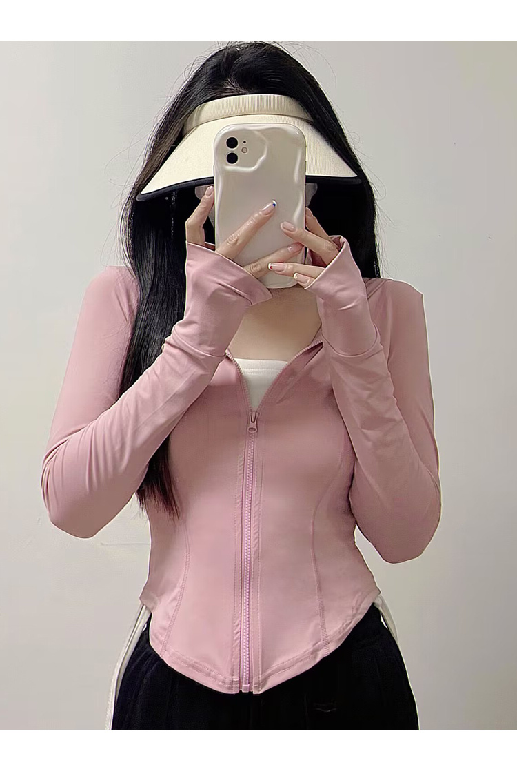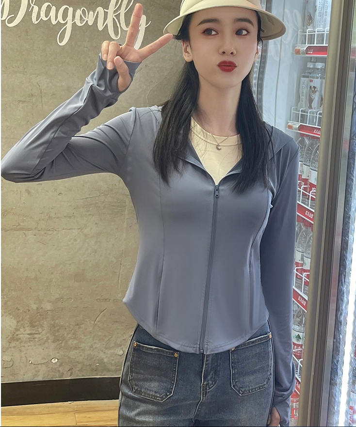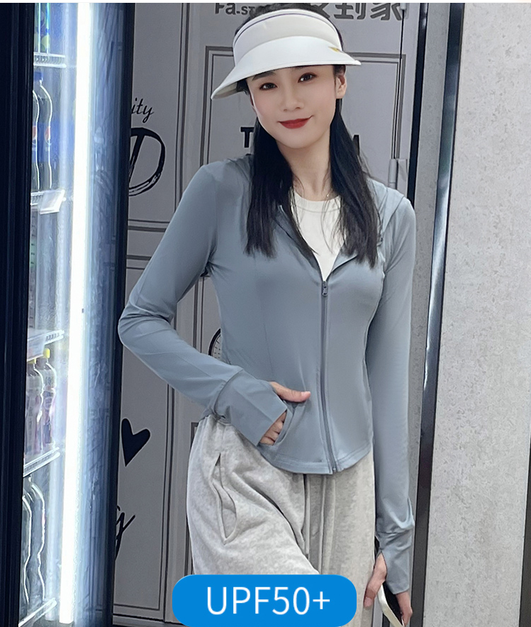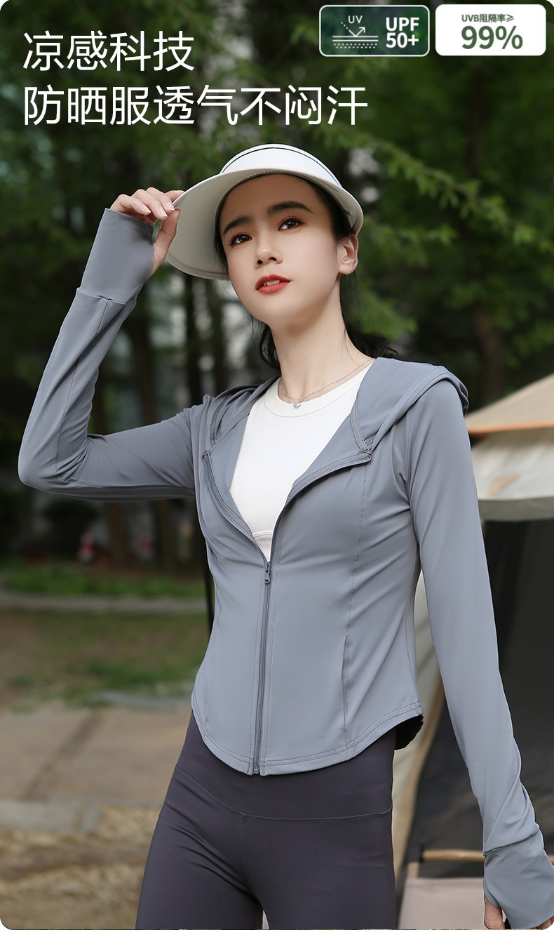 lulu同款防曬衣女夏季新款緊身立領冰絲瑜伽服抗UV修身薄外套