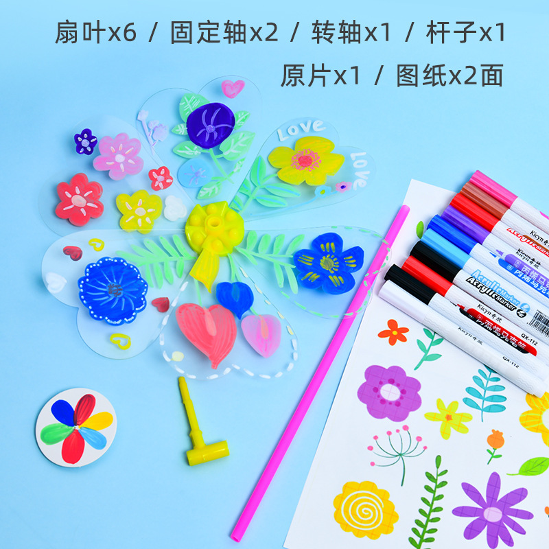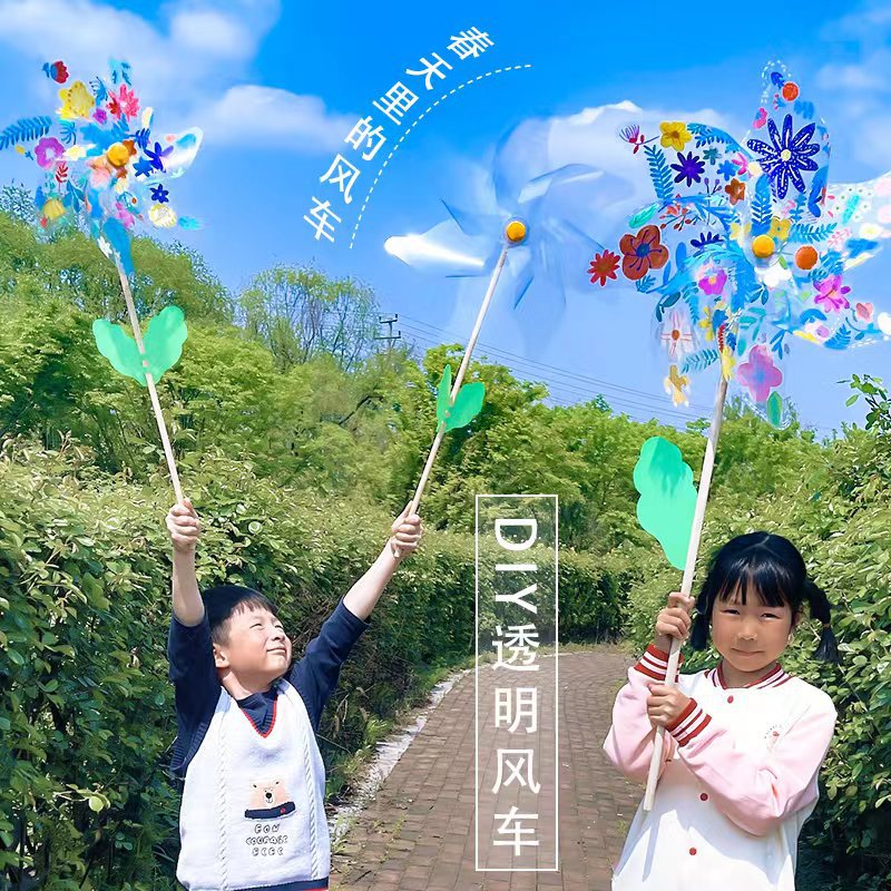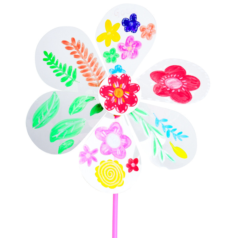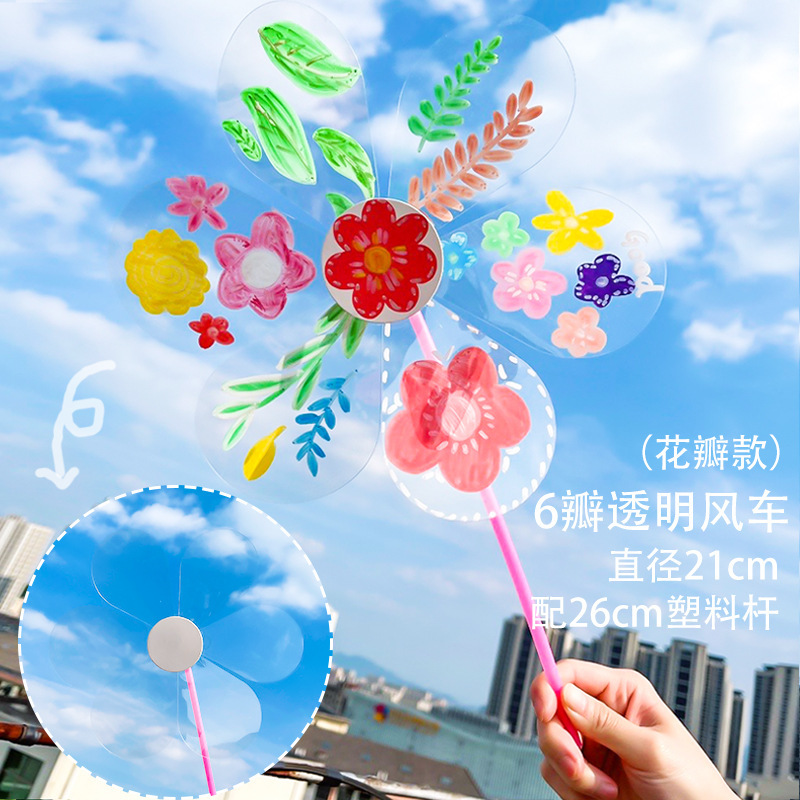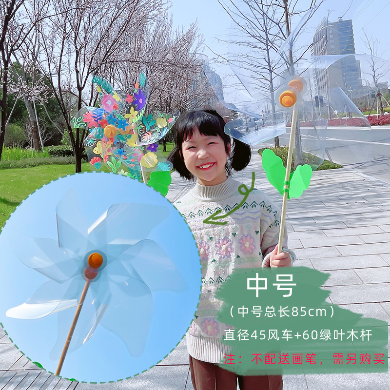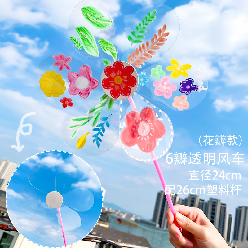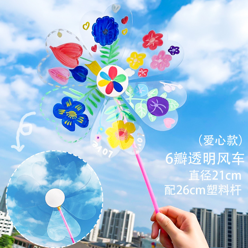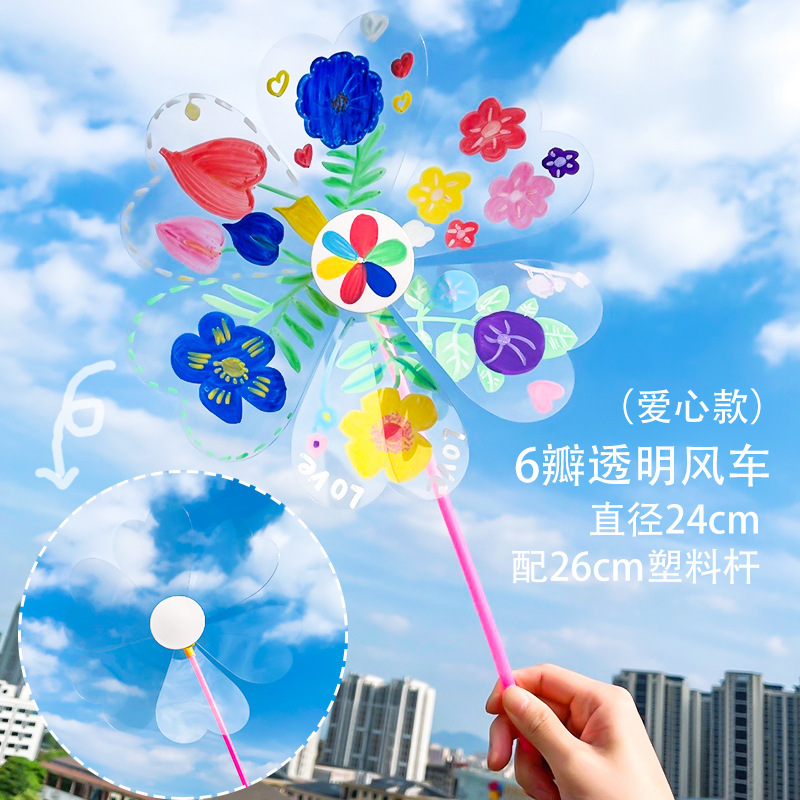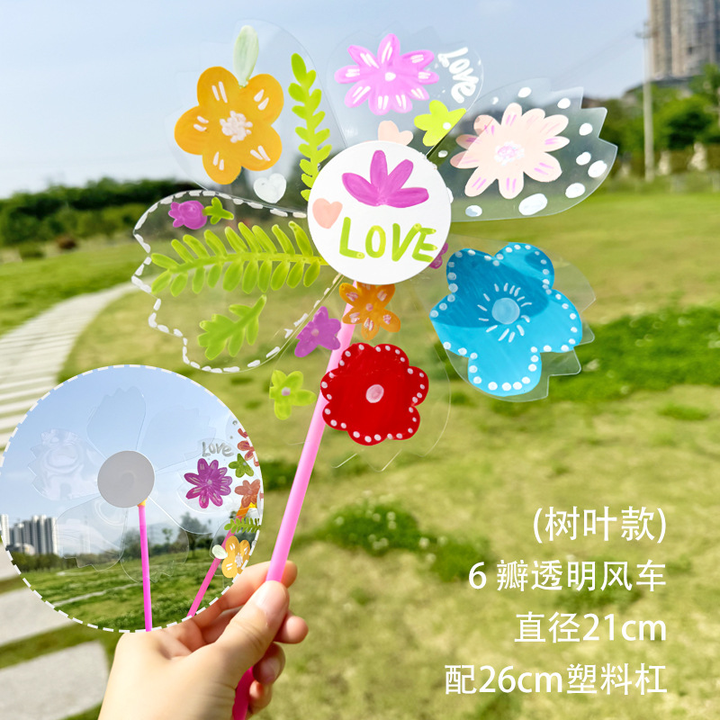 透明风车户外小玩具儿童diy手工涂鸦手绘宝宝手持旋转塑料材料包