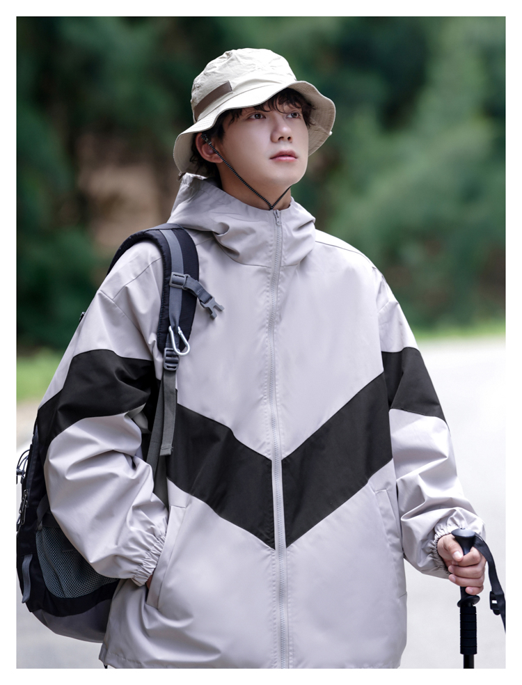 美式高街山系機能防曬服高級拼色男女秋登山戶外透氣衝鋒衣外套