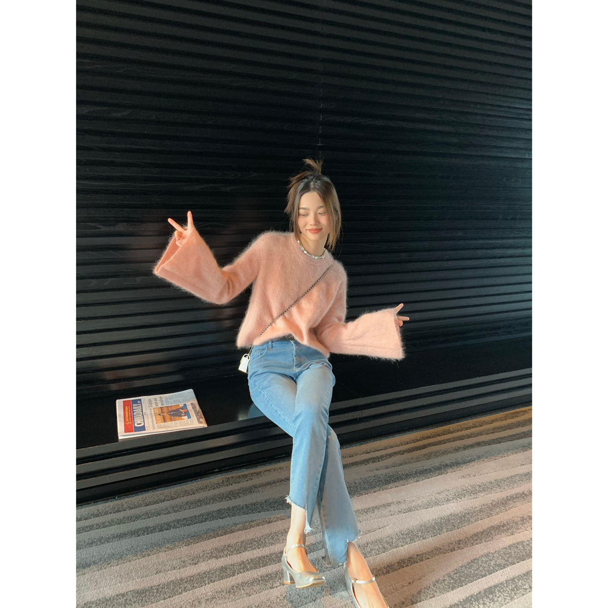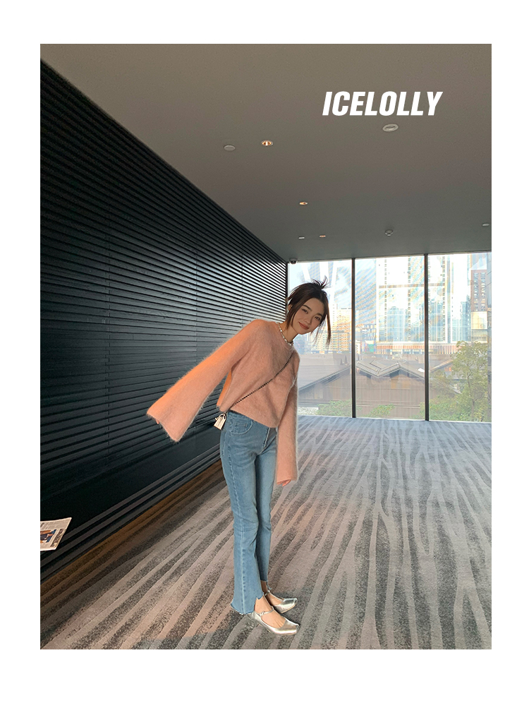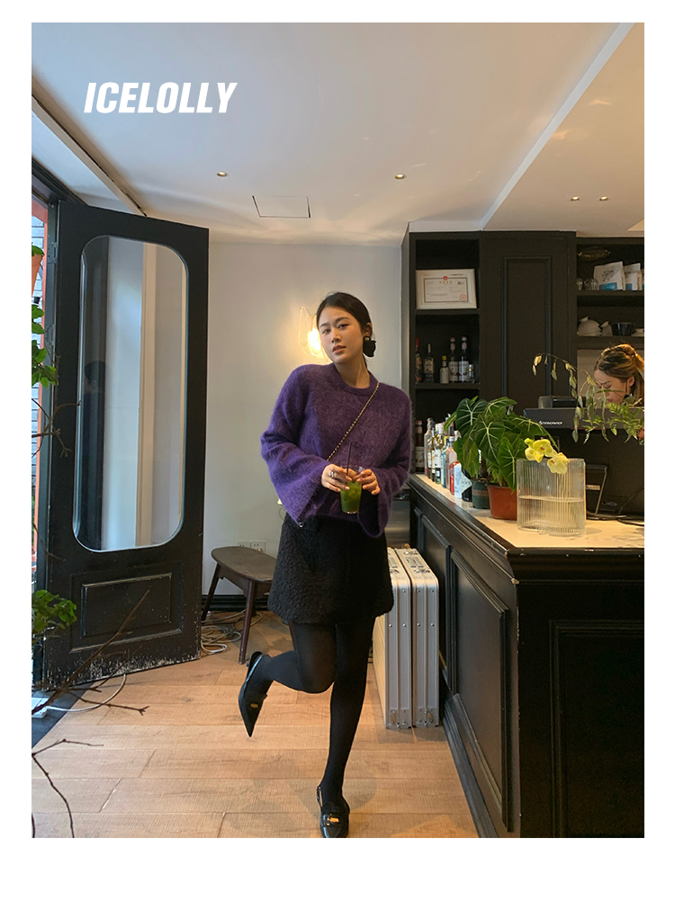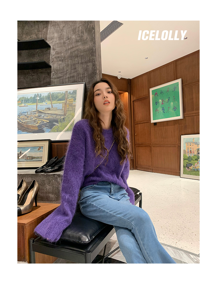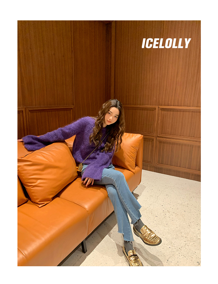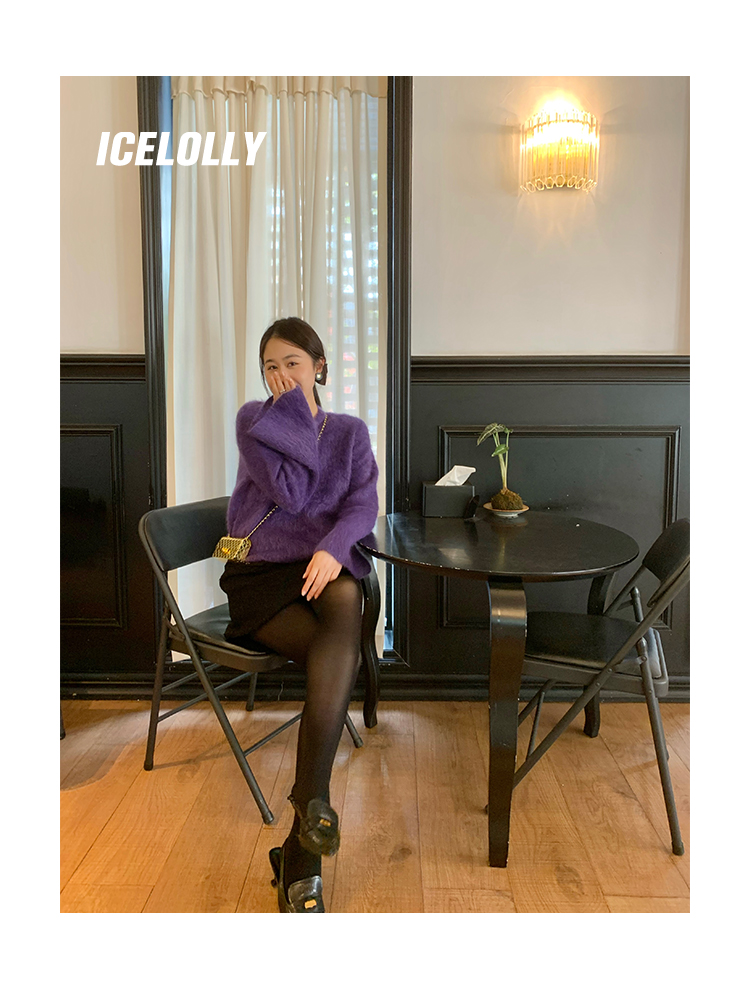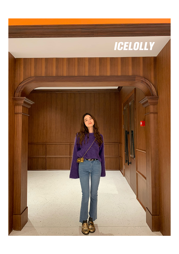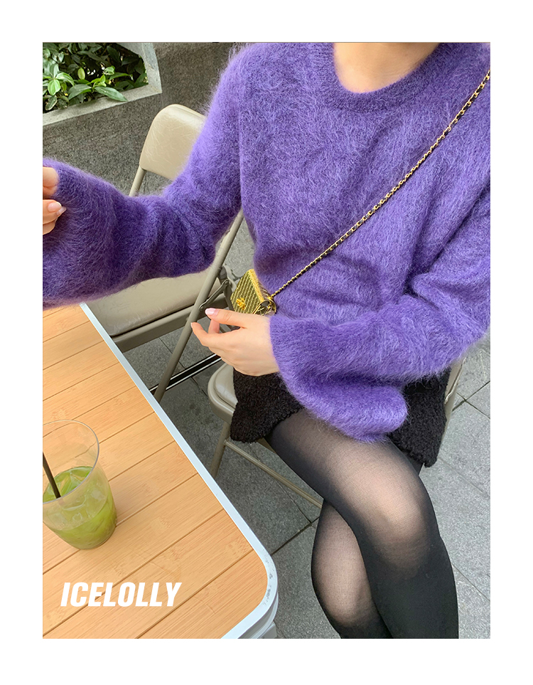 ICELOLLY溫柔風短款灰色馬海毛毛衣女秋冬打底羊毛內搭針織衫上衣