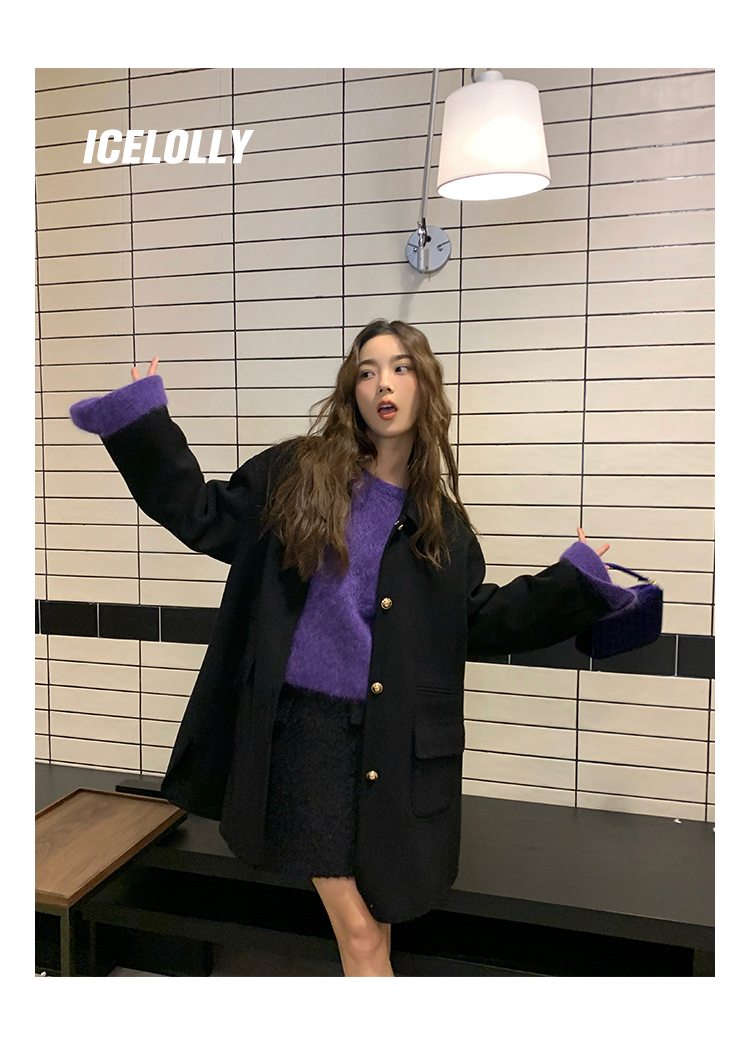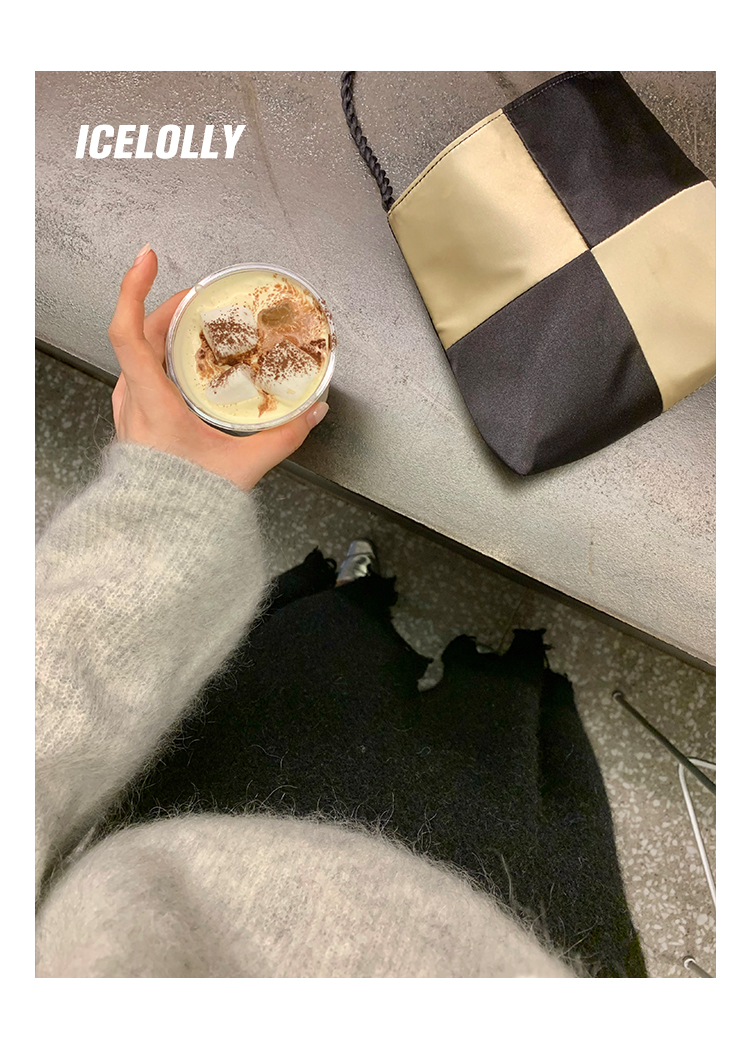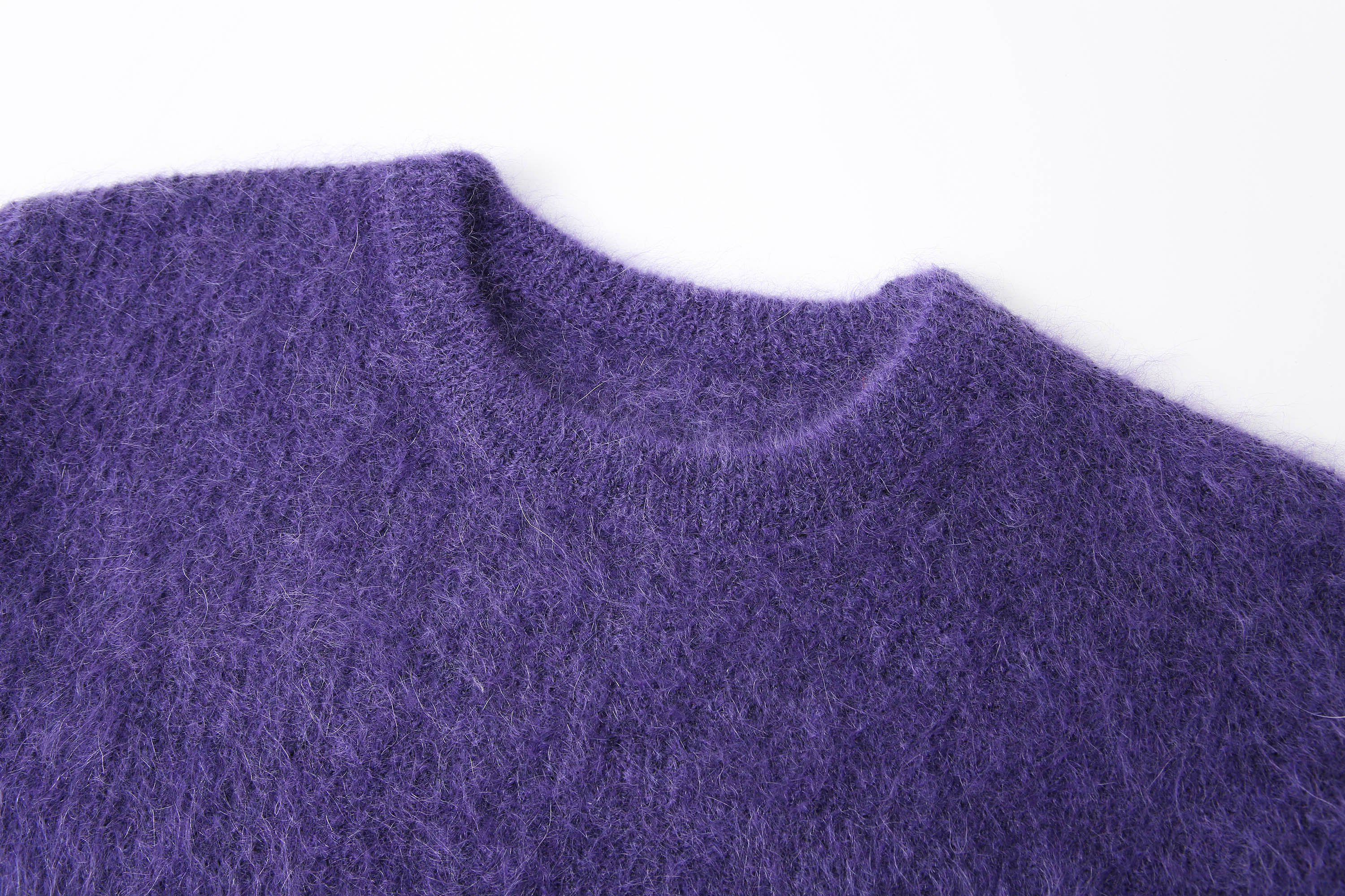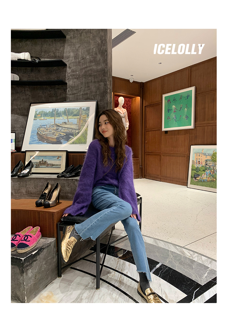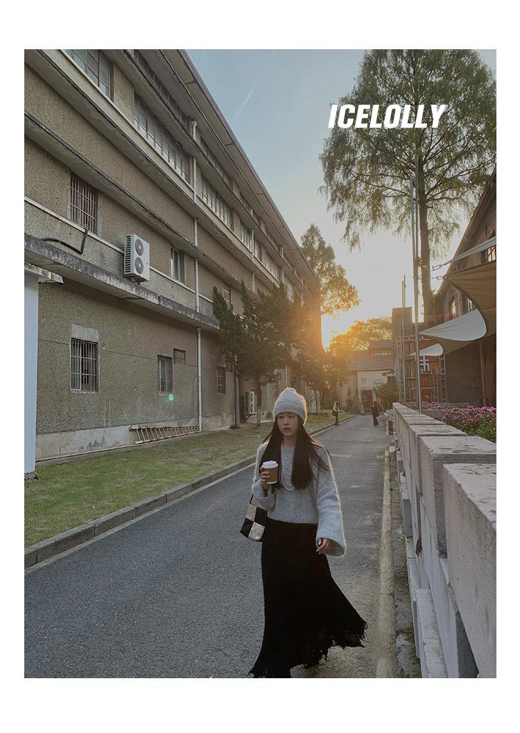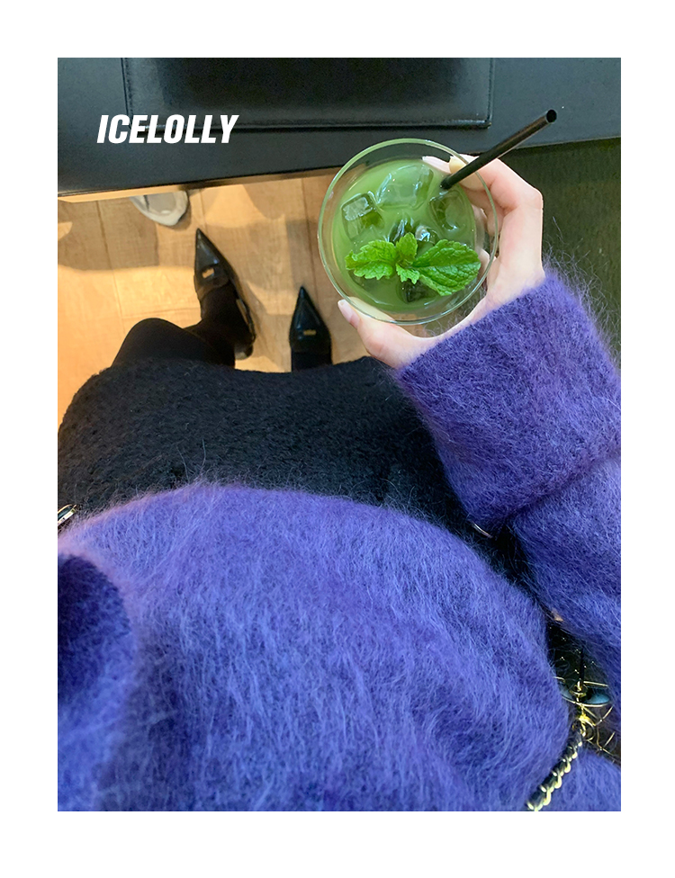 ICELOLLY溫柔風短款灰色馬海毛毛衣女秋冬打底羊毛內搭針織衫上衣