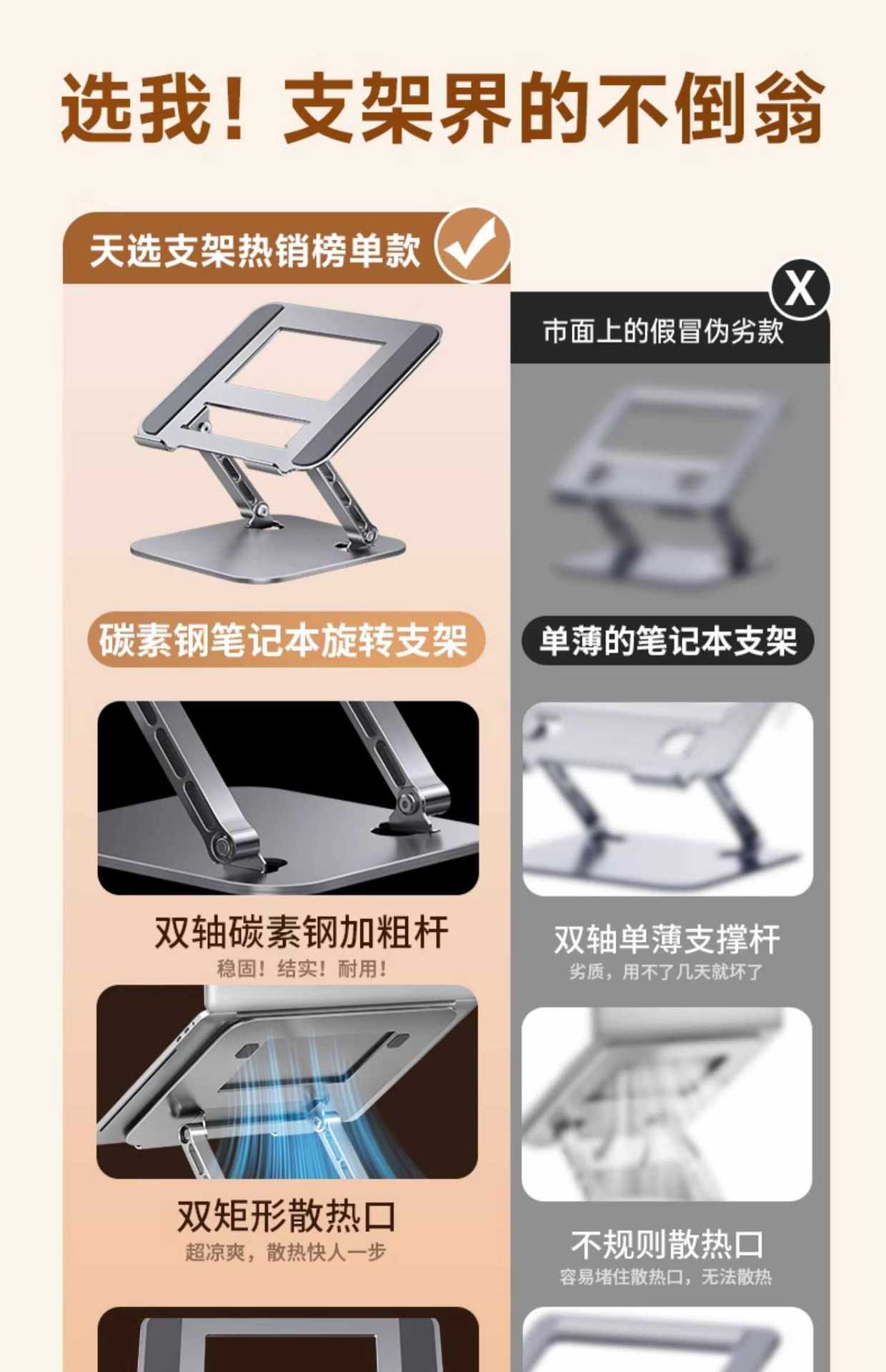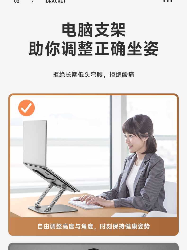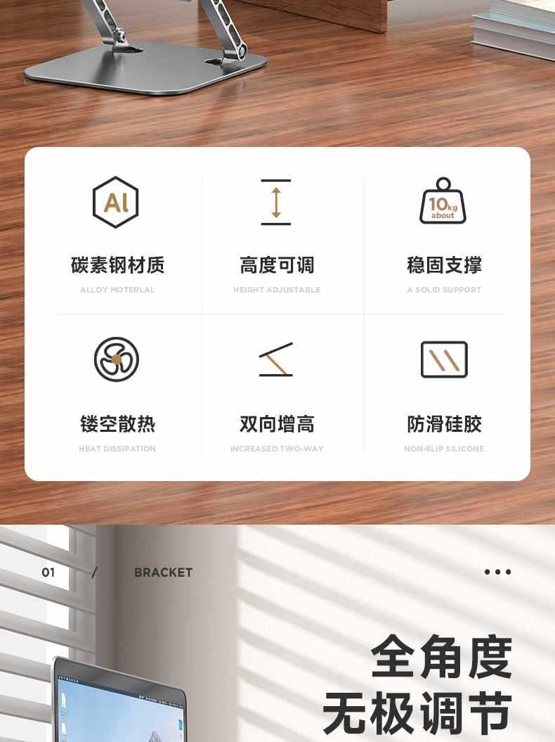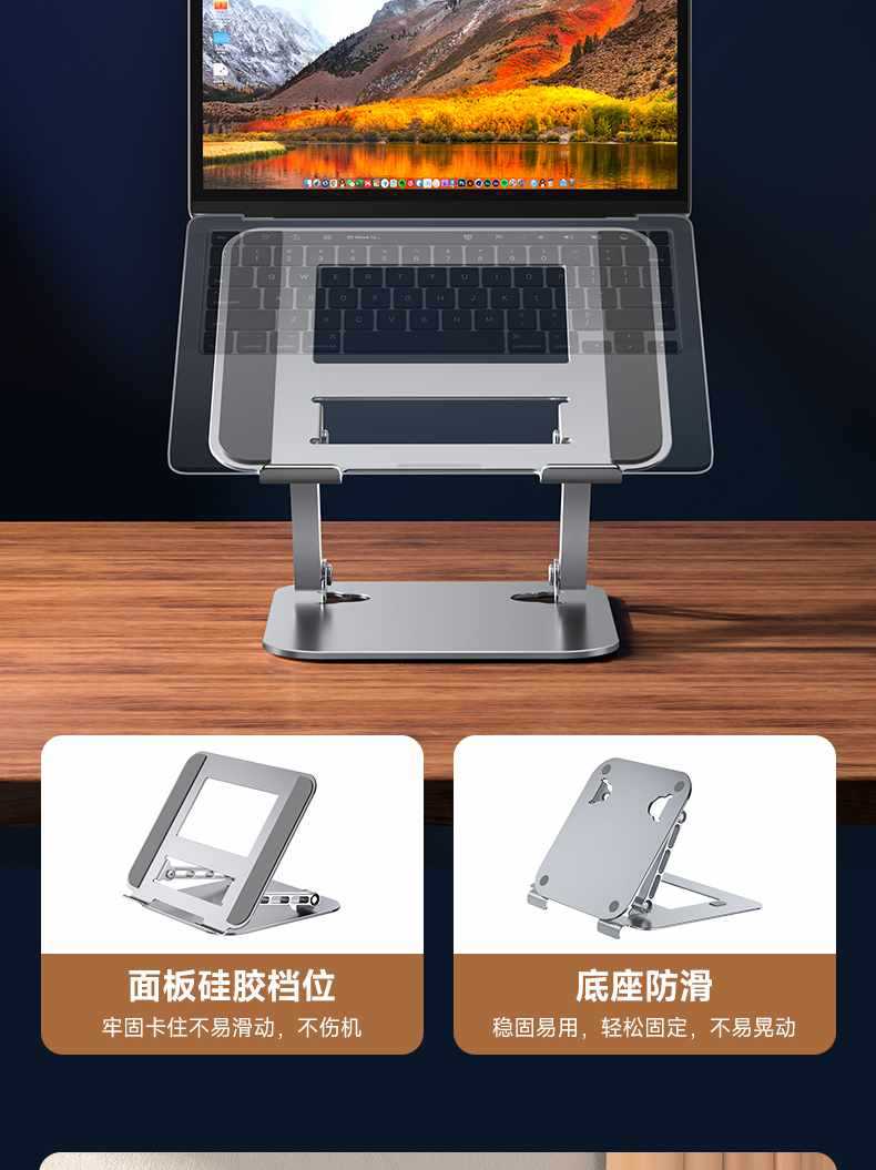 笔记本支架抬高散热式铝合金增高架升降底座手提折叠支架办公升高