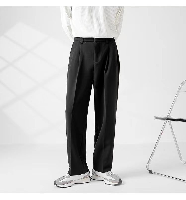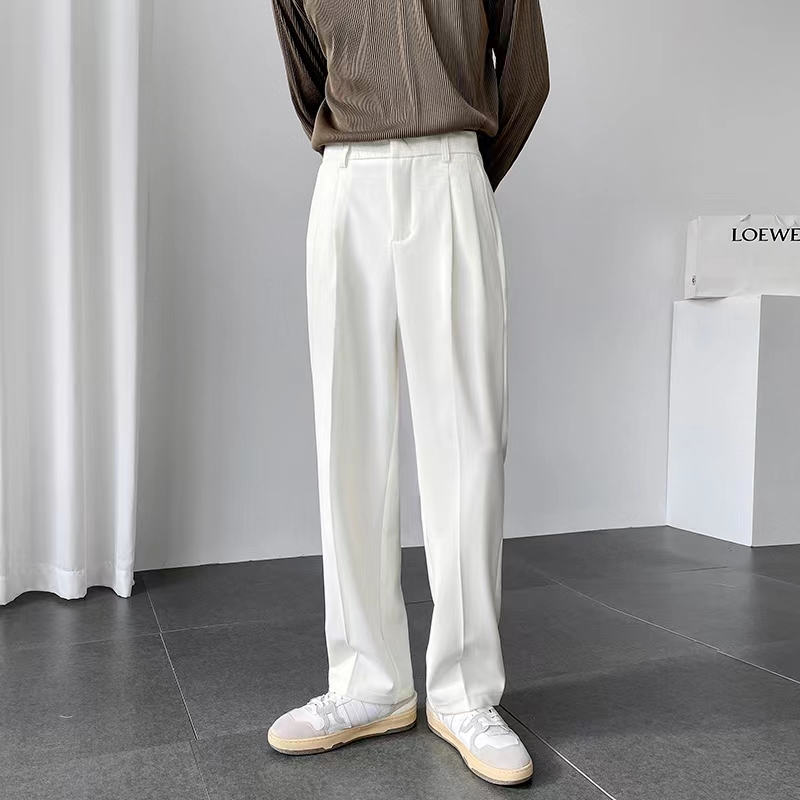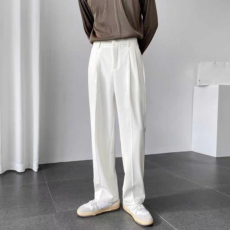 高級感白色褲子男韓版潮流垂感西褲高街休閒直筒褲