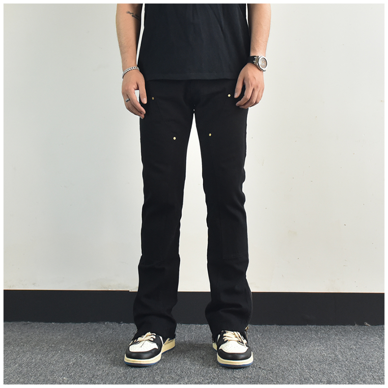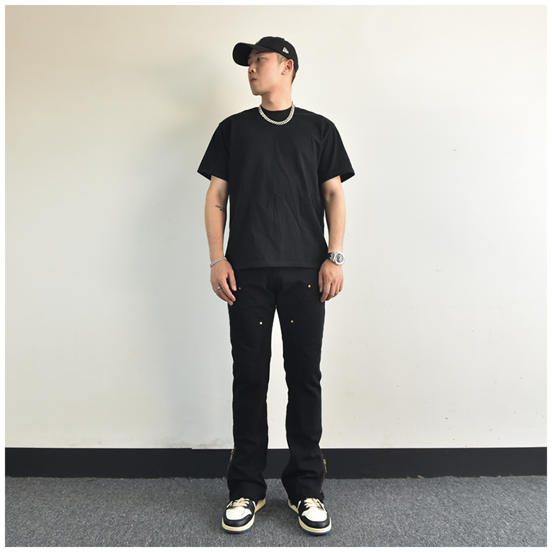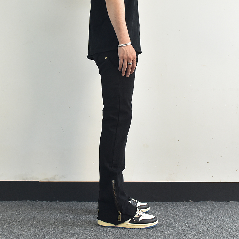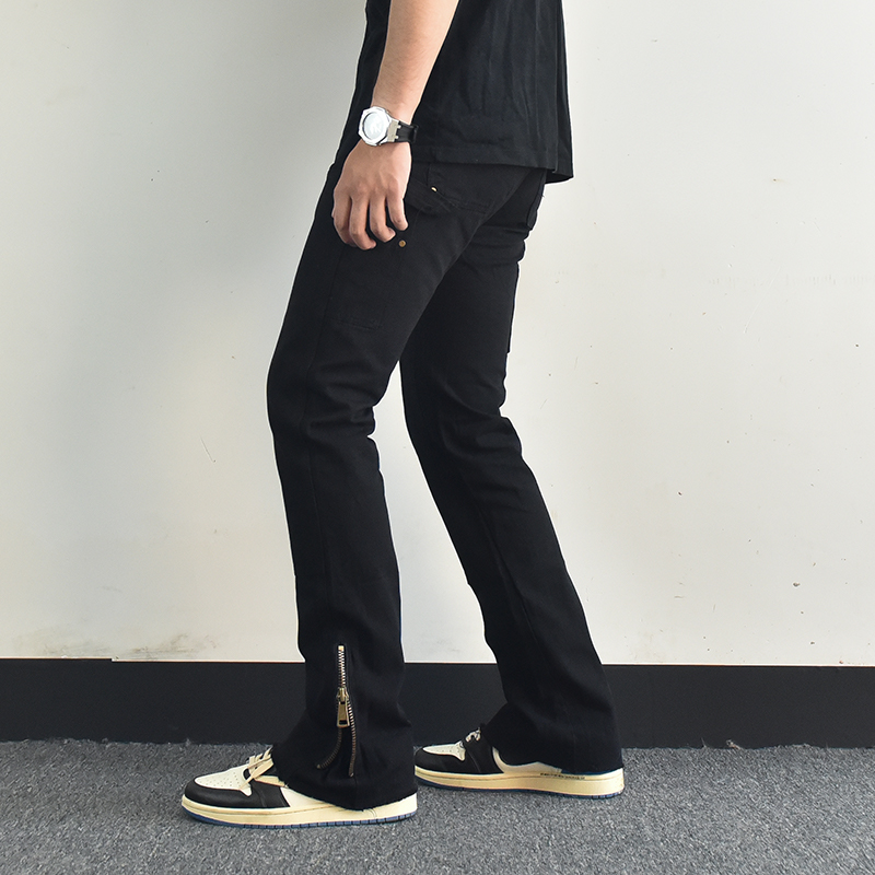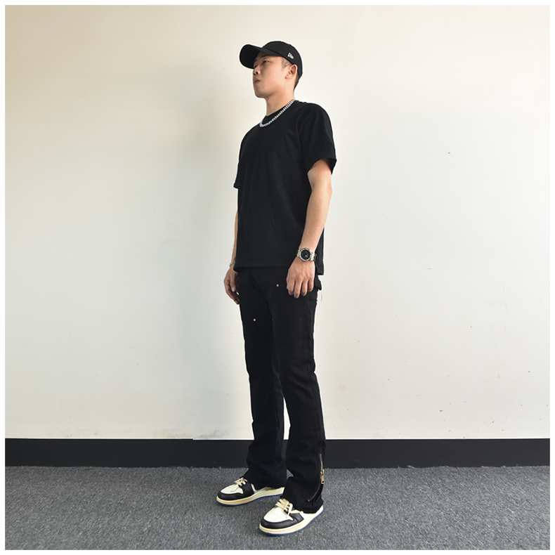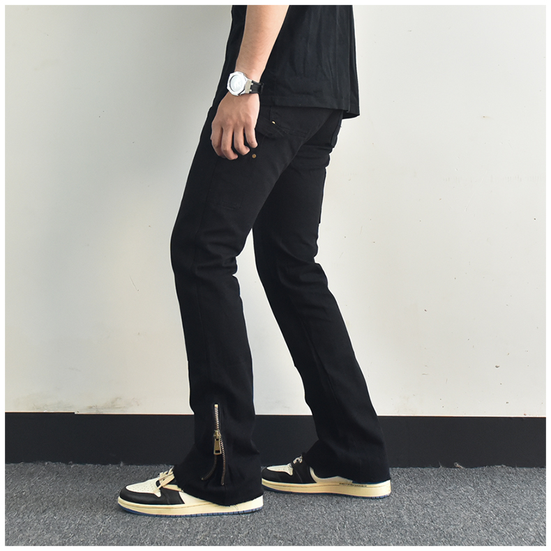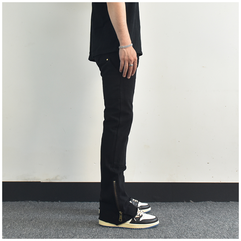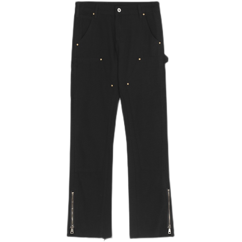歐美高街vibe風拉鍊開叉微喇叭休閒褲寬鬆白色美式潮牌工裝褲子男