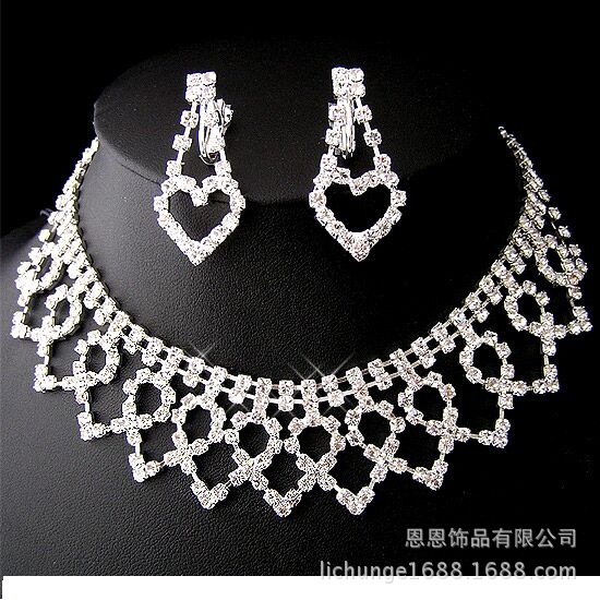 厂家直销热卖欧美时尚镶钻百搭项链爱心满钻新娘婚纱项饰 NE0149