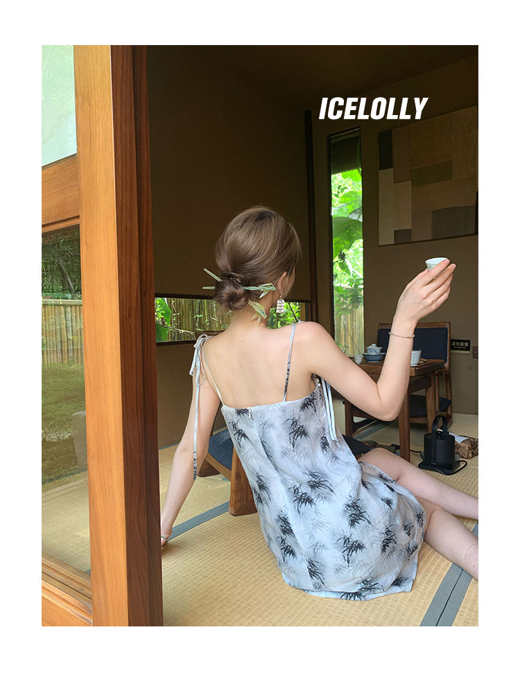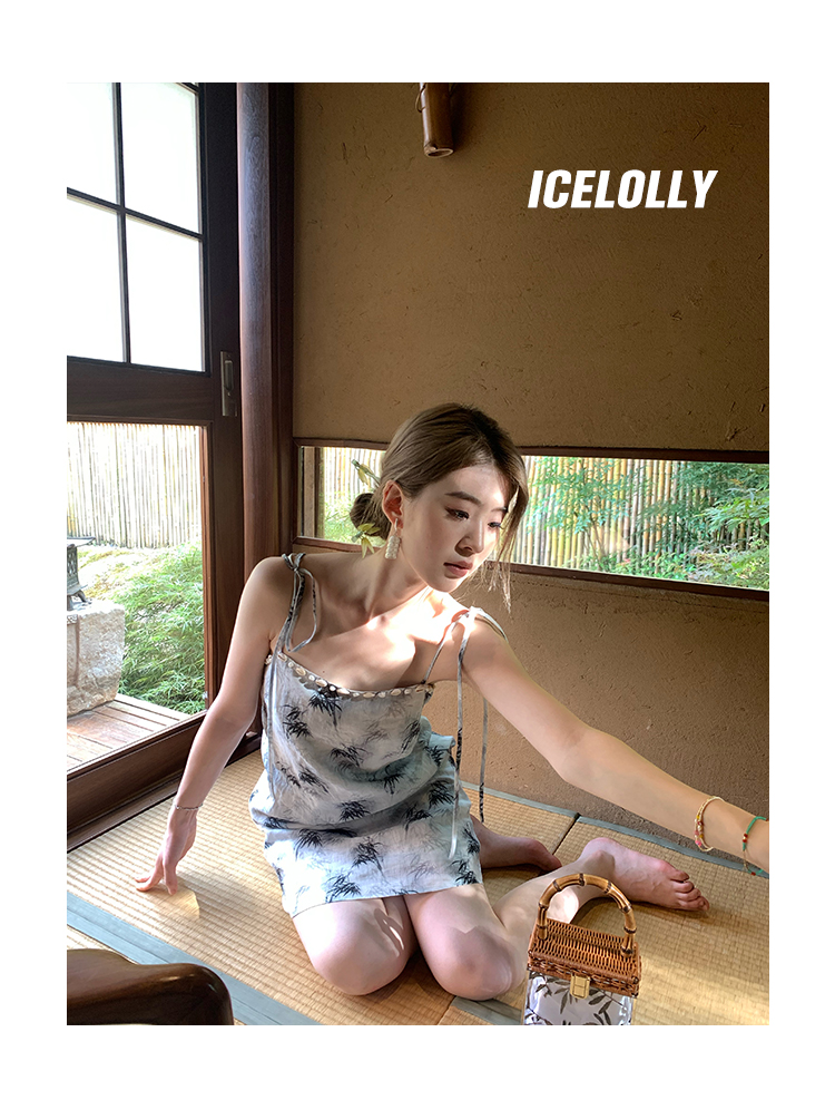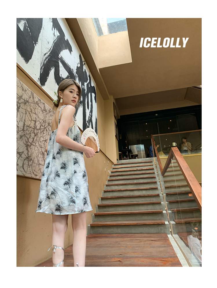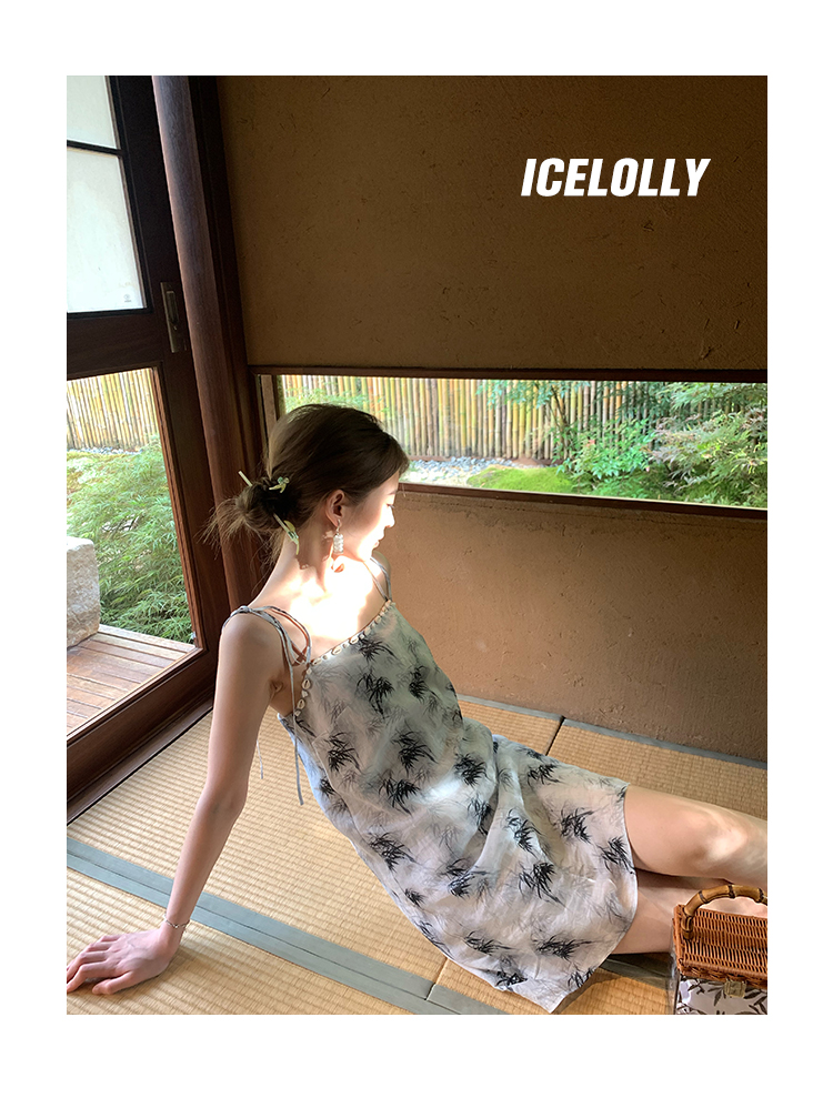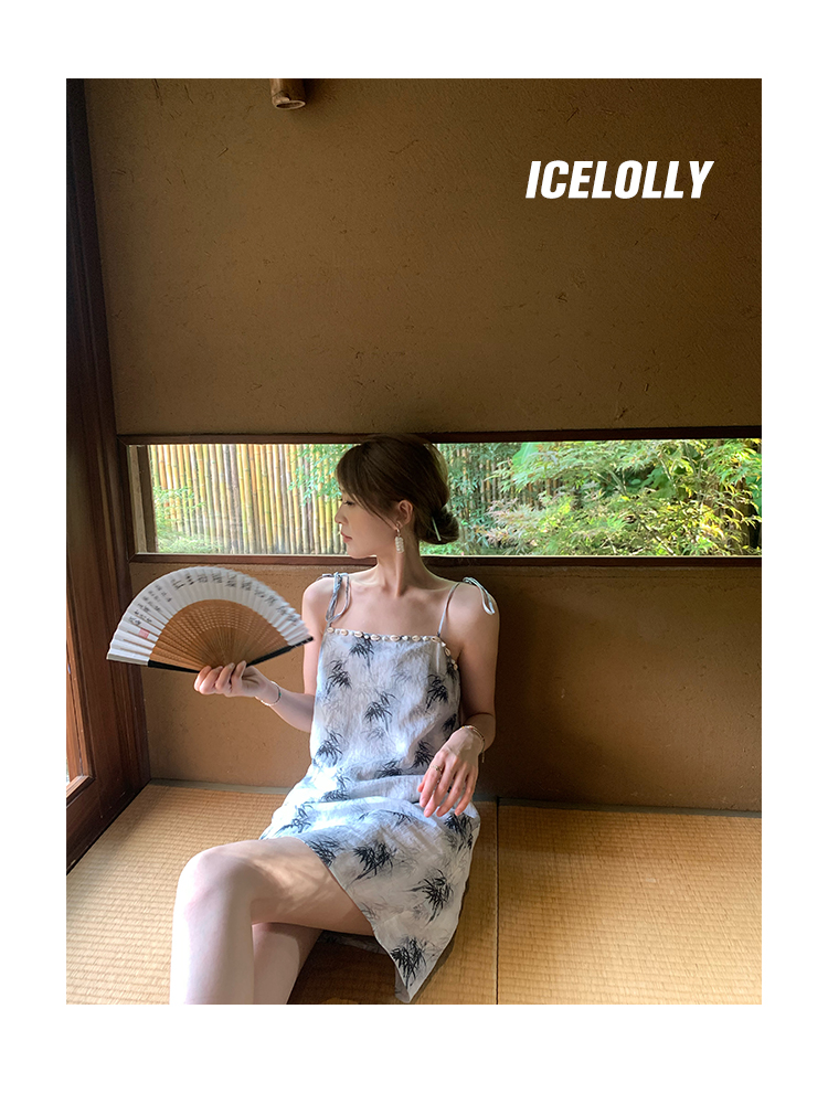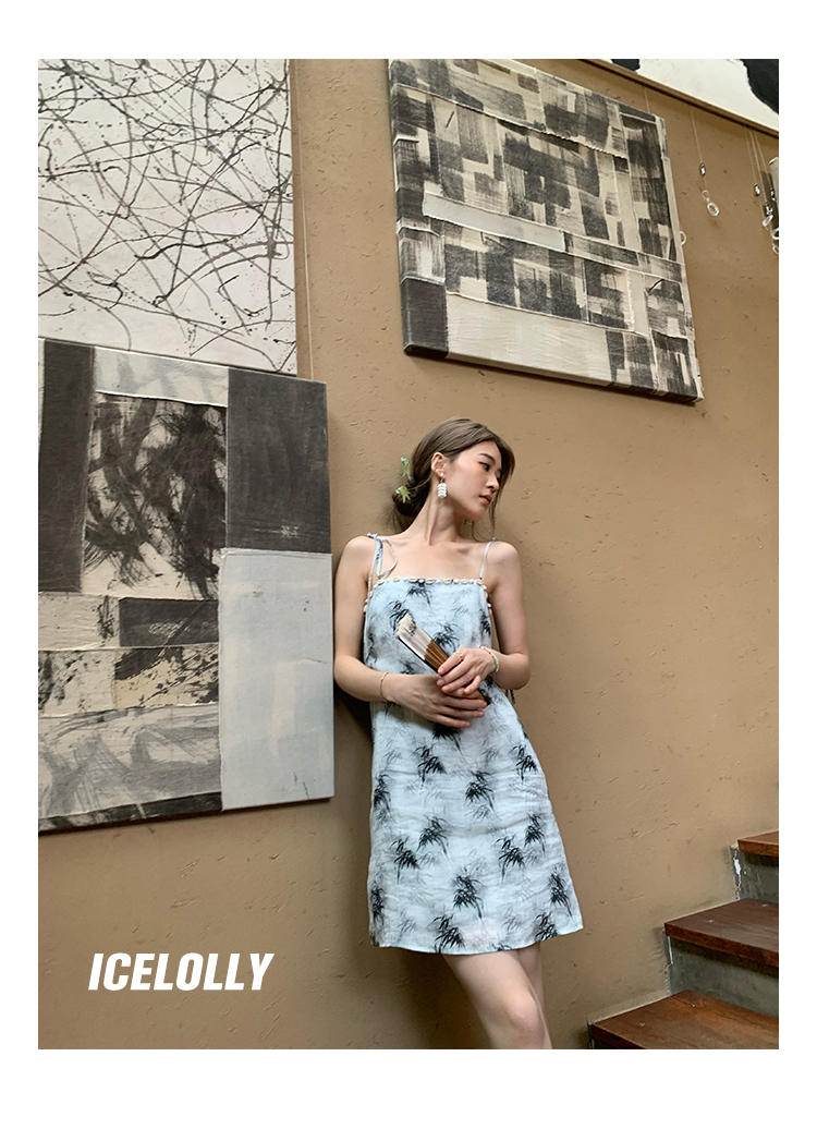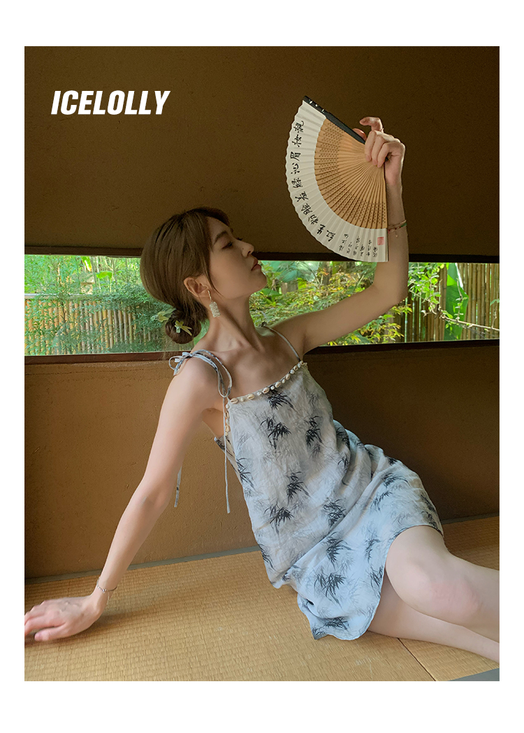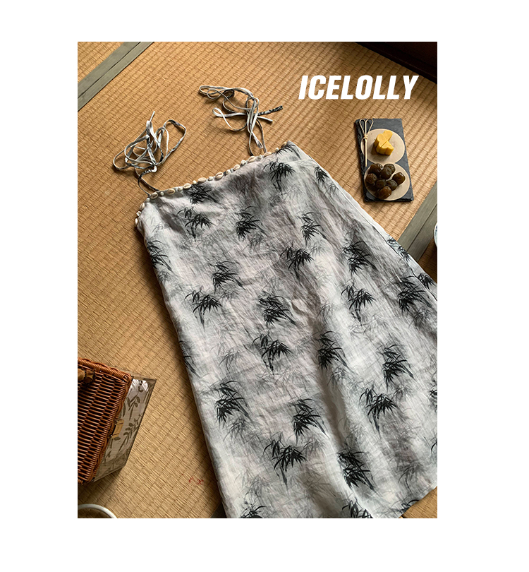 【159元福利款】ICELOLLY新中式薴麻吊帶洋裝超火國風裙子女夏