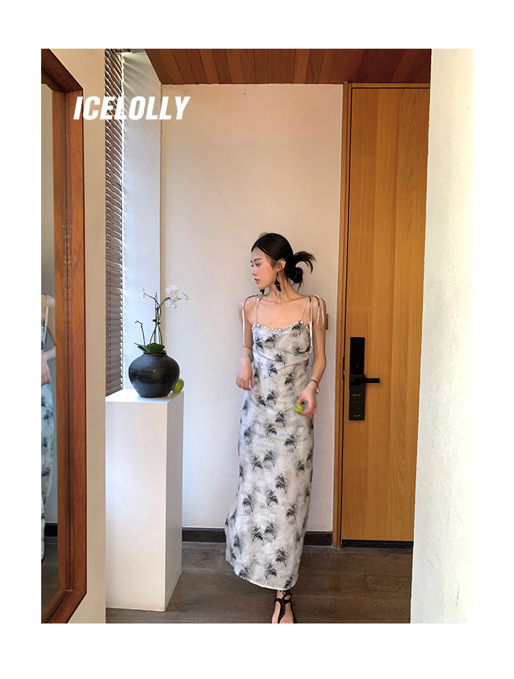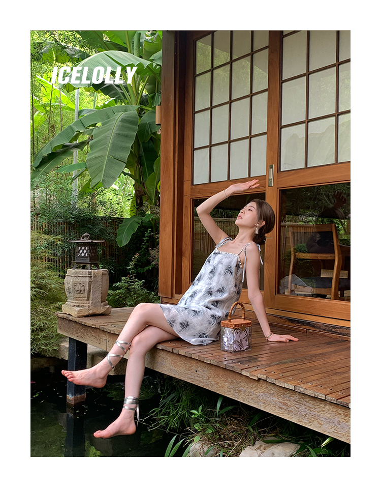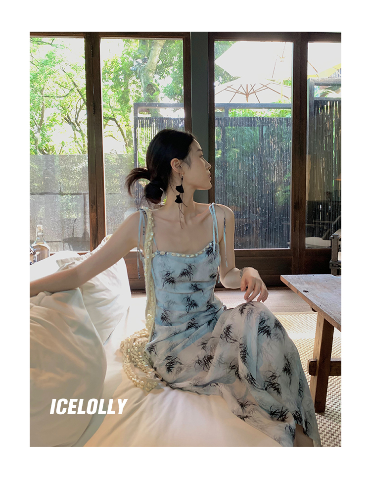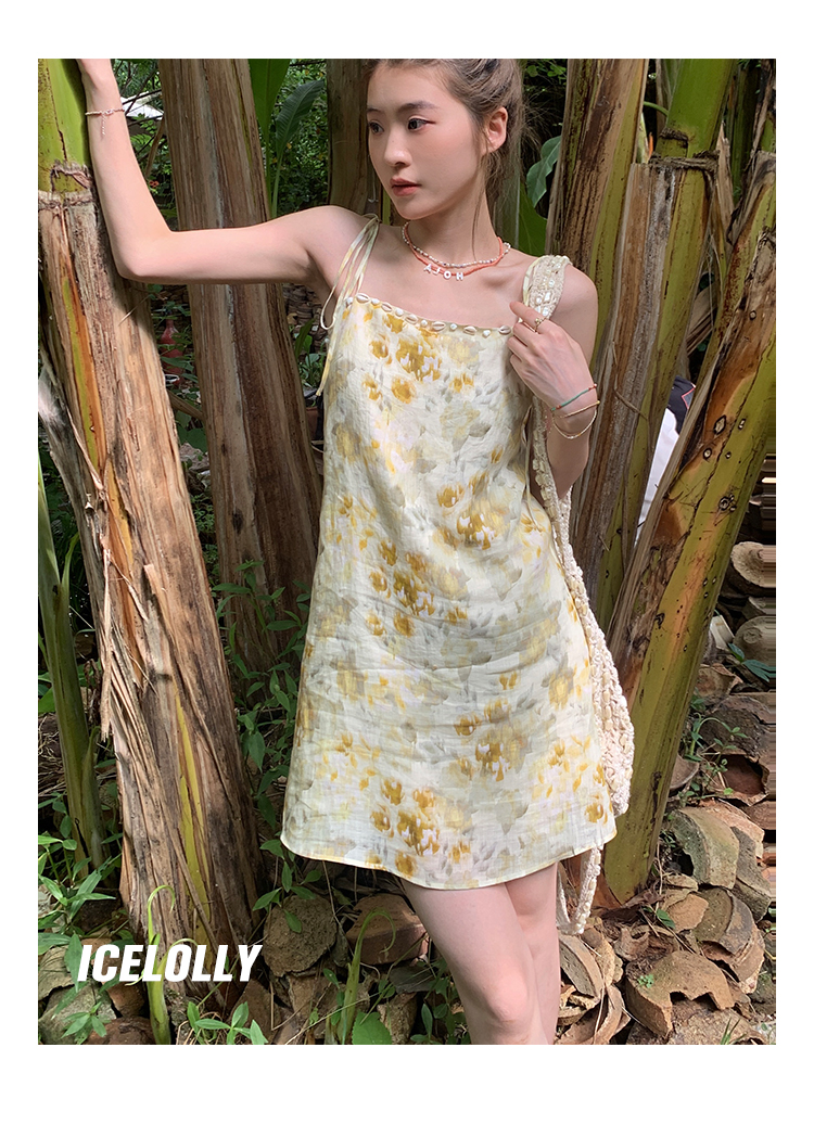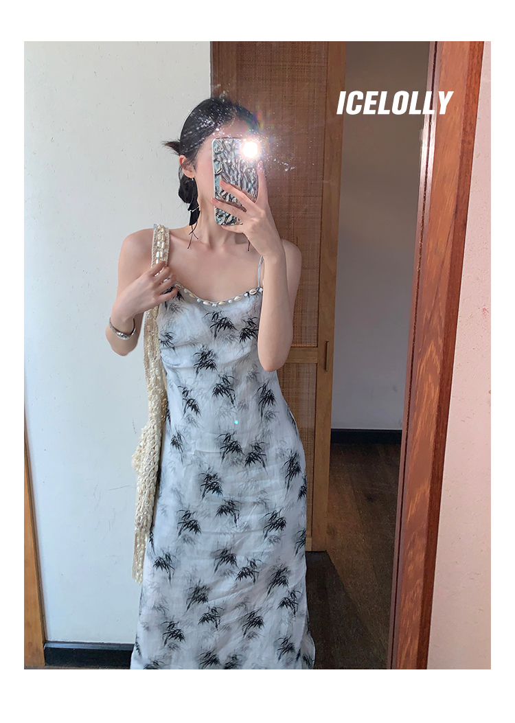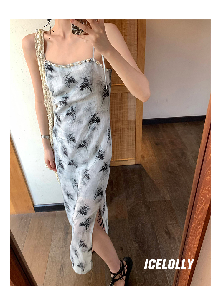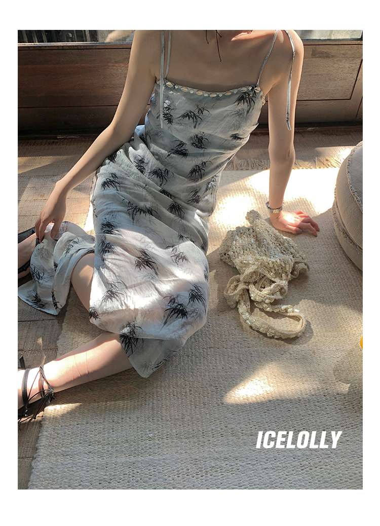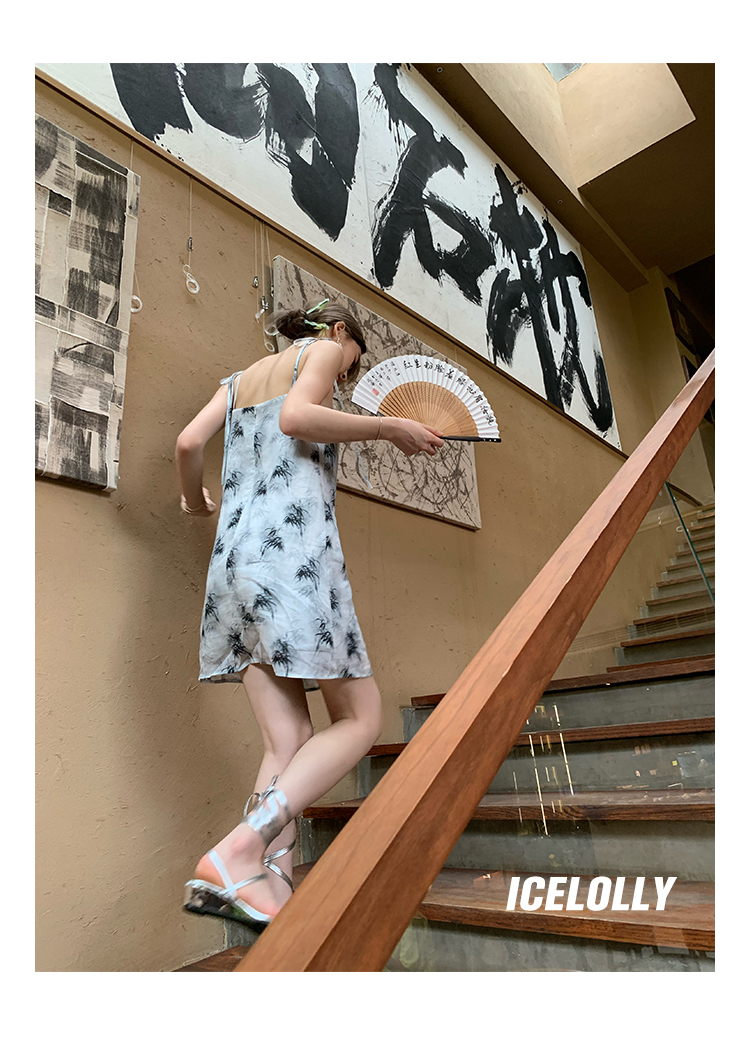 【159元福利款】ICELOLLY新中式薴麻吊帶洋裝超火國風裙子女夏