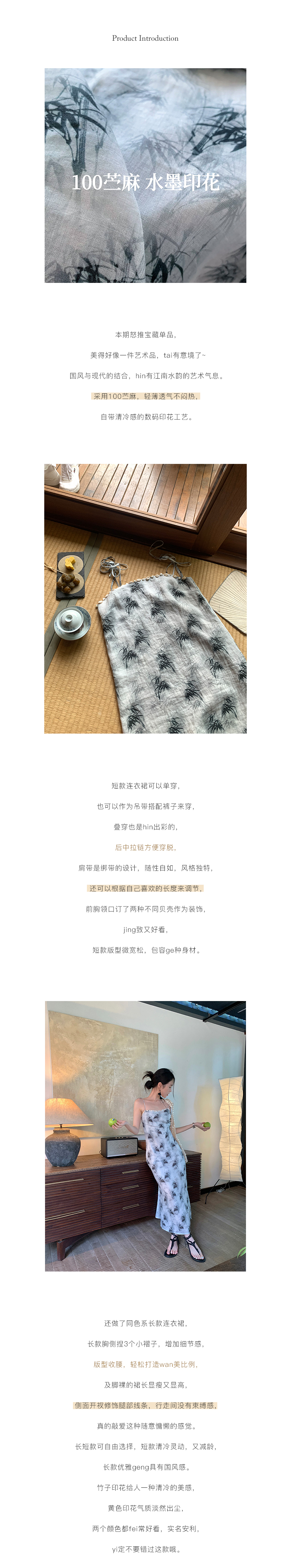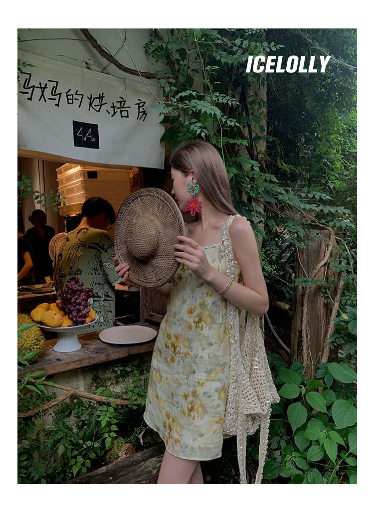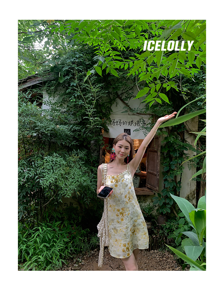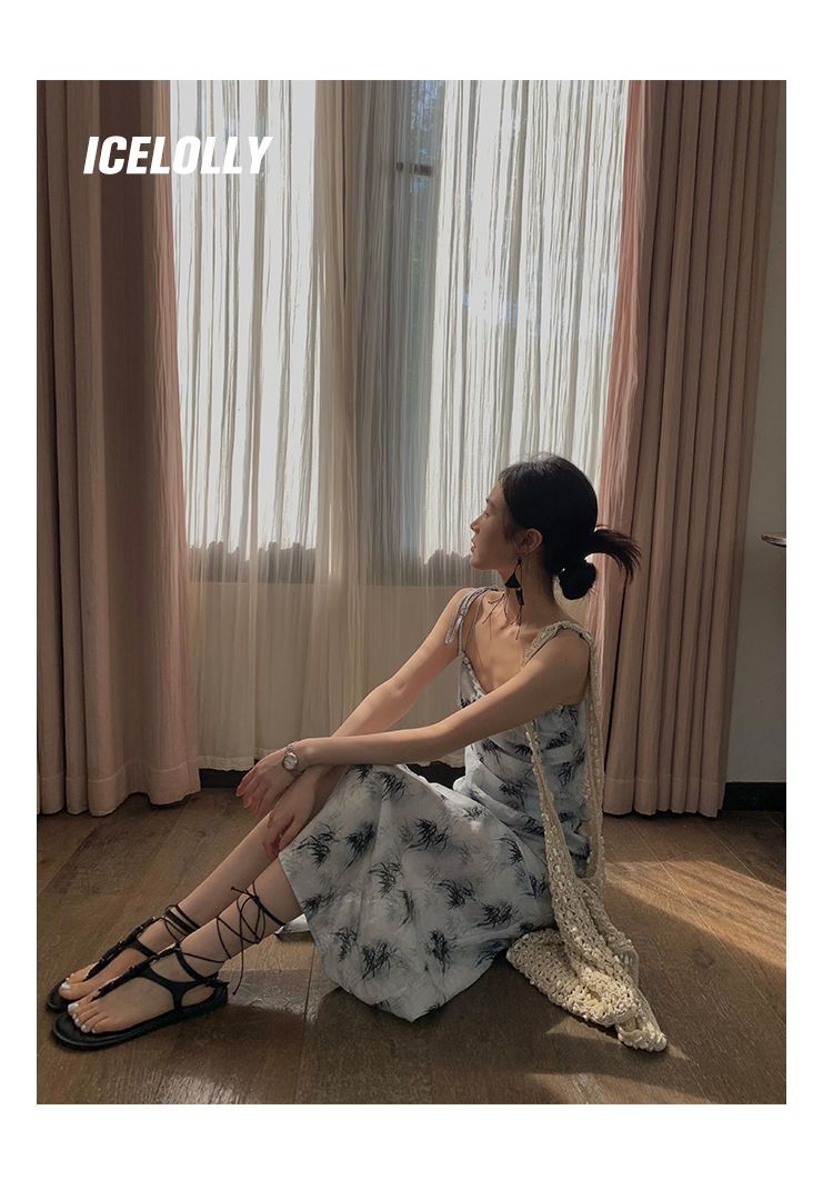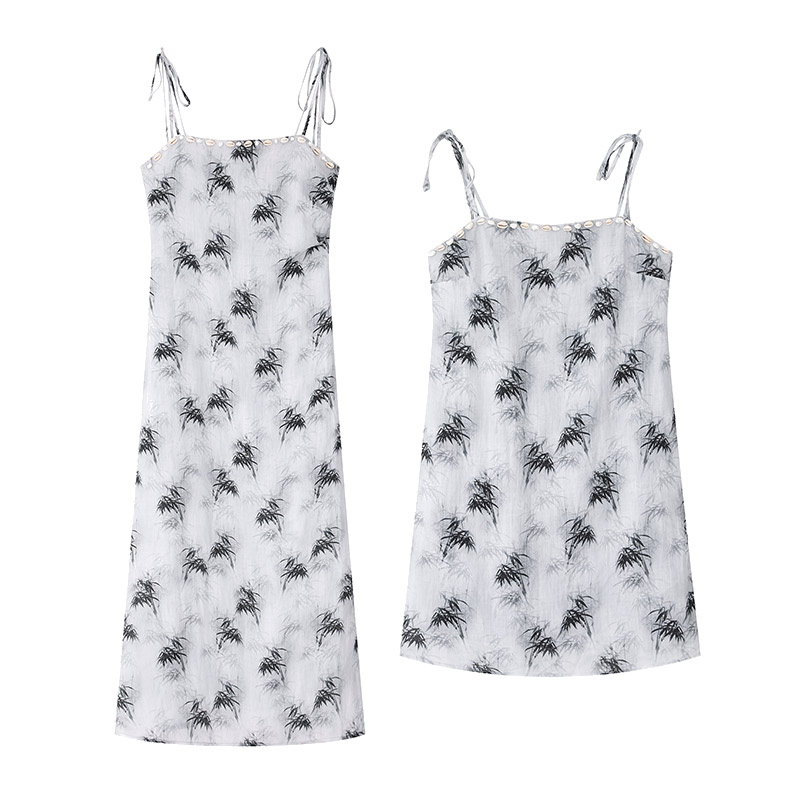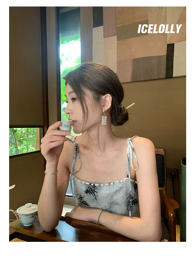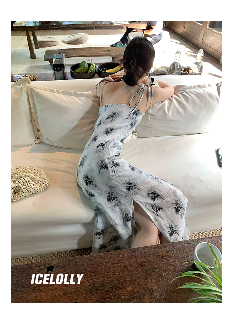 【159元福利款】ICELOLLY新中式薴麻吊帶洋裝超火國風裙子女夏