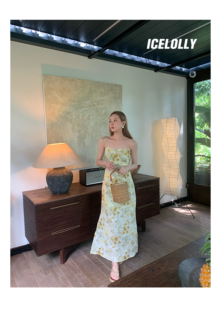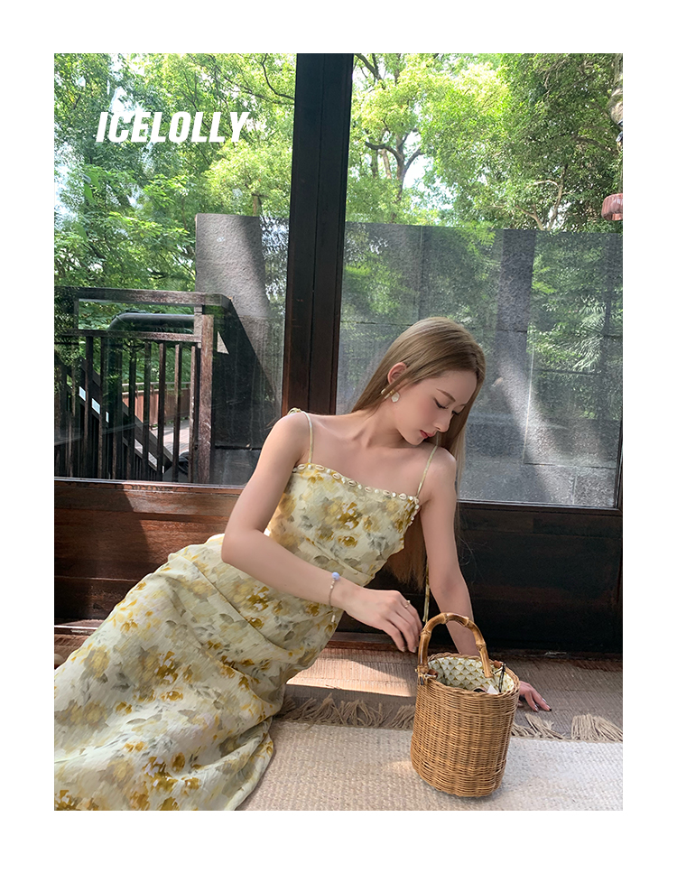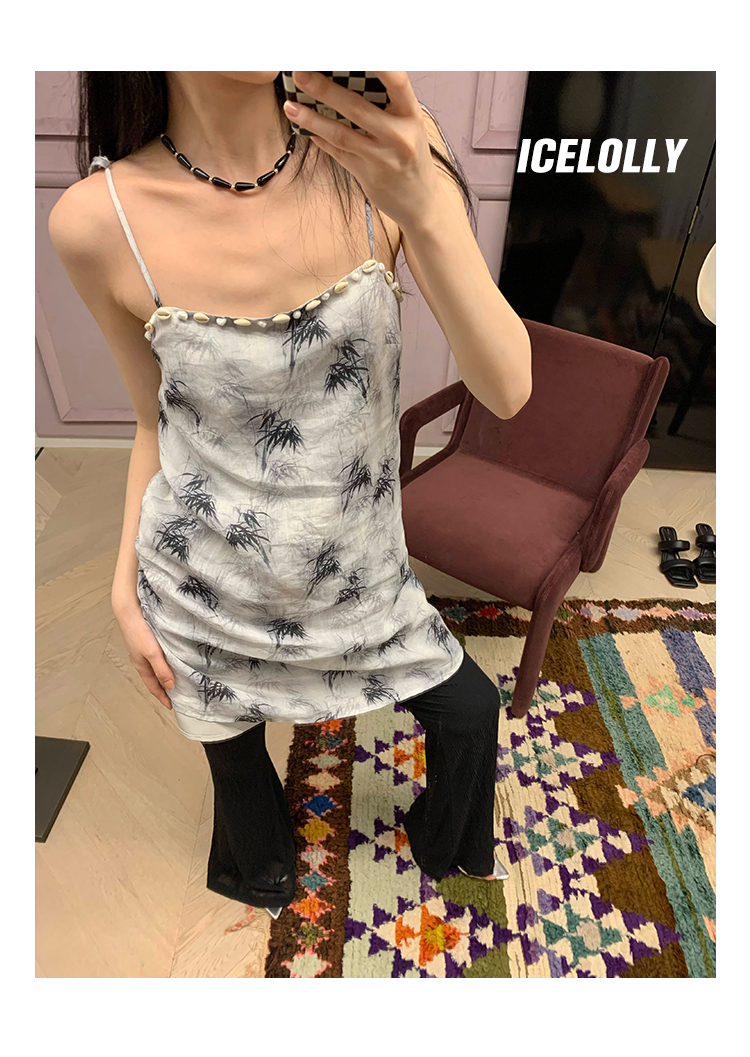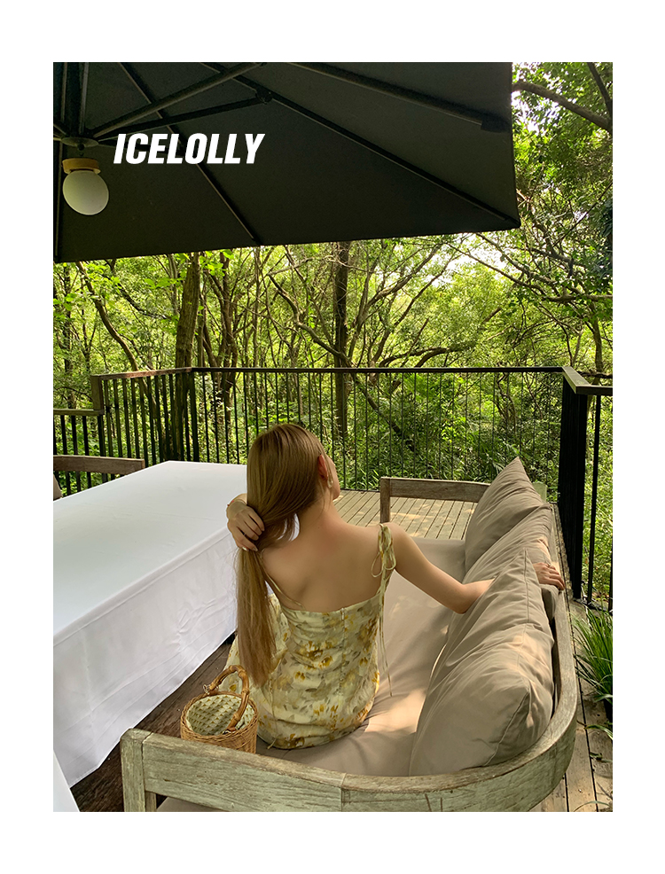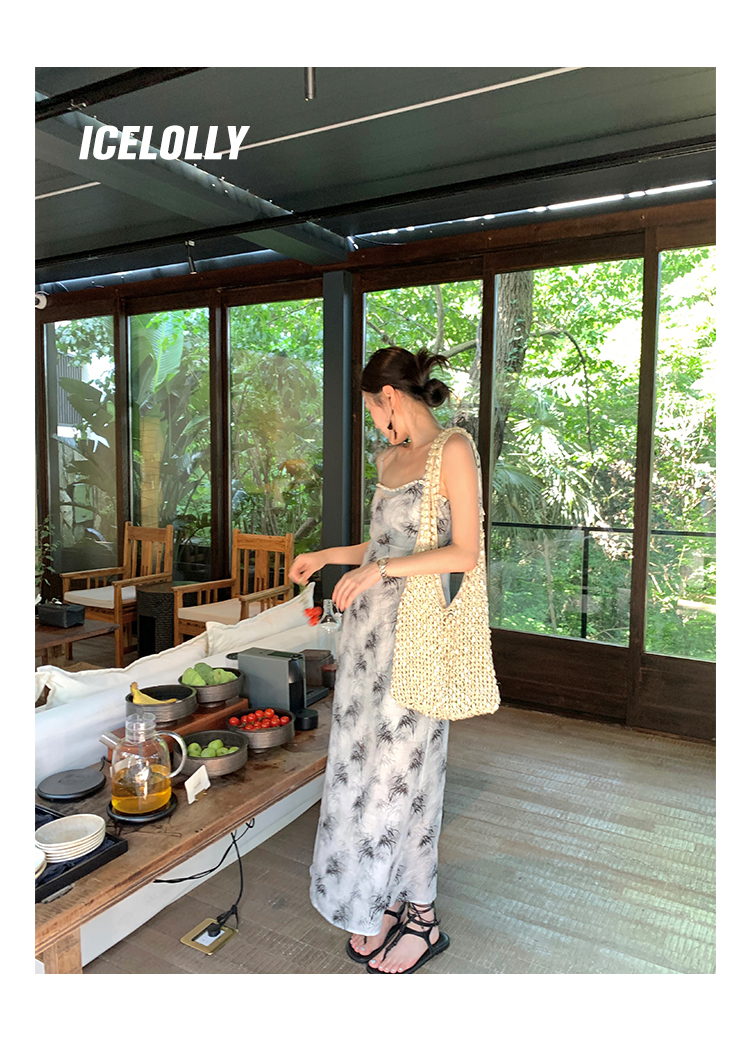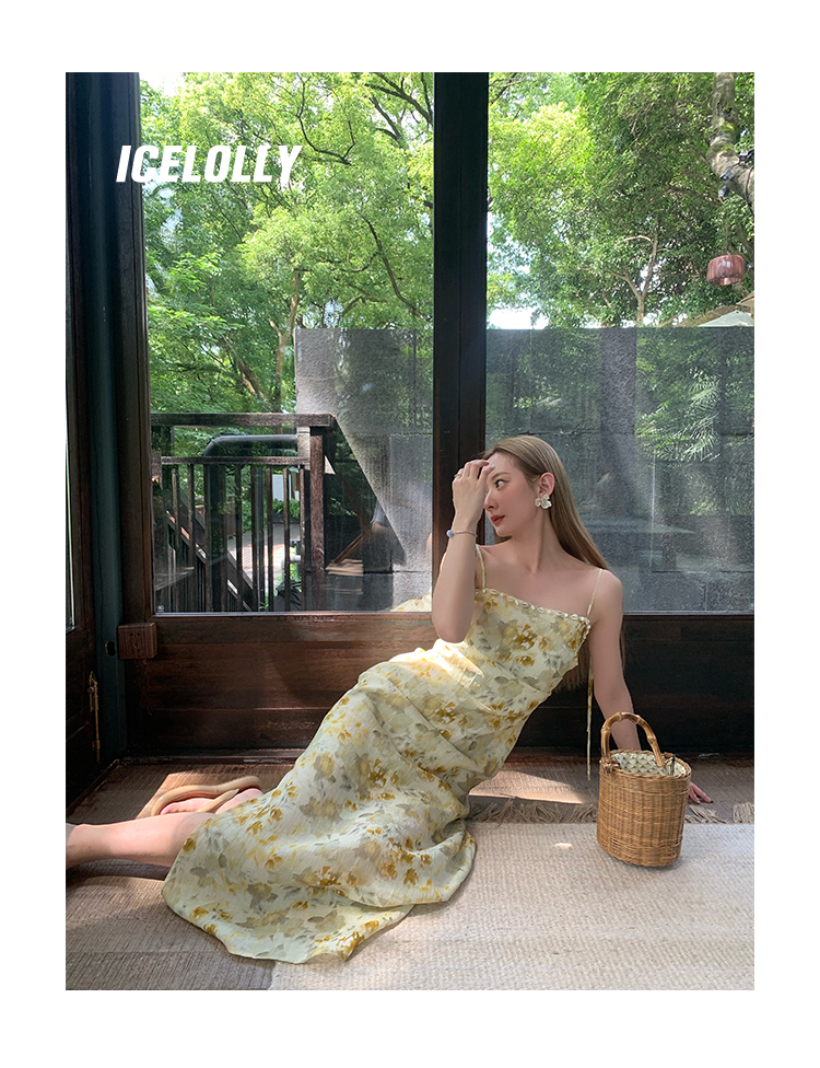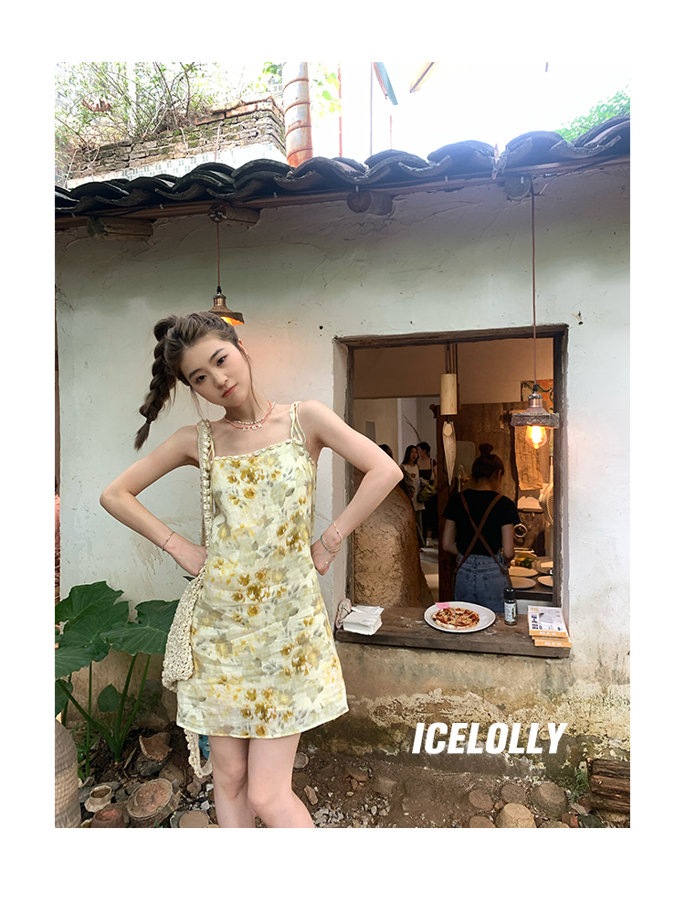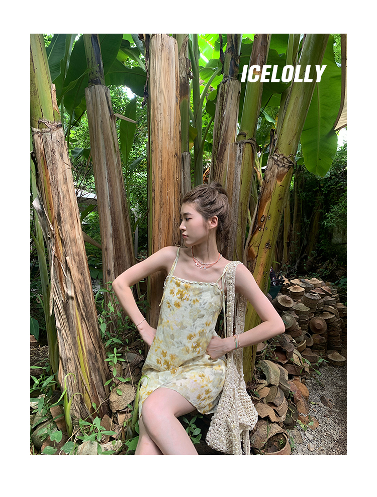 【159元福利款】ICELOLLY新中式薴麻吊帶洋裝超火國風裙子女夏