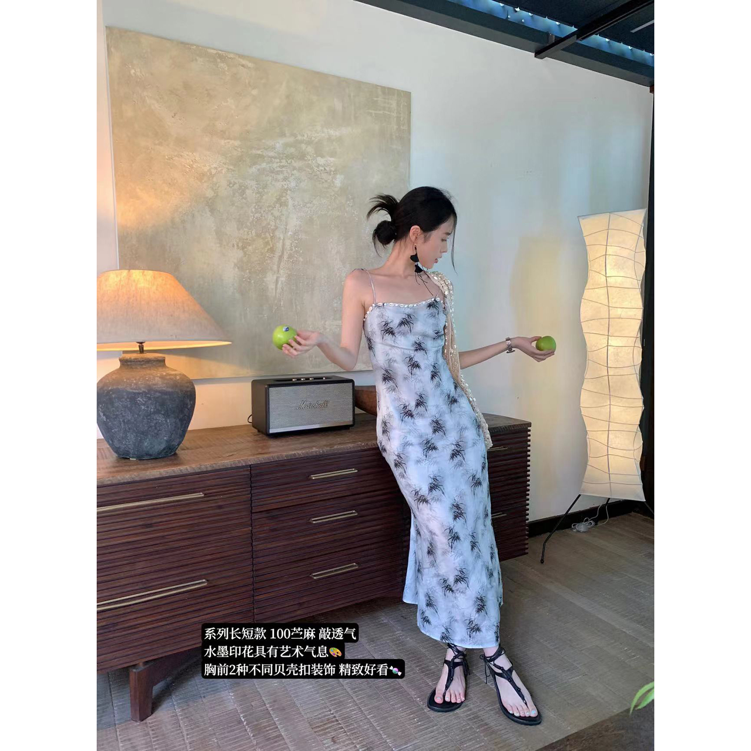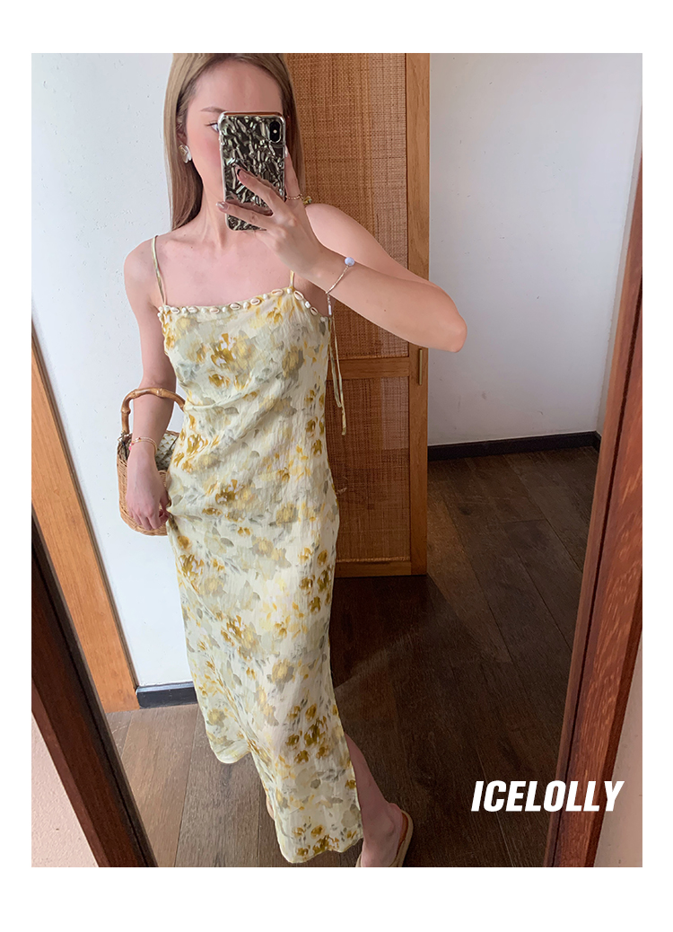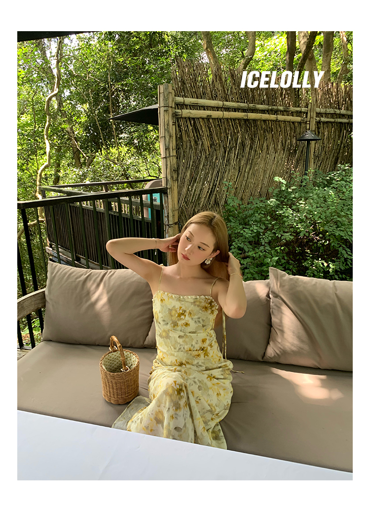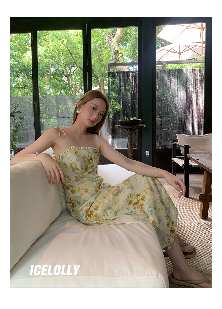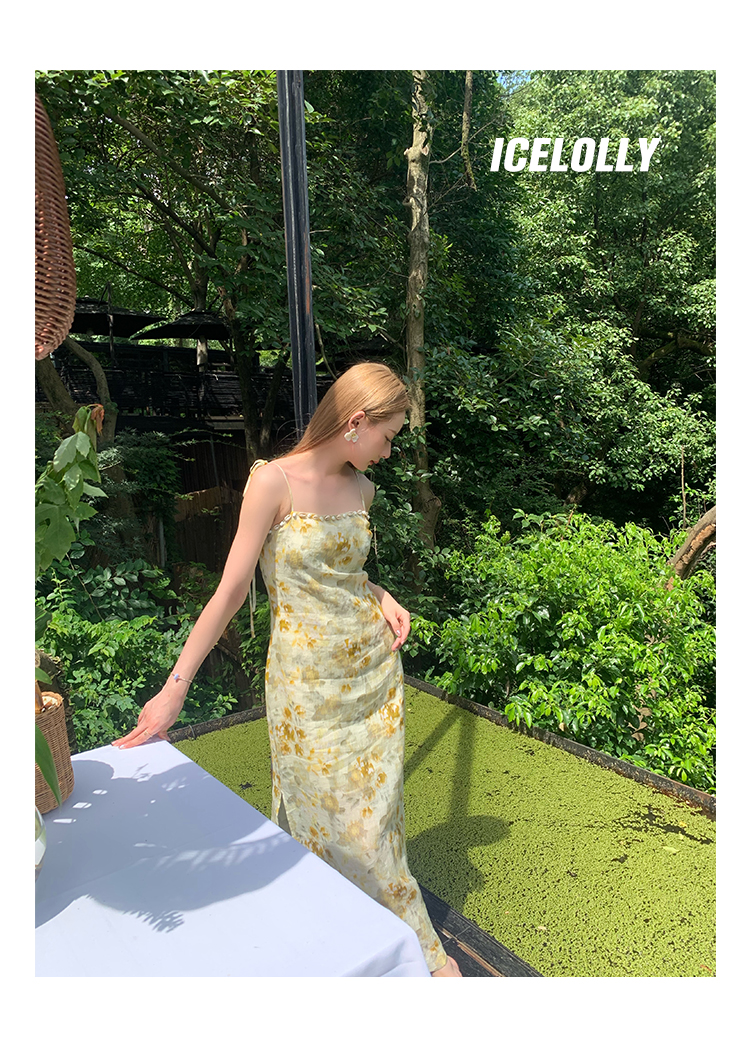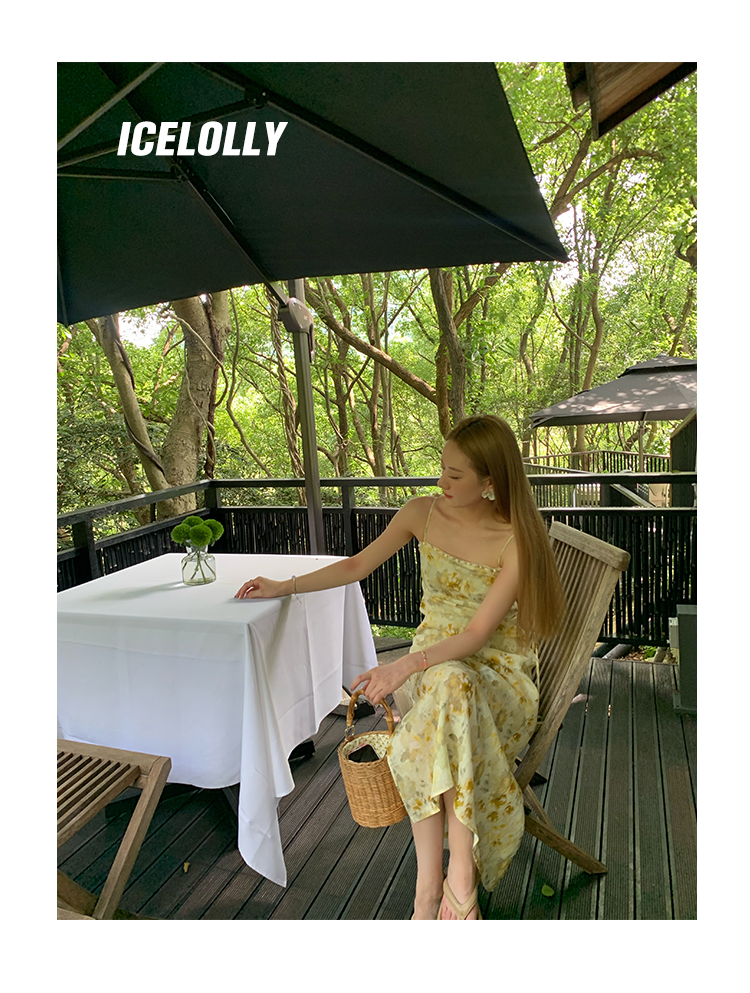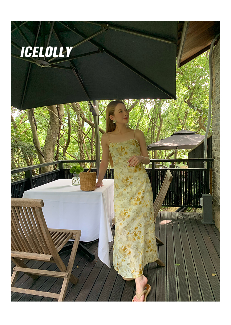 【159元福利款】ICELOLLY新中式薴麻吊帶洋裝超火國風裙子女夏
