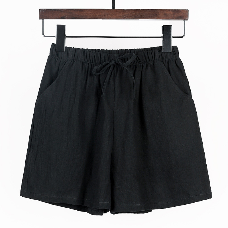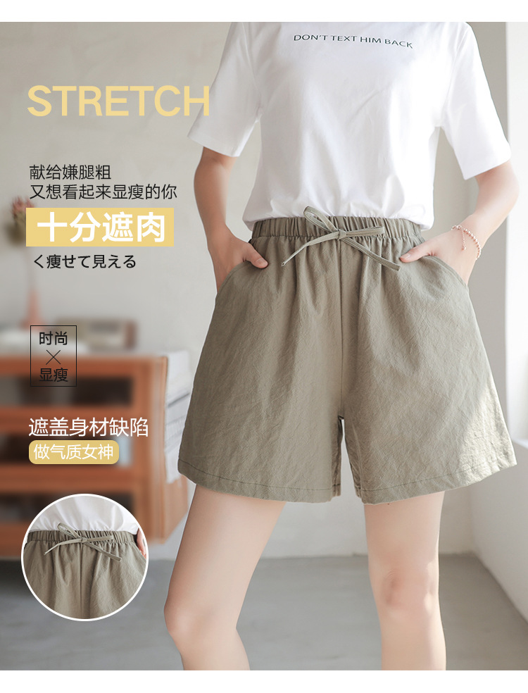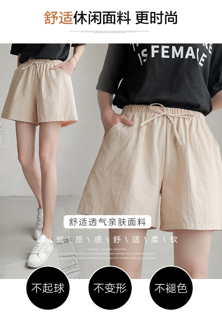 棉麻短裤女夏季a字外穿阔腿裤大码运动三分裤跨境高腰宽松休闲裤