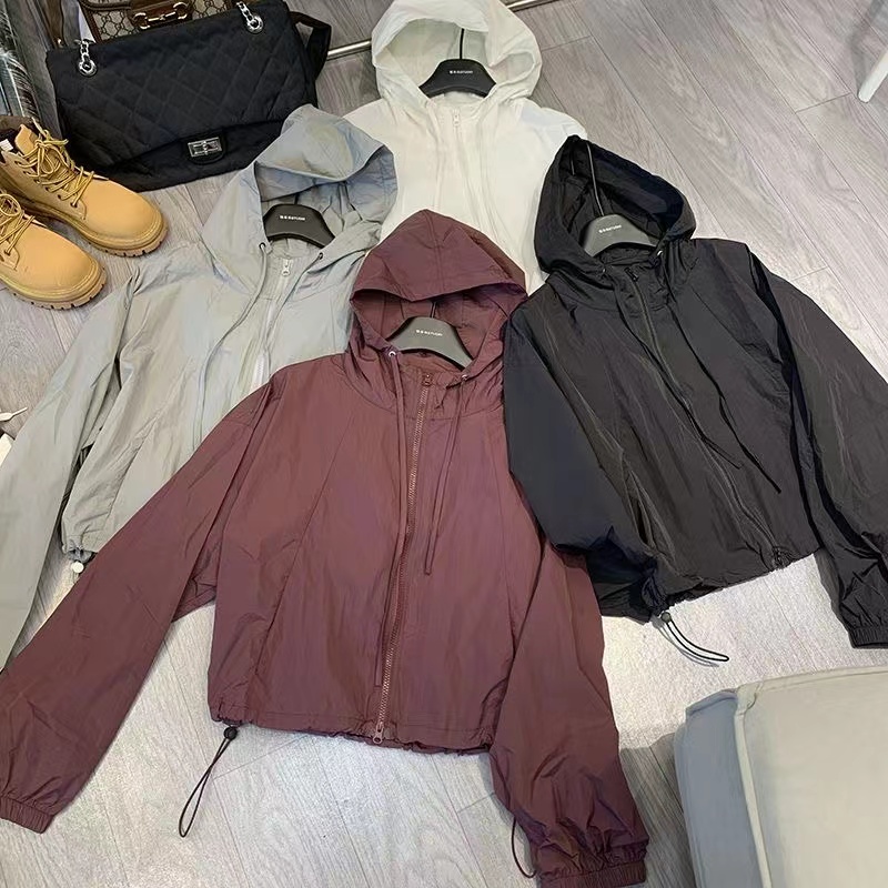 網紅薄款透氣連帽風衣2023秋季新款寬鬆百搭純色短款衝鋒衣外套女