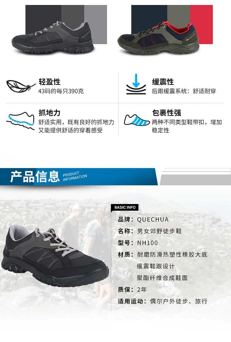 迪卡儂旗艦店官網登山鞋男戶外透氣男鞋休閒運動旅遊女徒步靴ODS