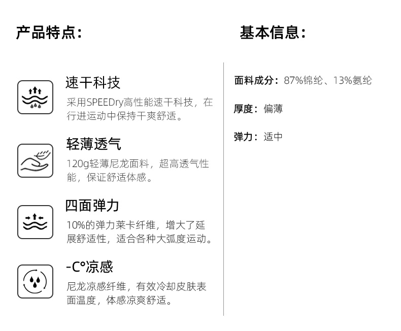主要功能 透氣 速乾