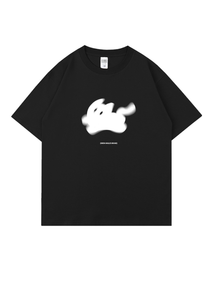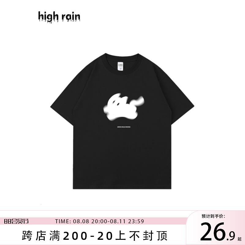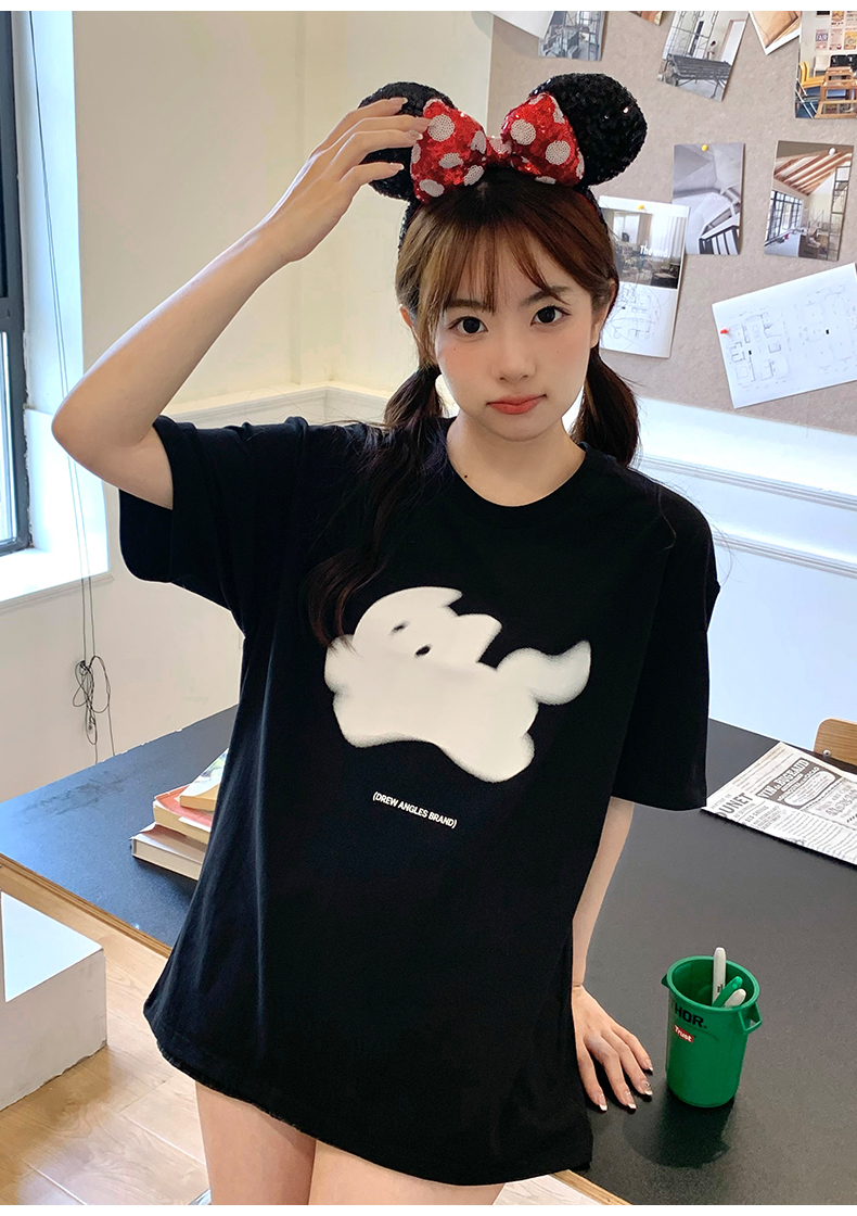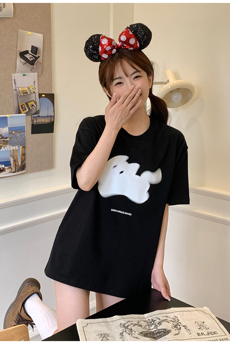 很潤工作室 可愛跑酷的小貓咪黑色短袖落肩T恤棉夏季百搭情侶上衣