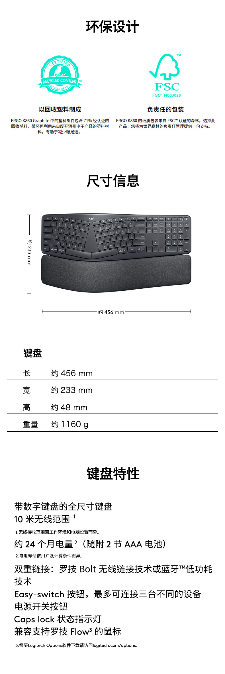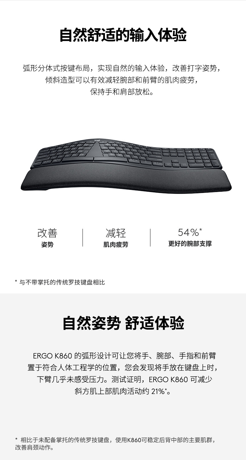 【商用】罗技K860 ERGO无线蓝牙键盘笔记本台式电脑配件键盘批发