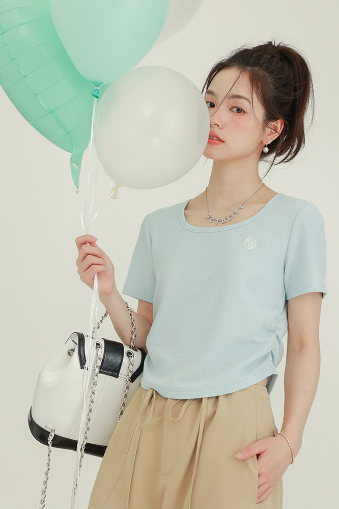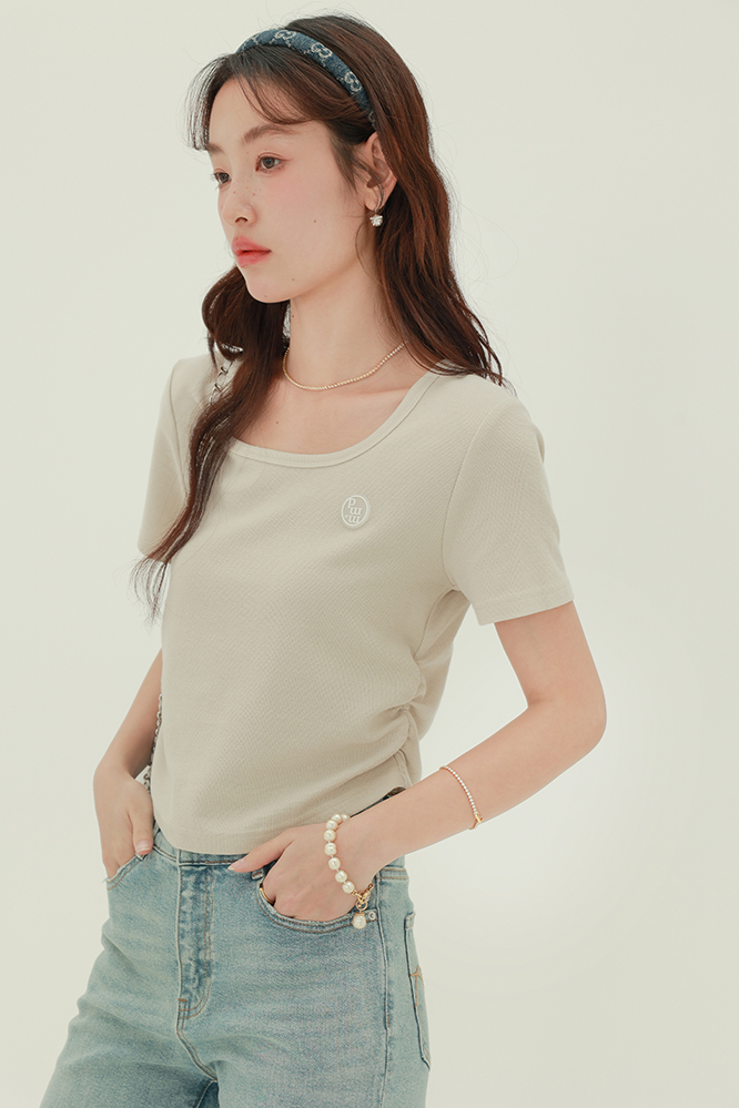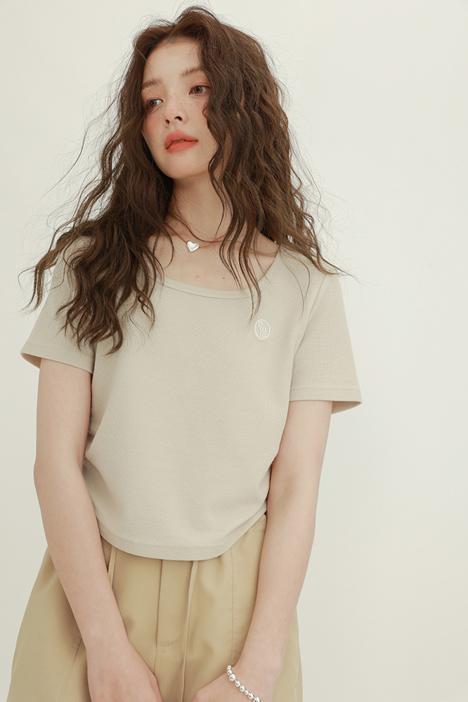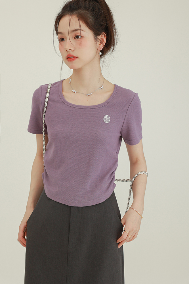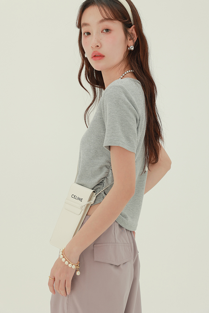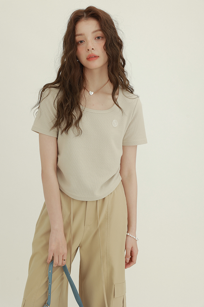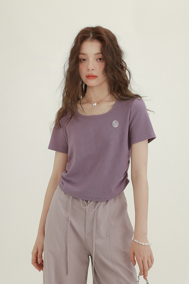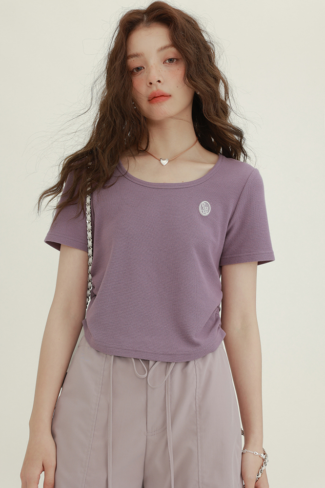 CHACHASTU正肩短袖t恤女夏季灰色打底衫小眾獨特別致短款內搭上衣