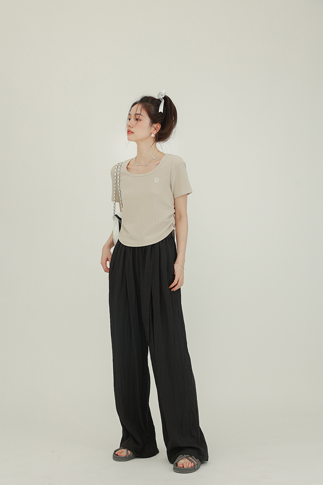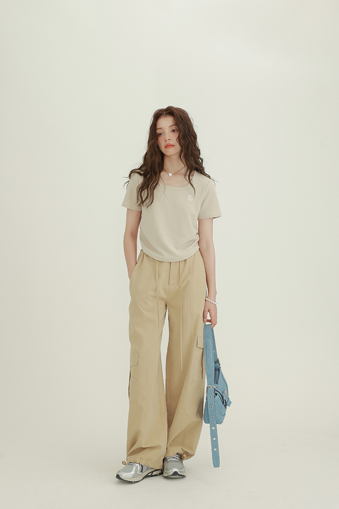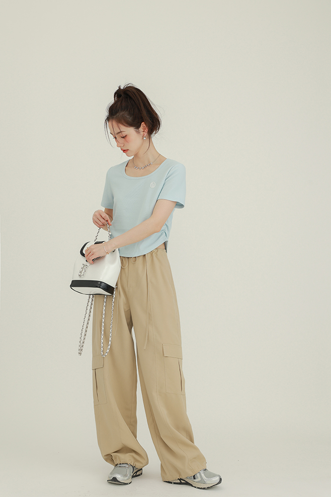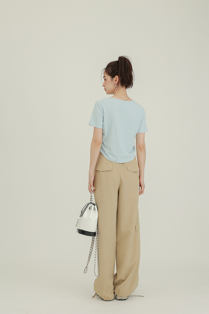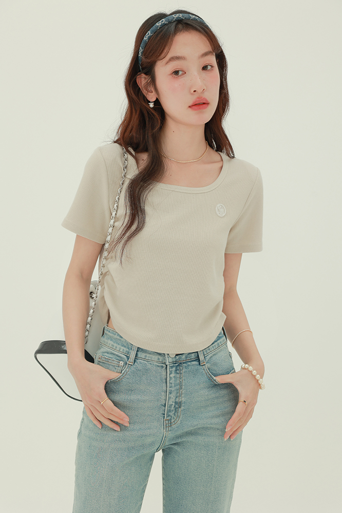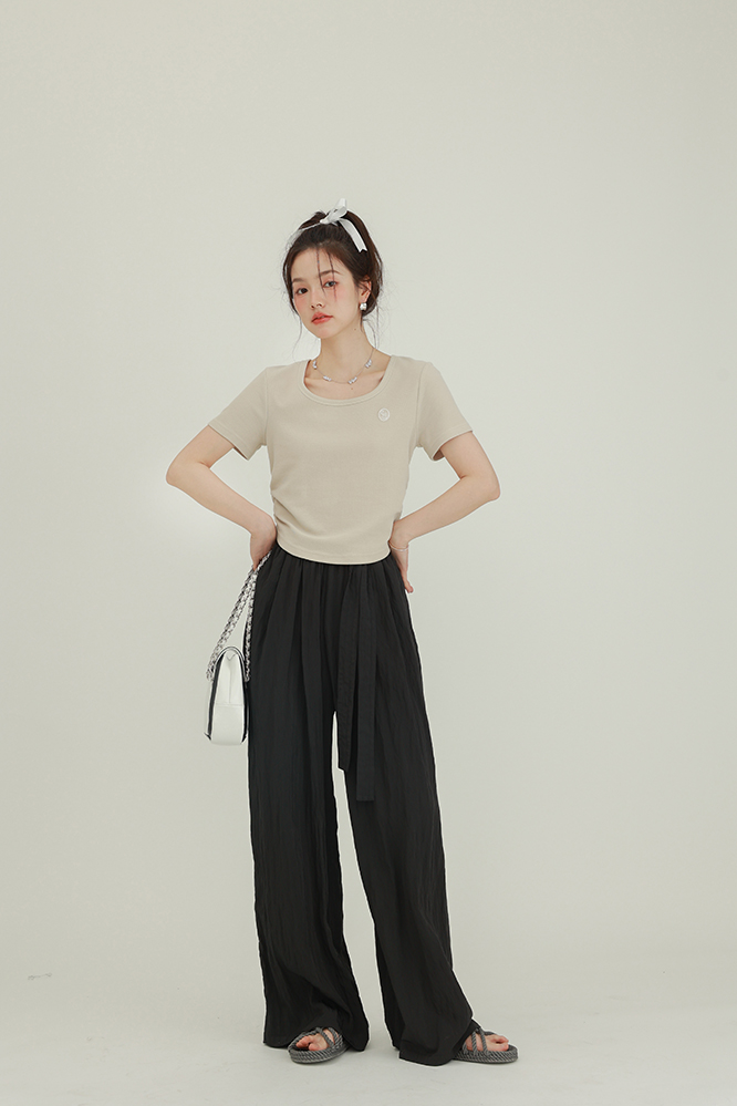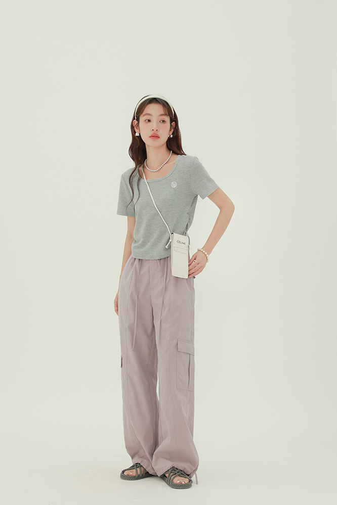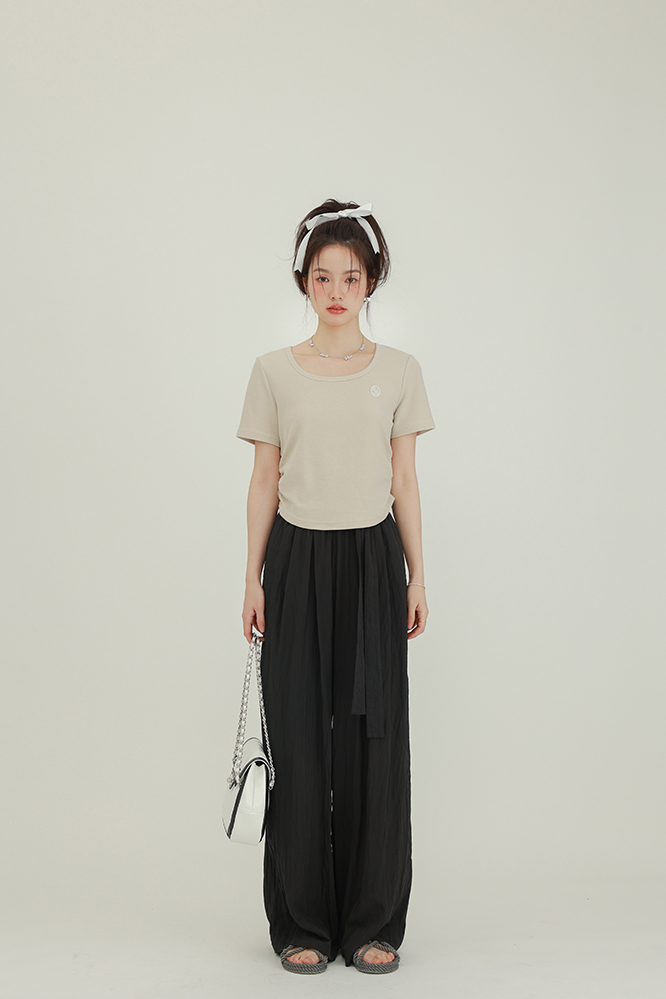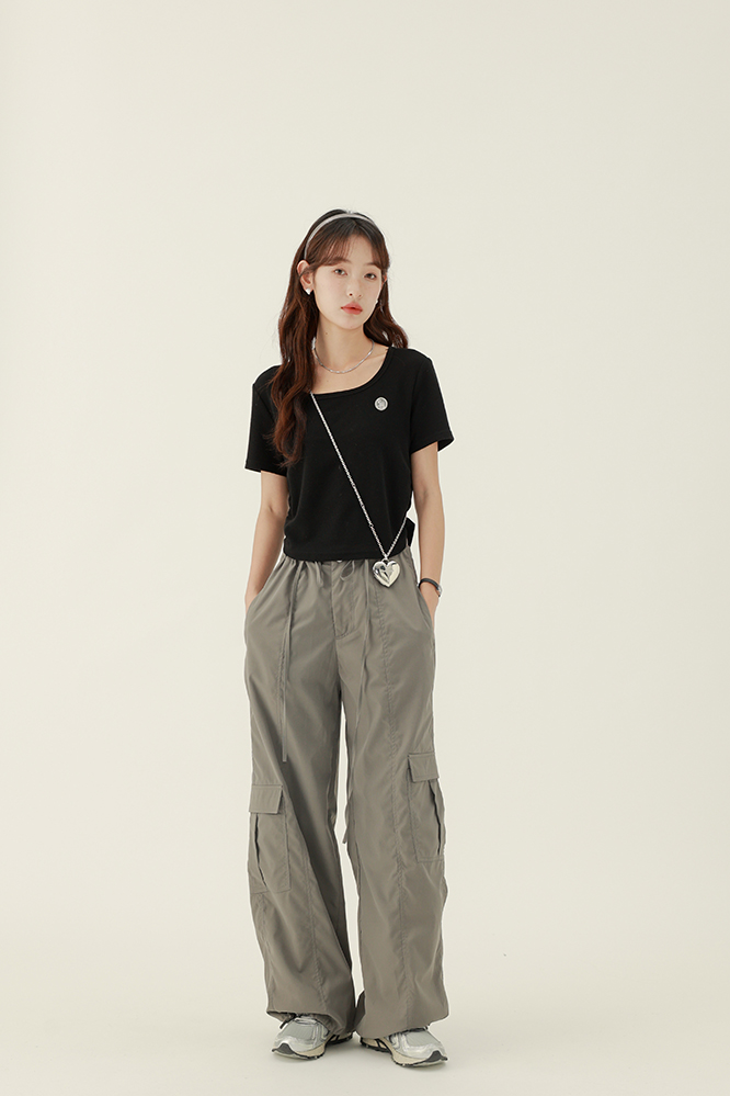 CHACHASTU正肩短袖t恤女夏季灰色打底衫小眾獨特別致短款內搭上衣