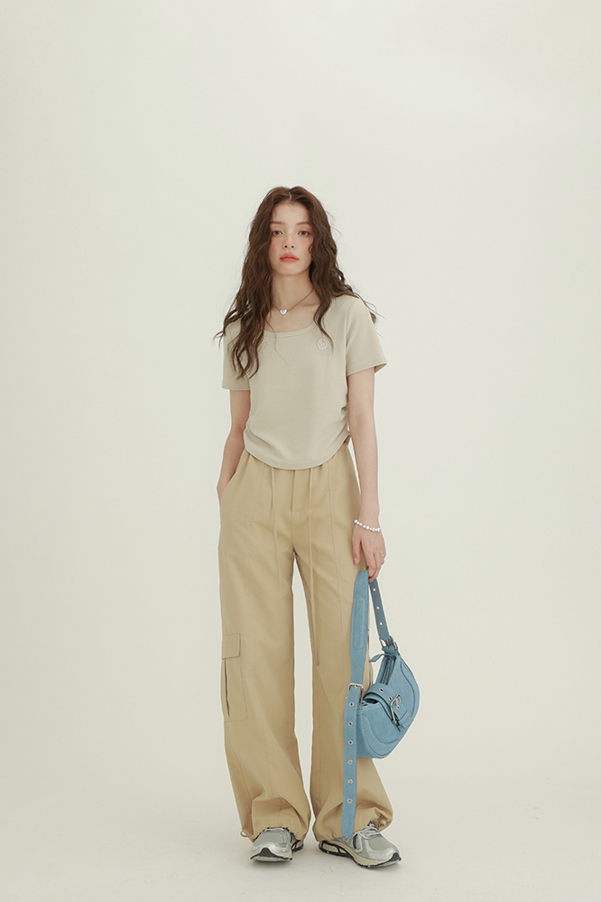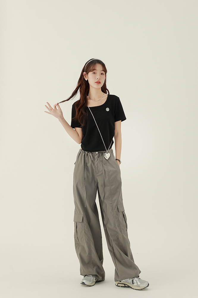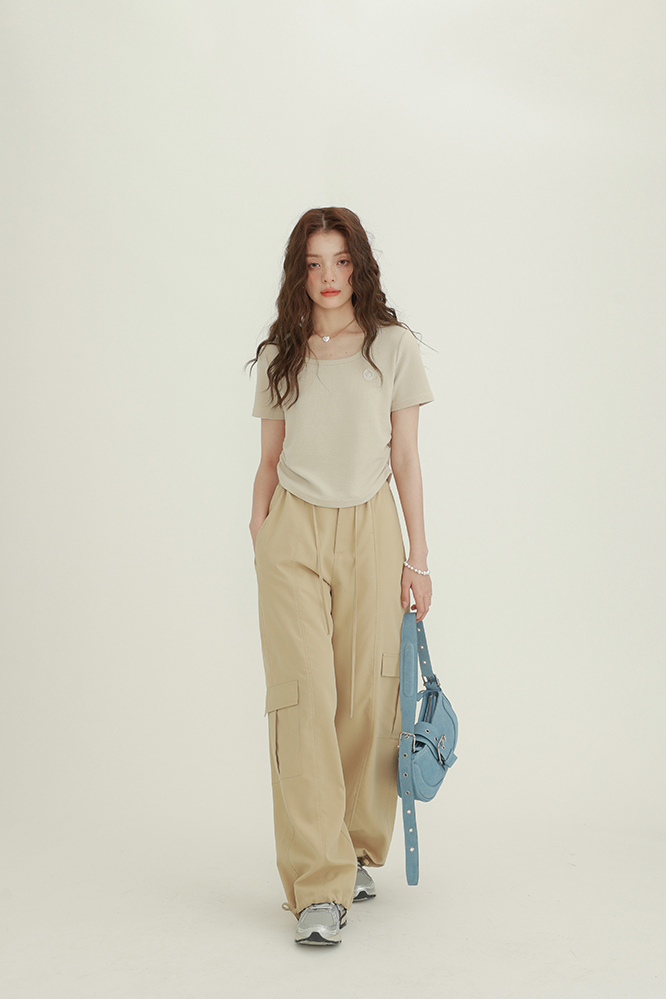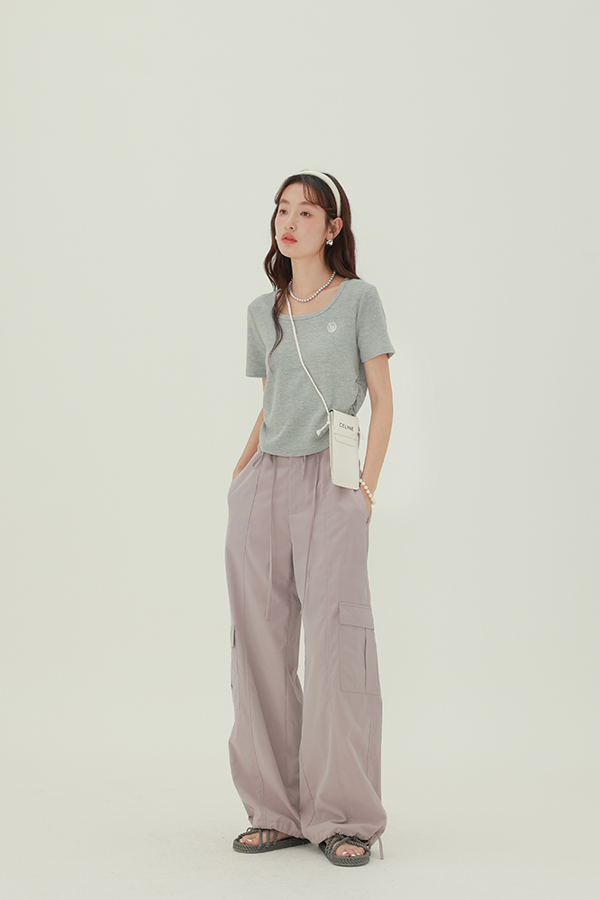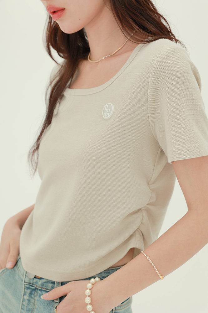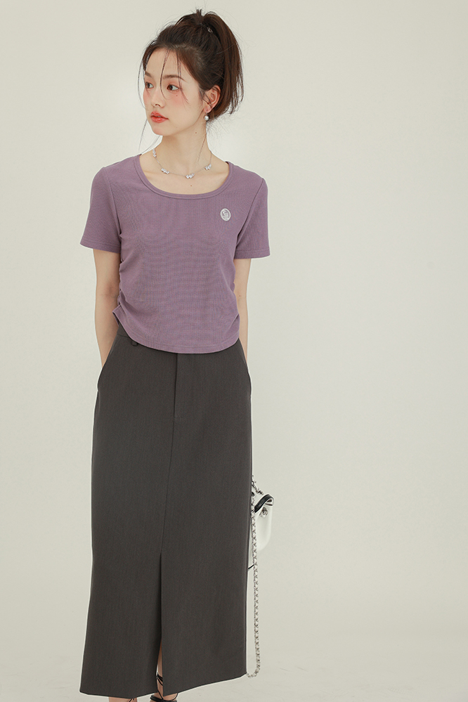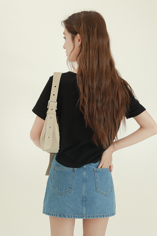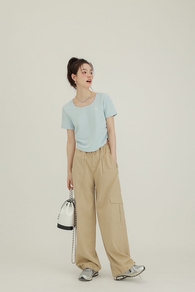 CHACHASTU正肩短袖t恤女夏季灰色打底衫小眾獨特別致短款內搭上衣