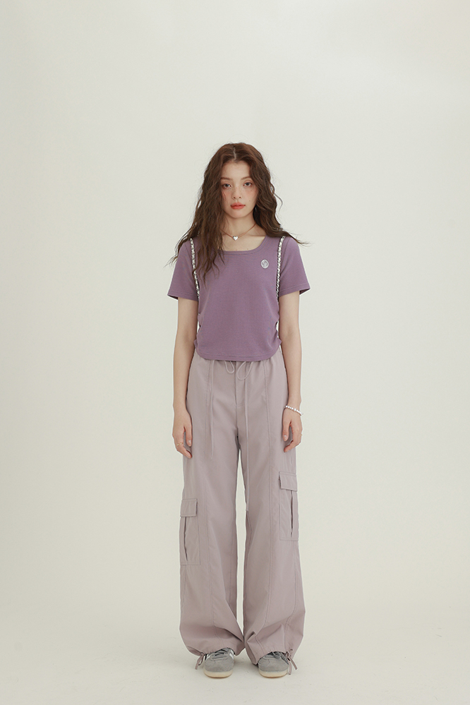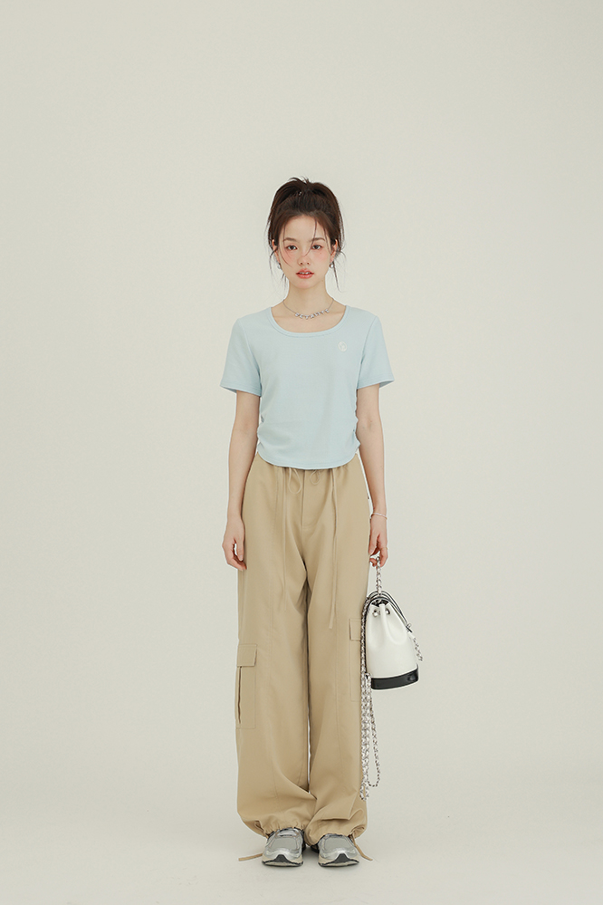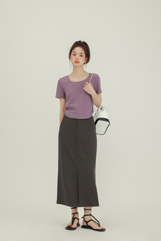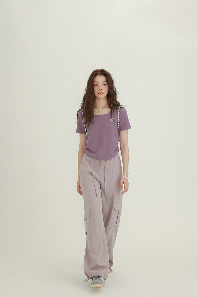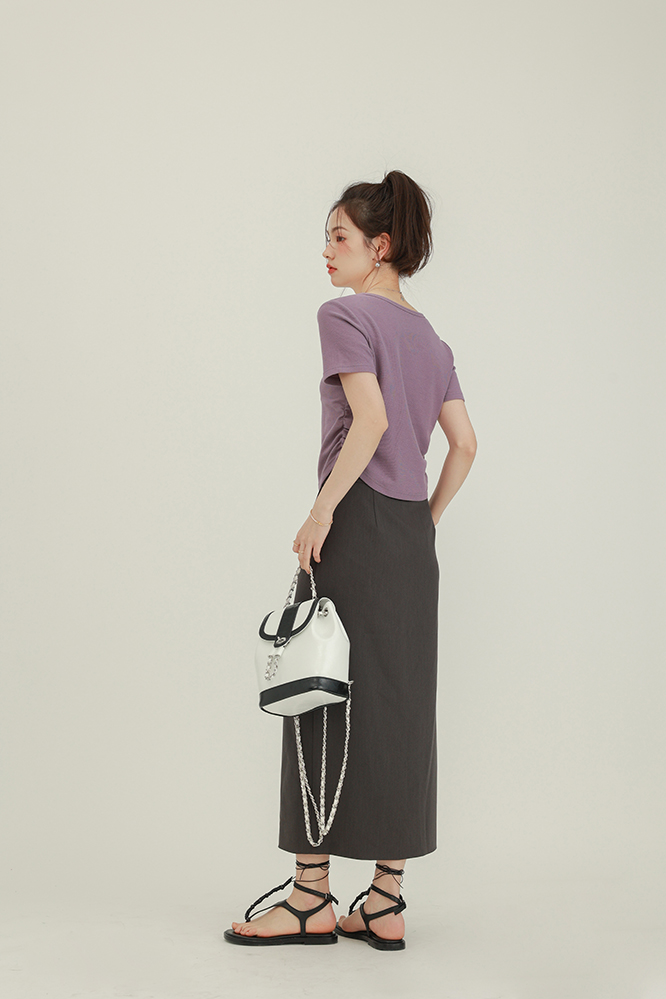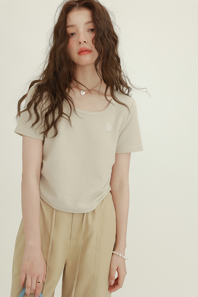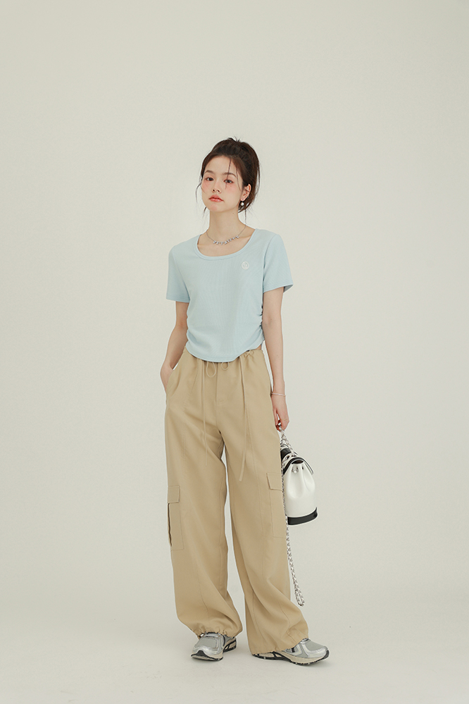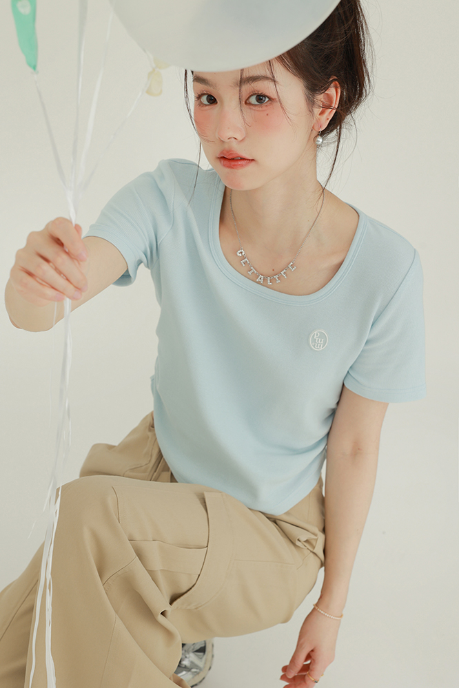 CHACHASTU正肩短袖t恤女夏季灰色打底衫小眾獨特別致短款內搭上衣