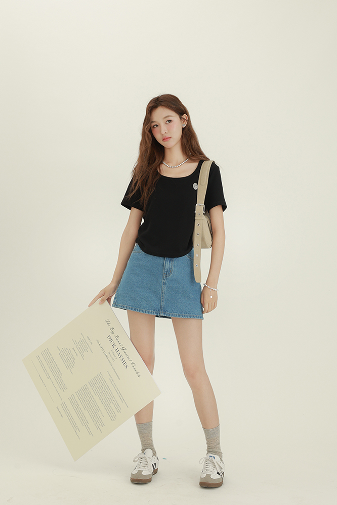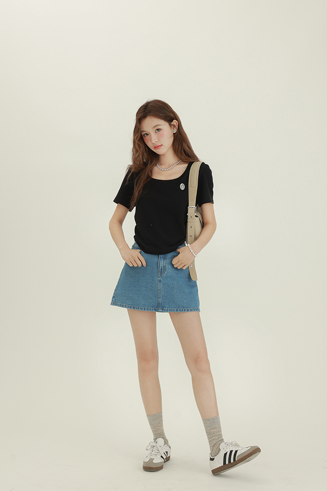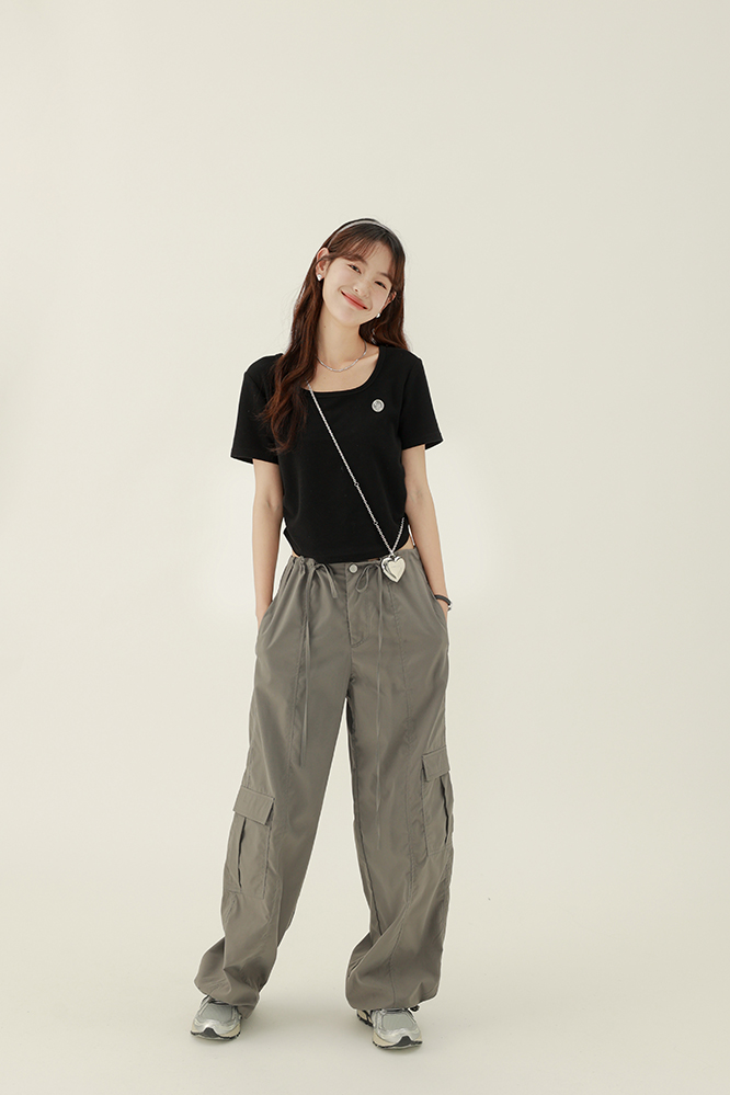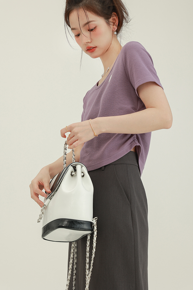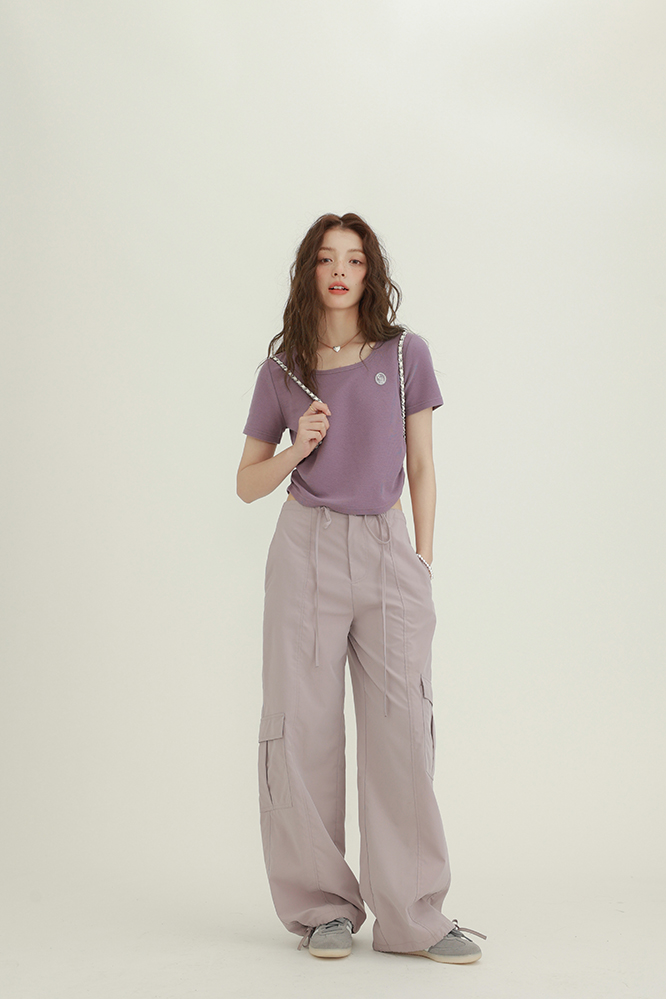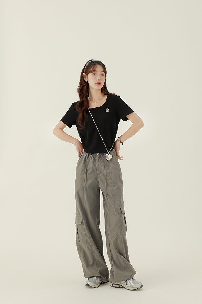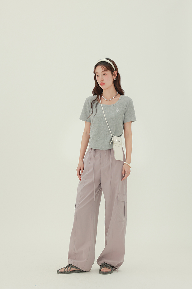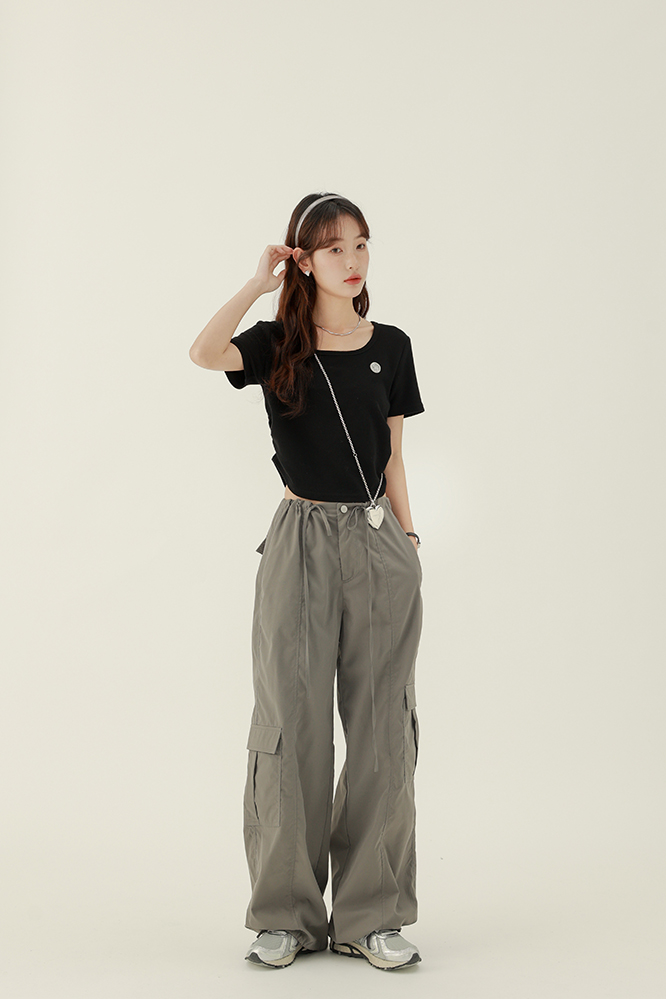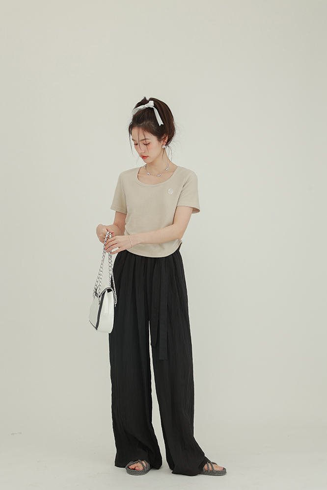 CHACHASTU正肩短袖t恤女夏季灰色打底衫小眾獨特別致短款內搭上衣