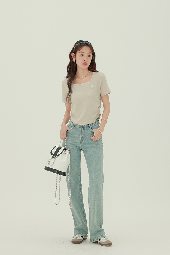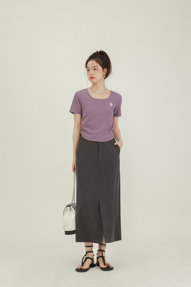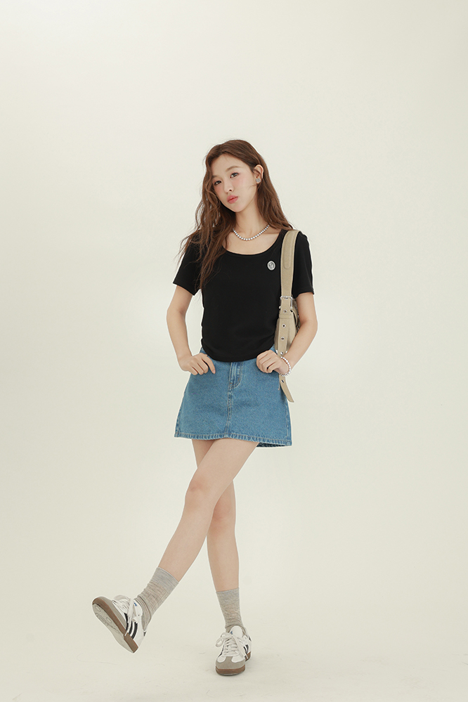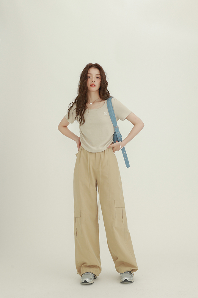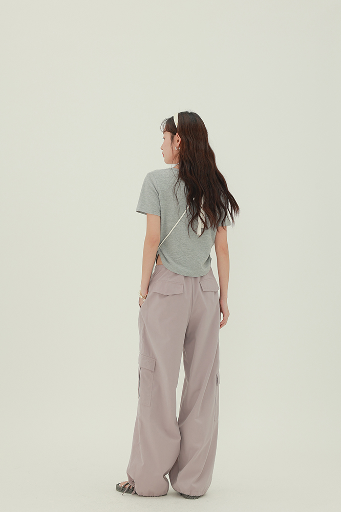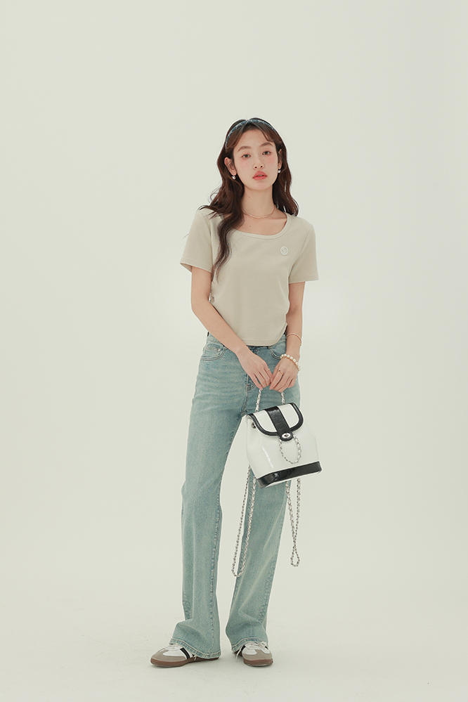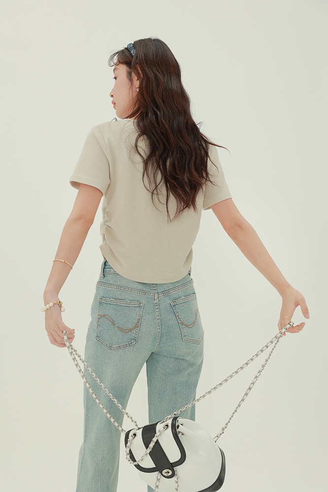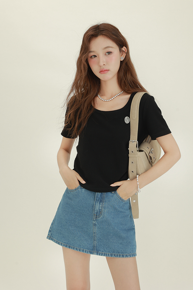 CHACHASTU正肩短袖t恤女夏季灰色打底衫小眾獨特別致短款內搭上衣
