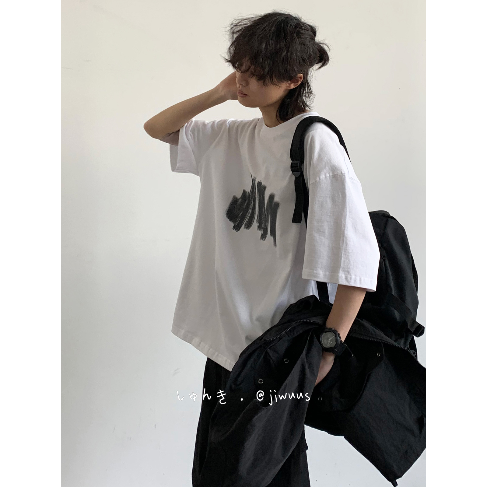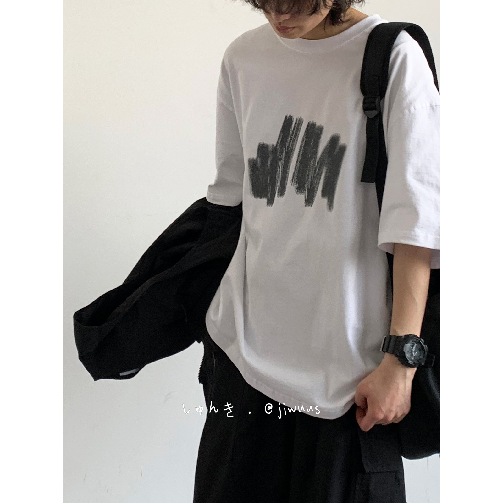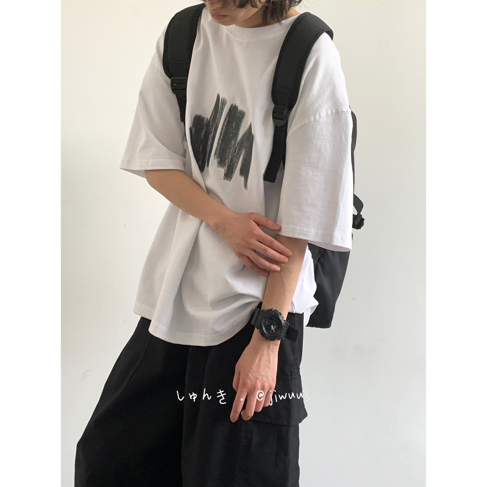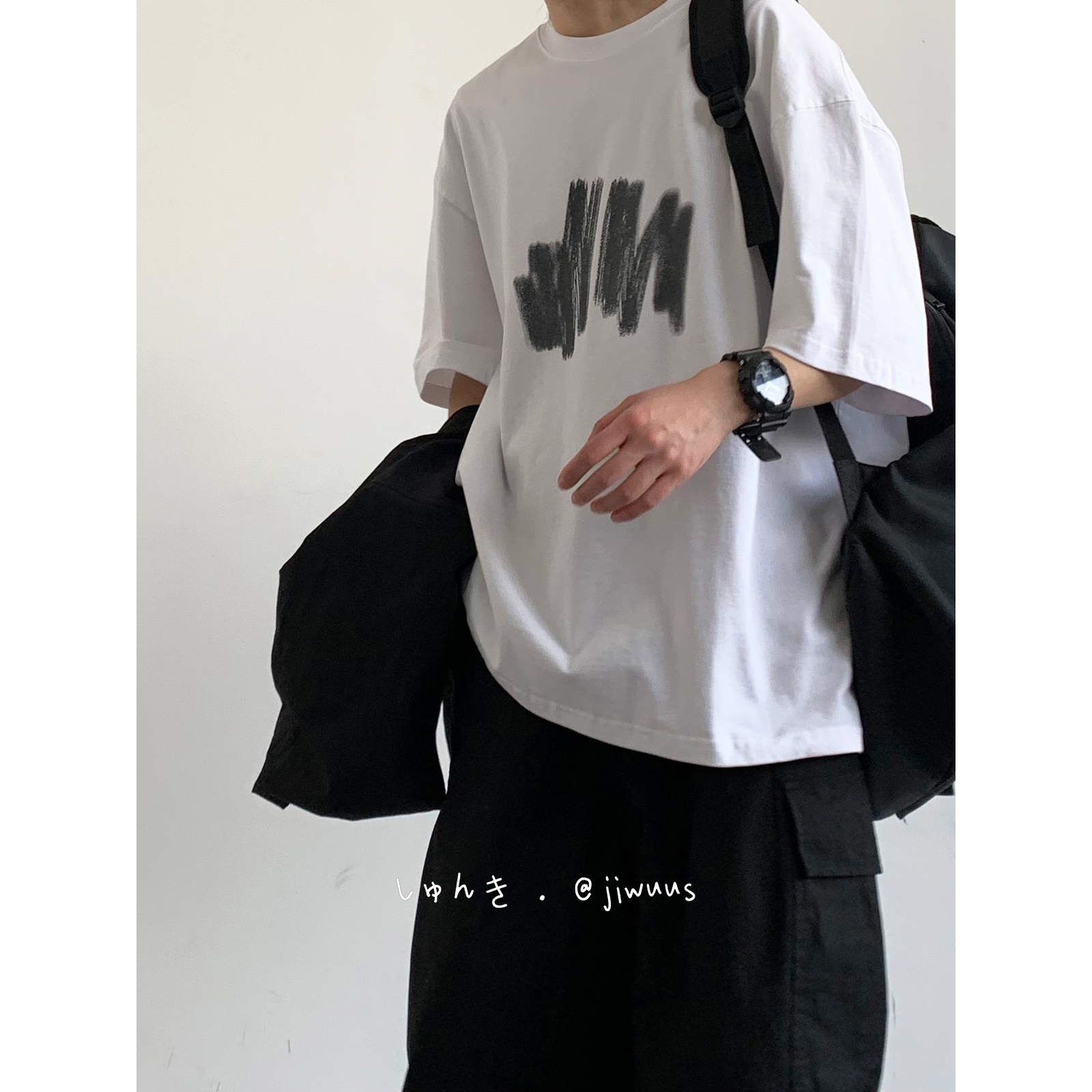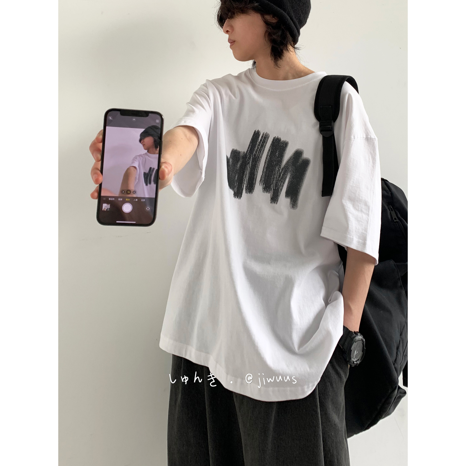 幾物jiwuus 夏日系個性簡約印花短袖Tee男女生百搭休閒寬鬆T恤衫