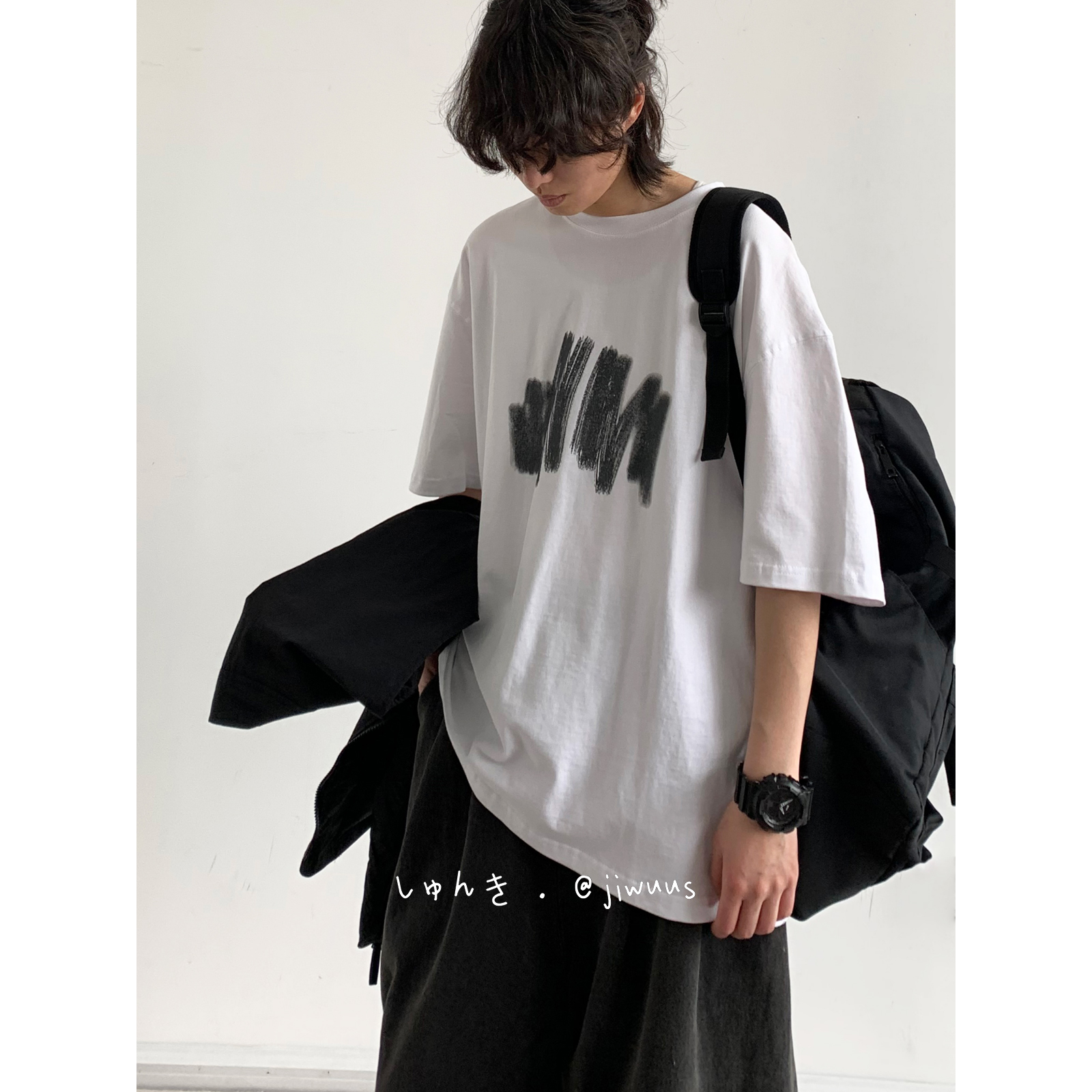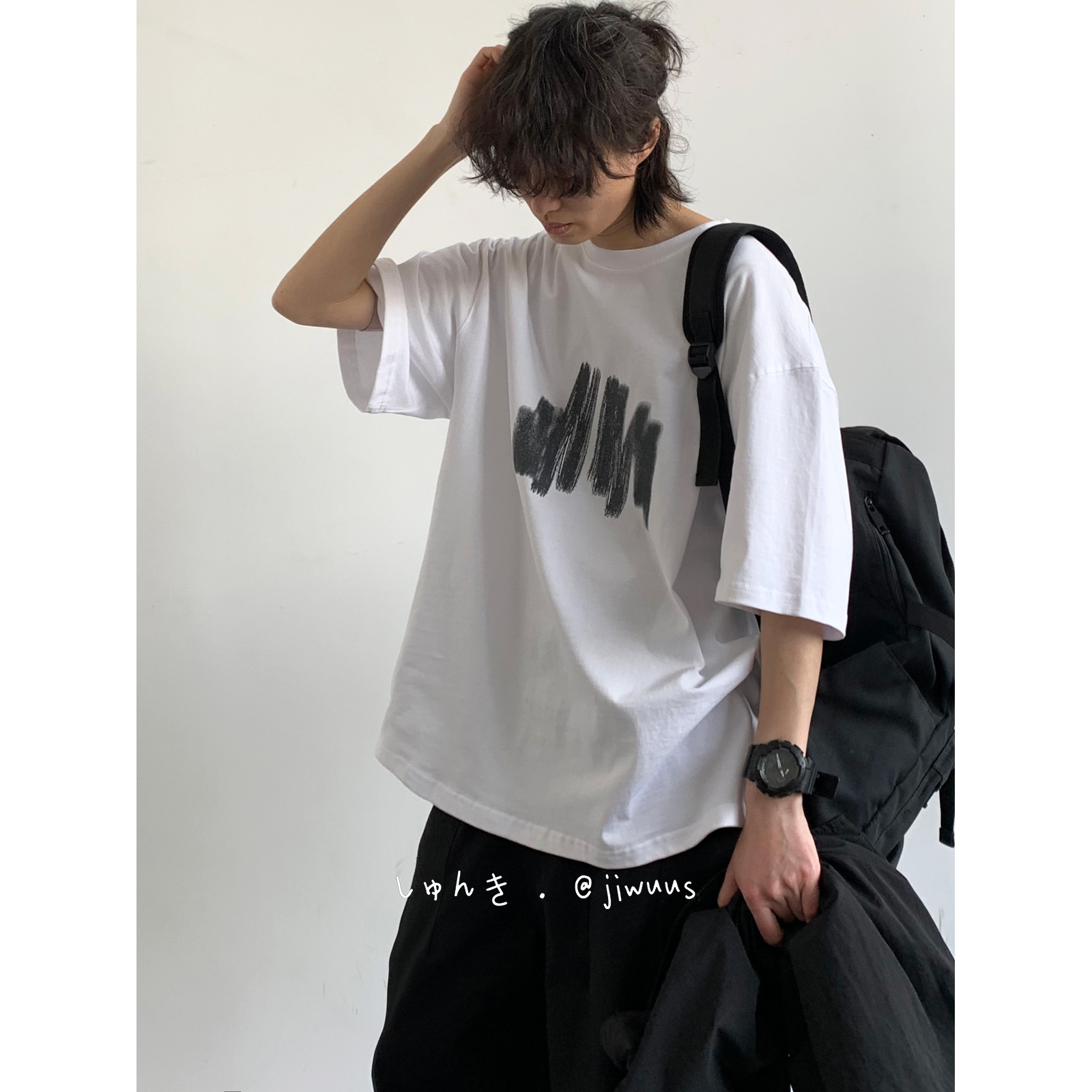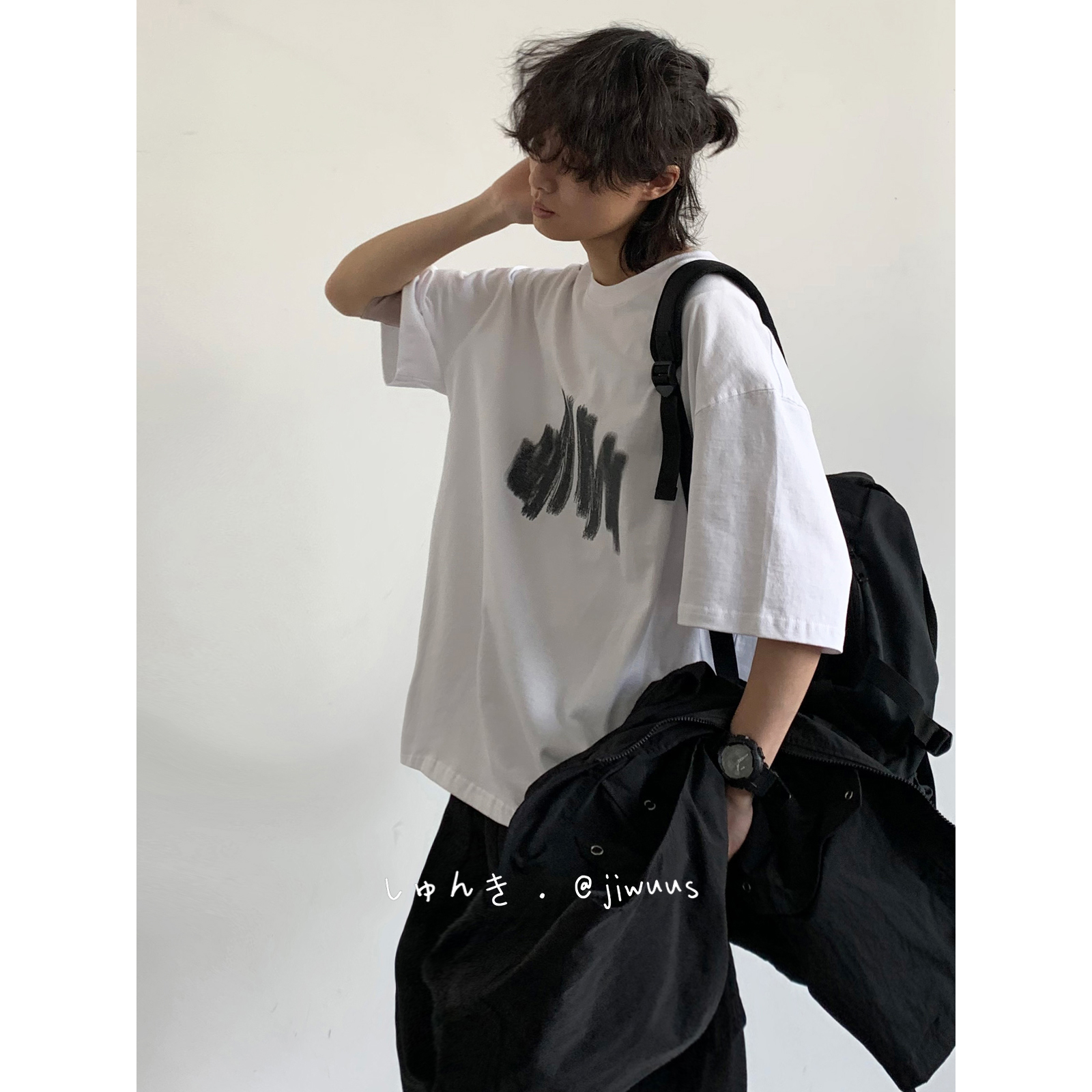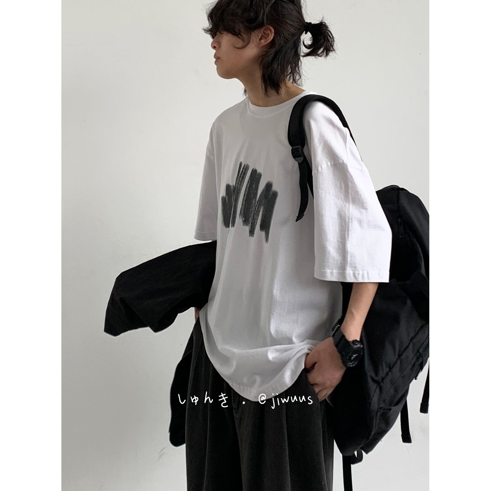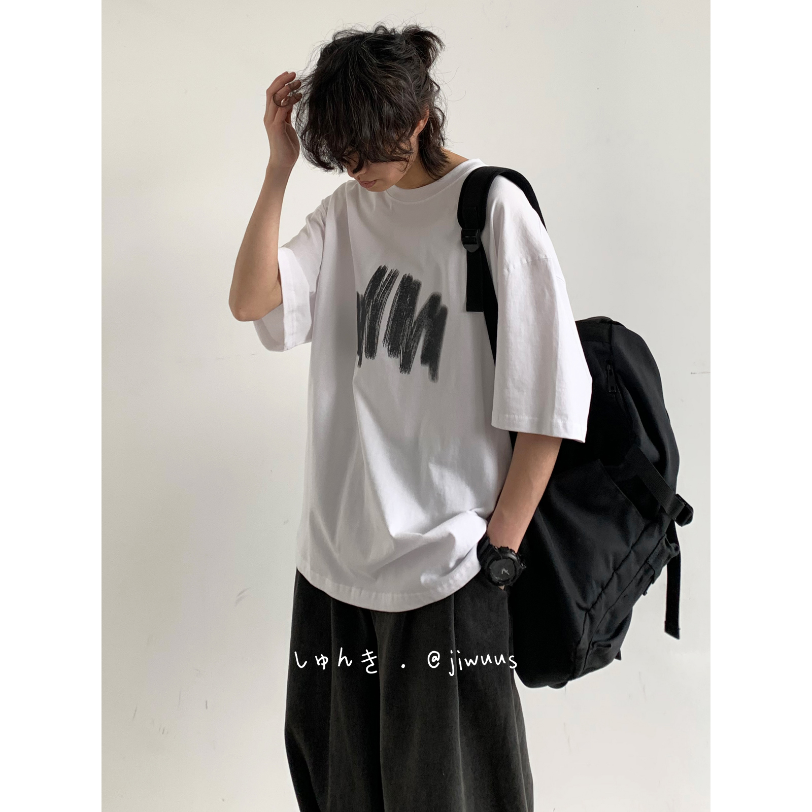 幾物jiwuus 夏日系個性簡約印花短袖Tee男女生百搭休閒寬鬆T恤衫