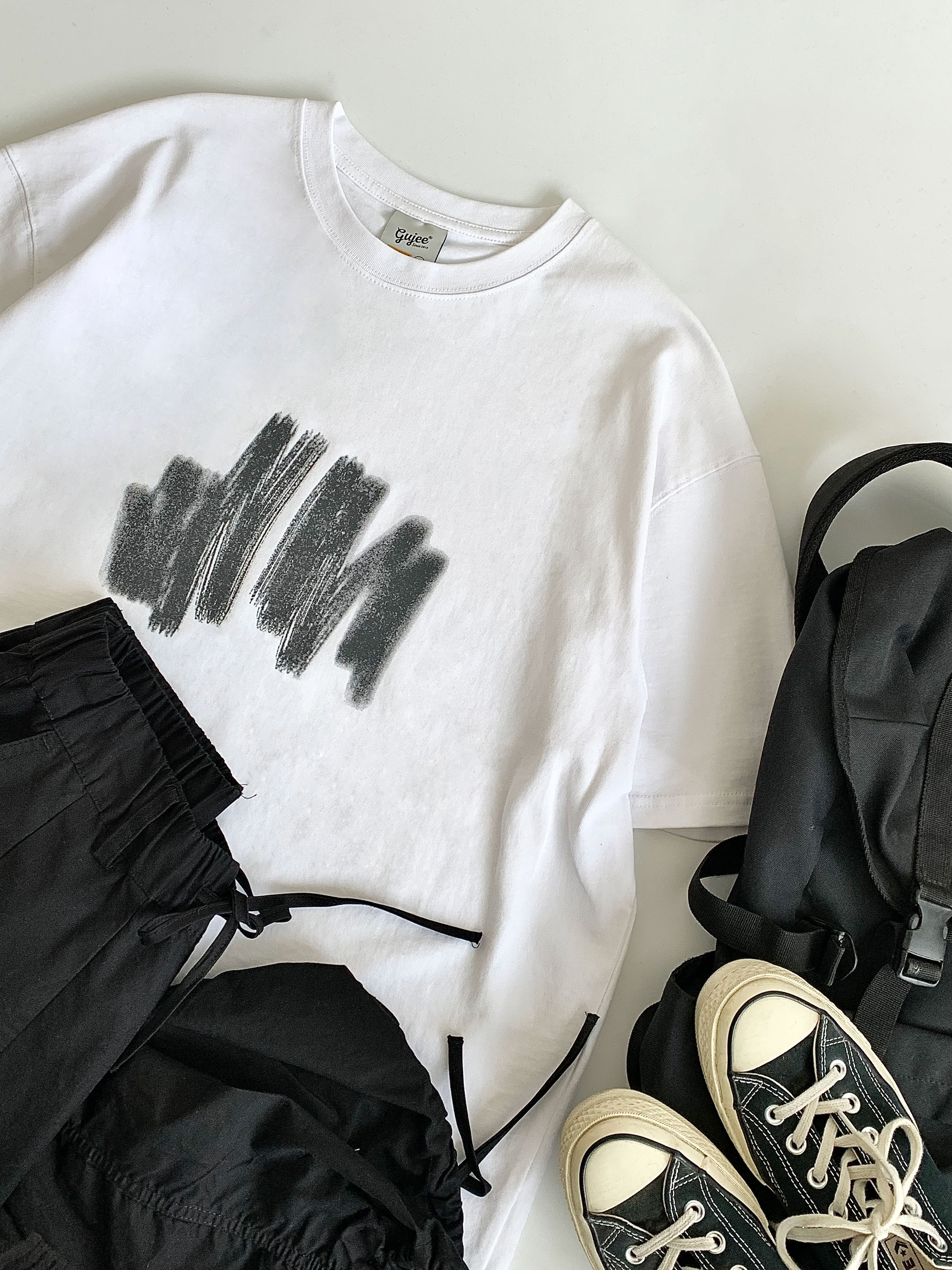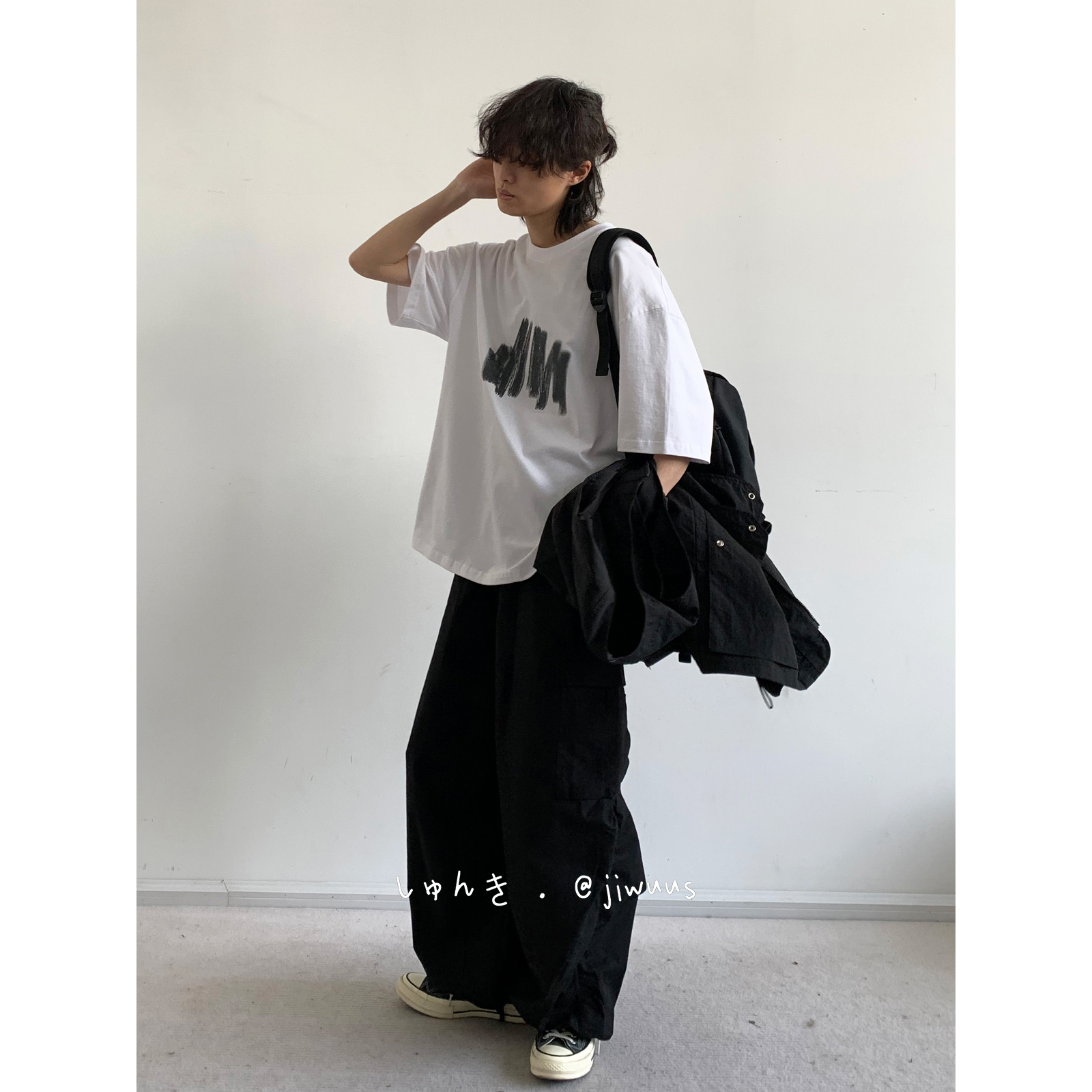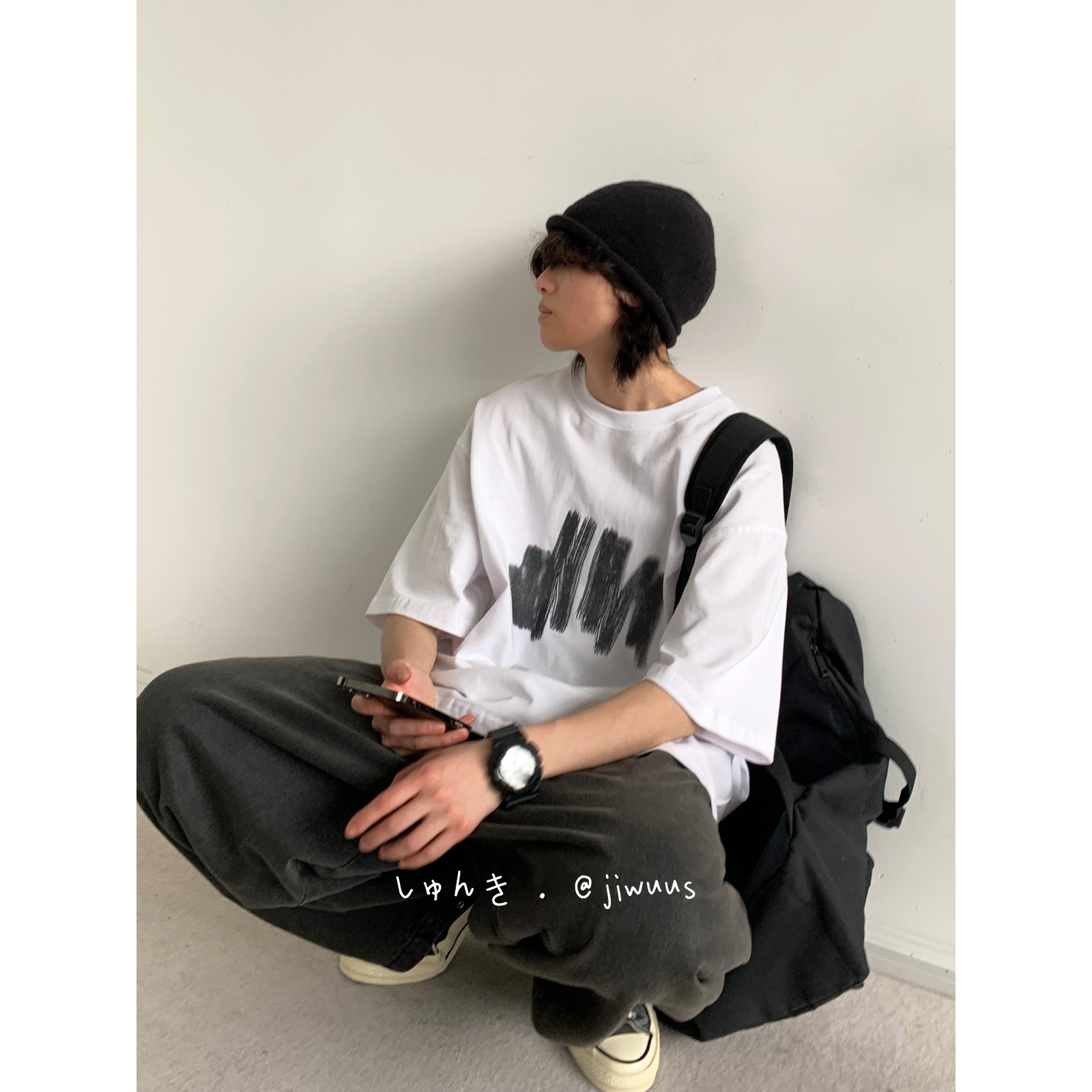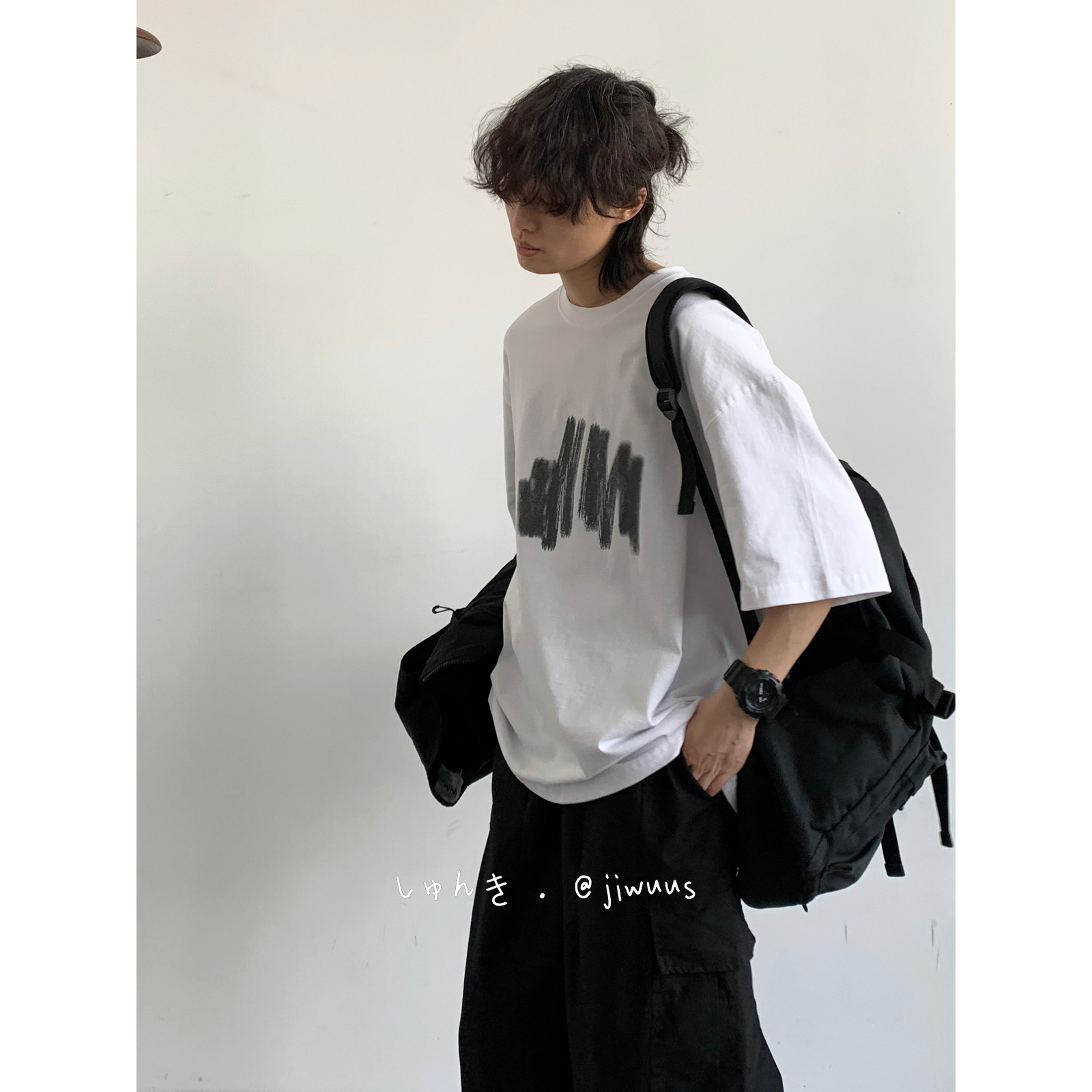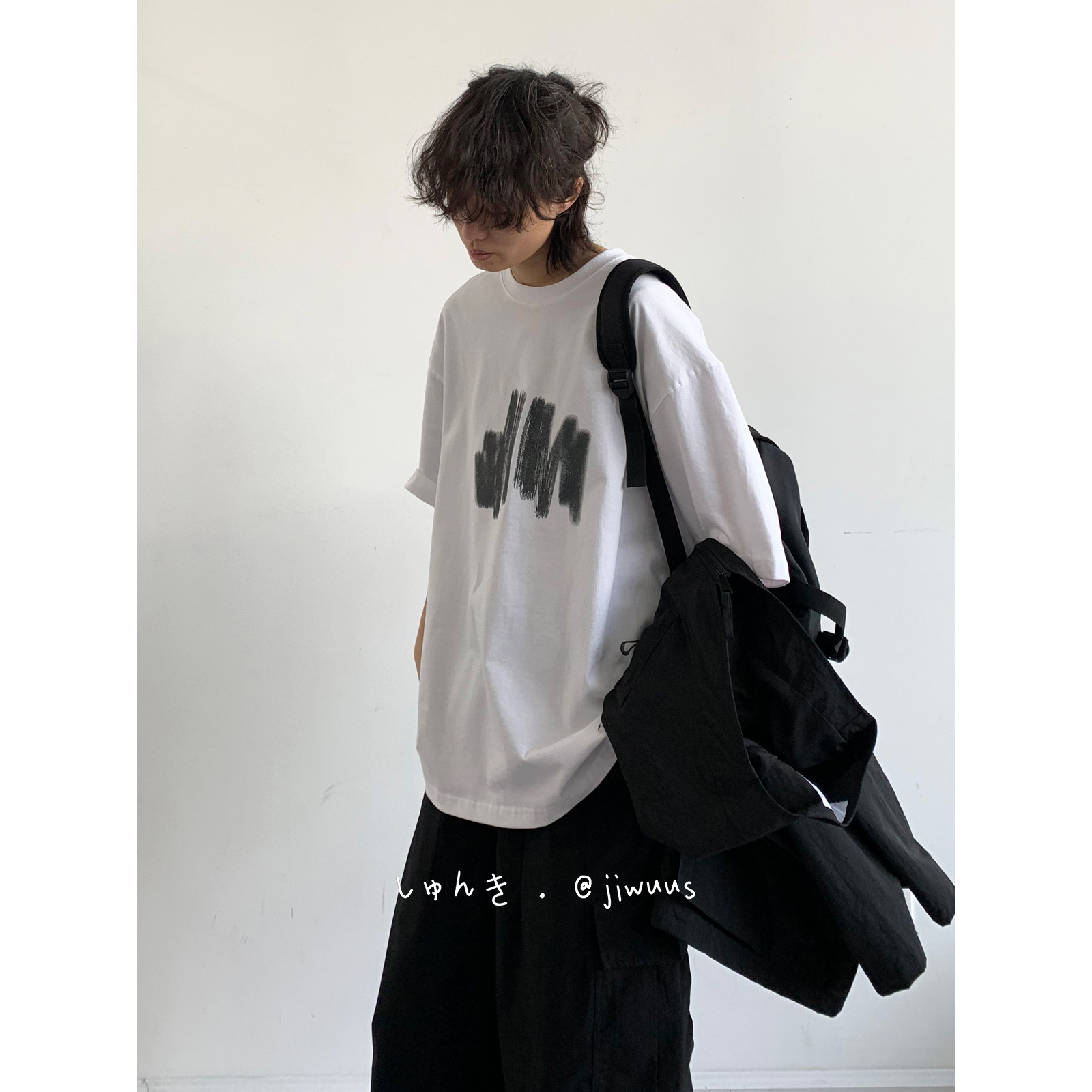 幾物jiwuus 夏日系個性簡約印花短袖Tee男女生百搭休閒寬鬆T恤衫
