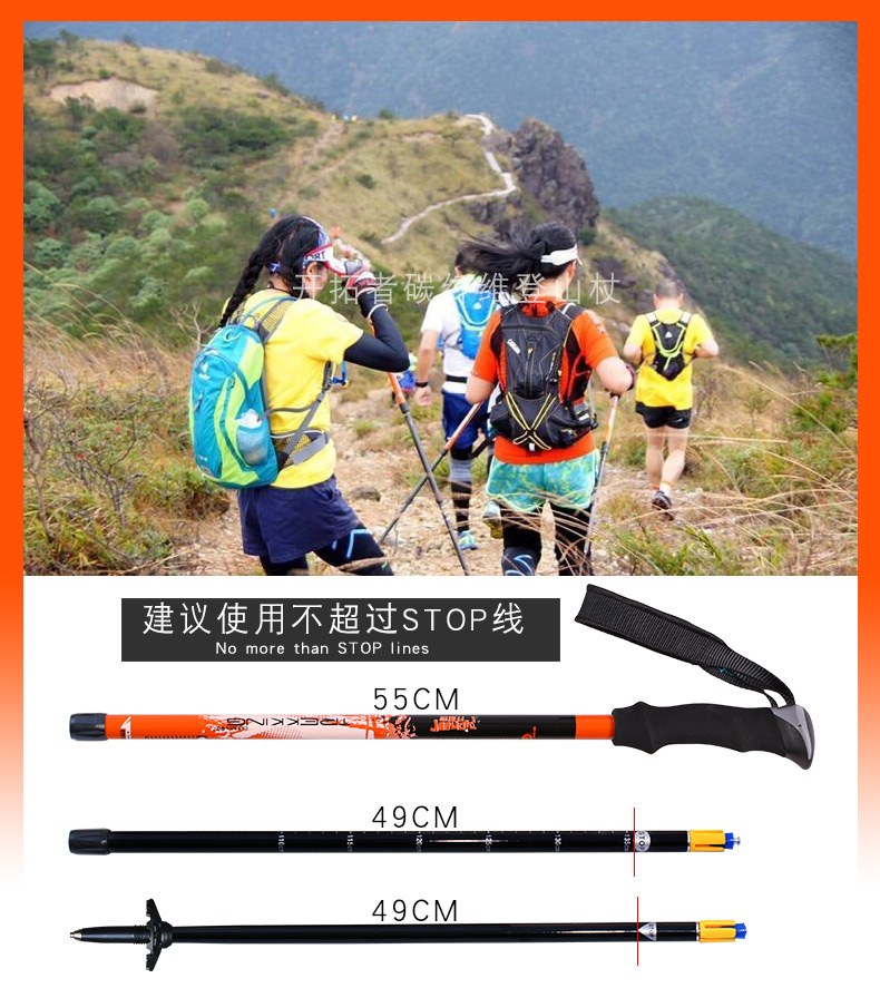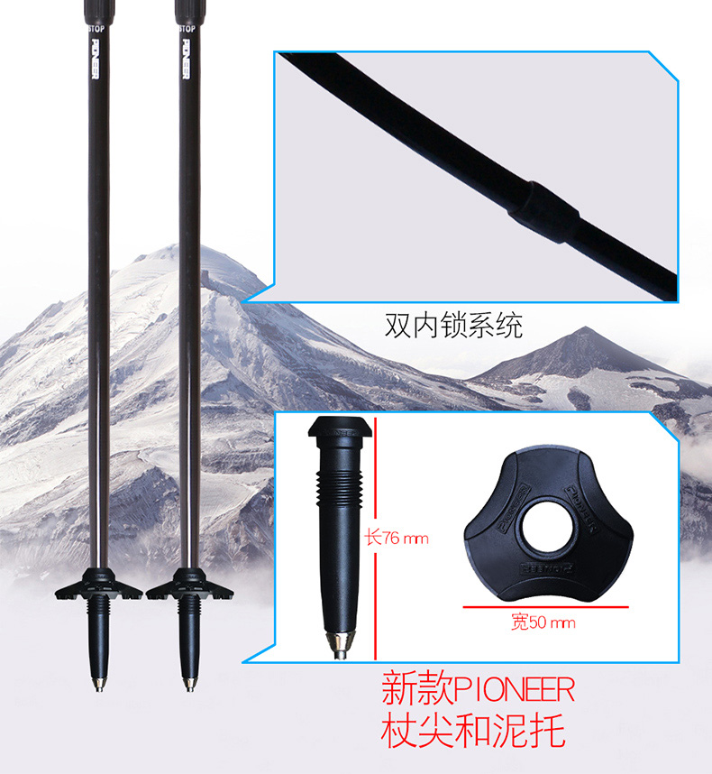 開拓者(pioneer) 登山杖碳素超輕戶外超輕碳素三節伸縮 旅行裝備