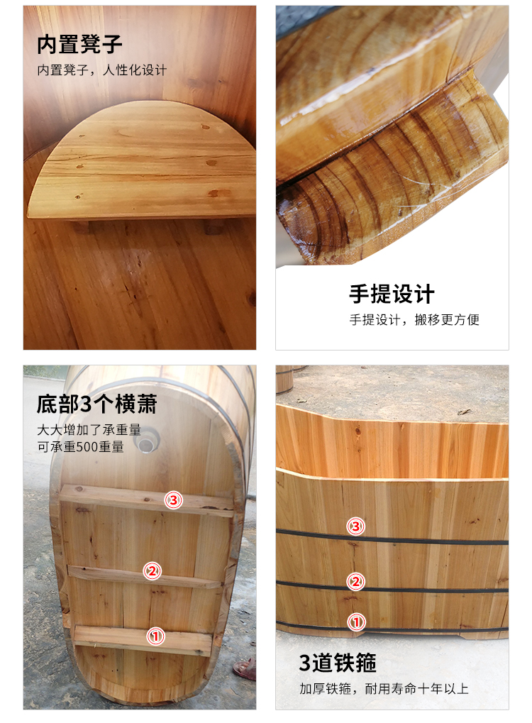 3G69批发中式泡澡浴桶加厚浴盆浴盆收缩婴儿实木木桶成人沐浴盆全