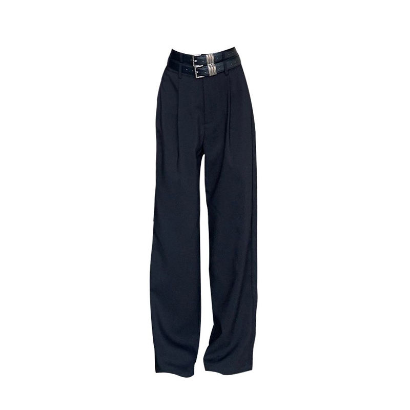 清倉秒殺~品牌折扣專櫃撤回窄版闊腿褲休閒西裝褲高腰顯瘦黑色褲