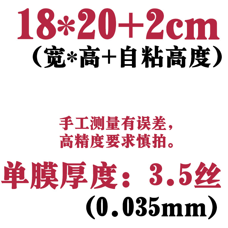 规格 加厚12.5*13.5自封袋490个 单面3丝厚,加厚17*17自封袋790个 单面3.5丝厚,加厚18*20自封袋790个 单面3.5丝厚,加厚23*27自封袋390个 单面3.5丝厚,加厚20*27自粘袋390个 单面3.5丝厚,加厚27*28自粘袋390个 单面3.5丝厚,加厚15*15自封袋790个 单面3丝厚,加厚13*27自封袋390个 单面3.5丝厚,加厚10*12+2自粘袋395个 单面5丝厚,加厚9*24自封袋390个 单面3.5丝厚