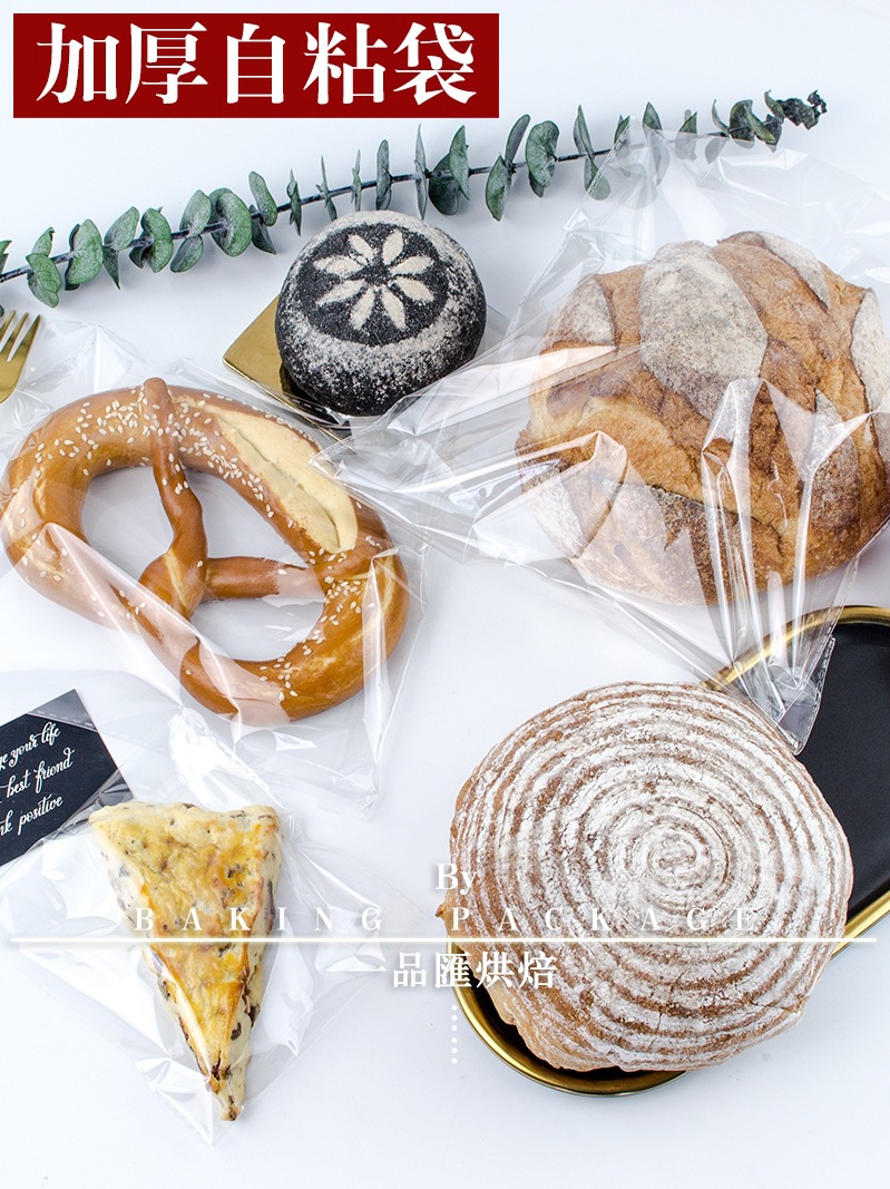 FY5E批发透明外卖加厚软欧包单独面包自粘袋贝果麻薯吐司甜