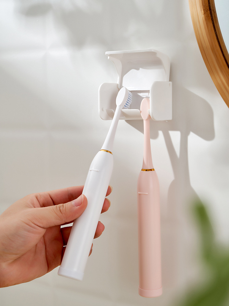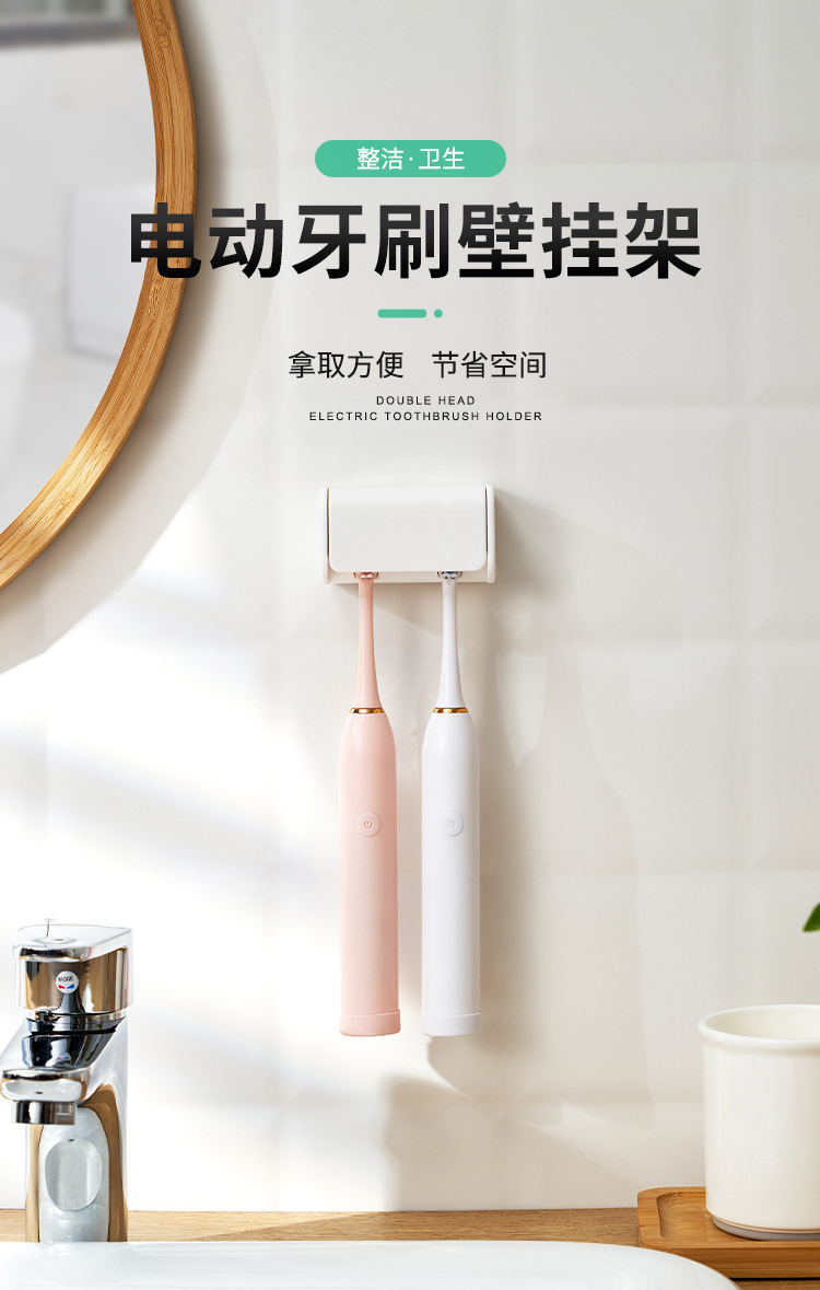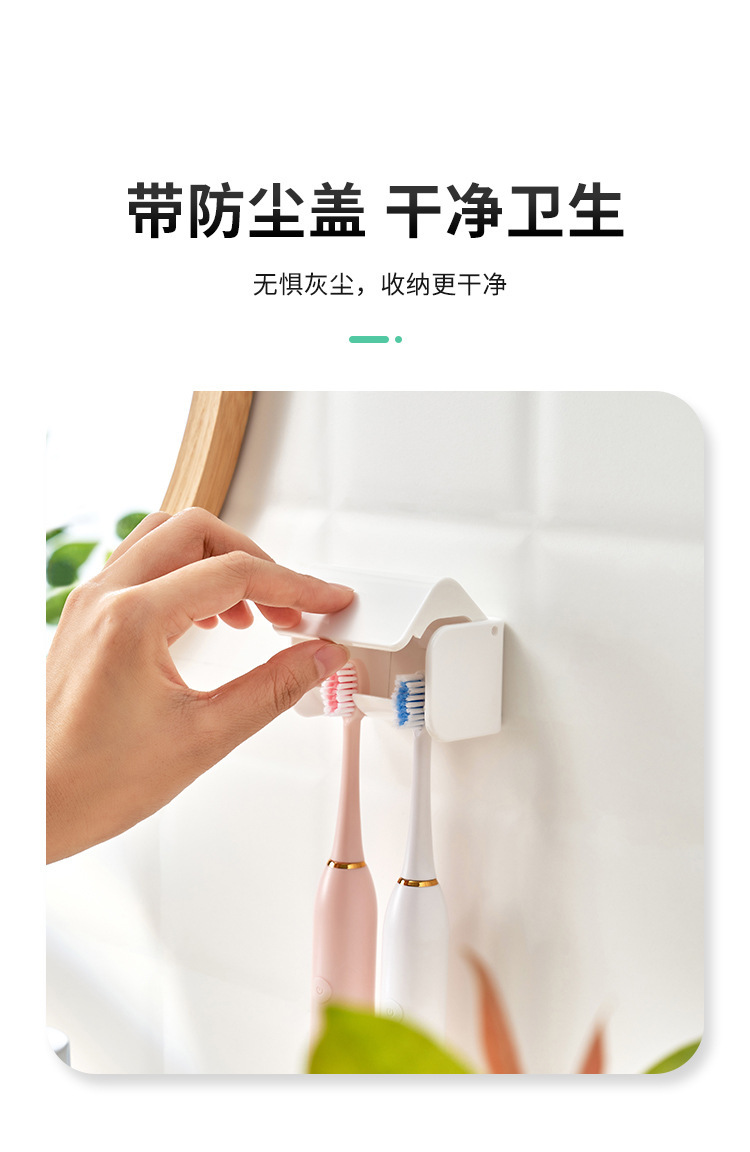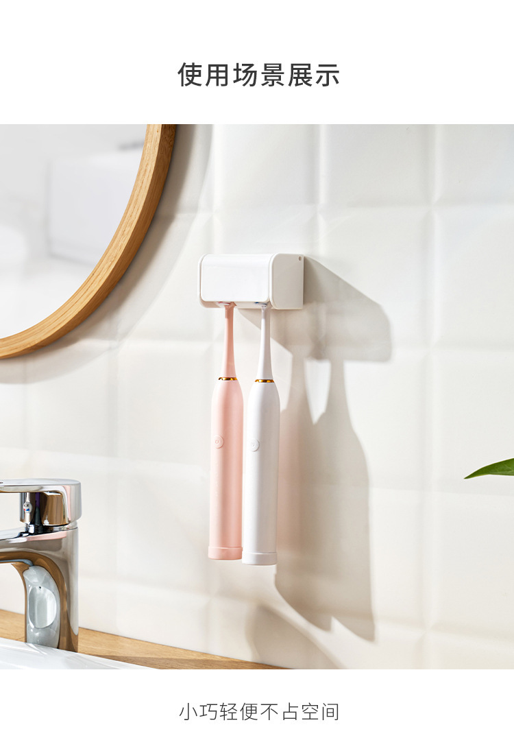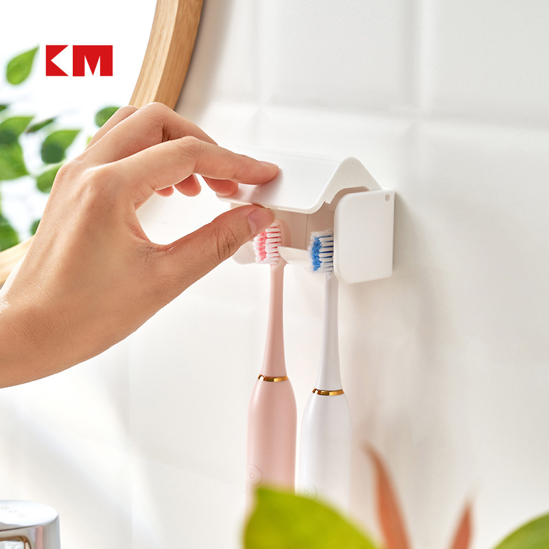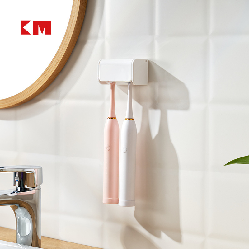 日本KM.810 粘贴双格电动牙刷架 简约牙具架 粘贴式防尘牙刷挂