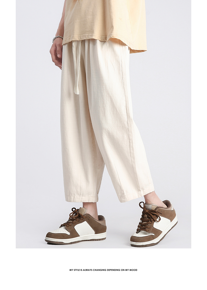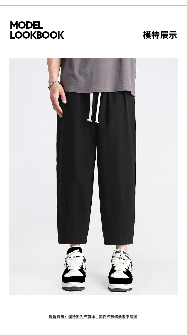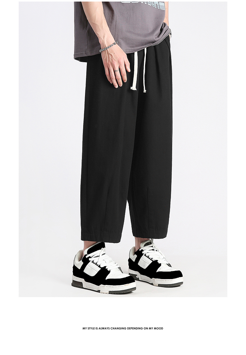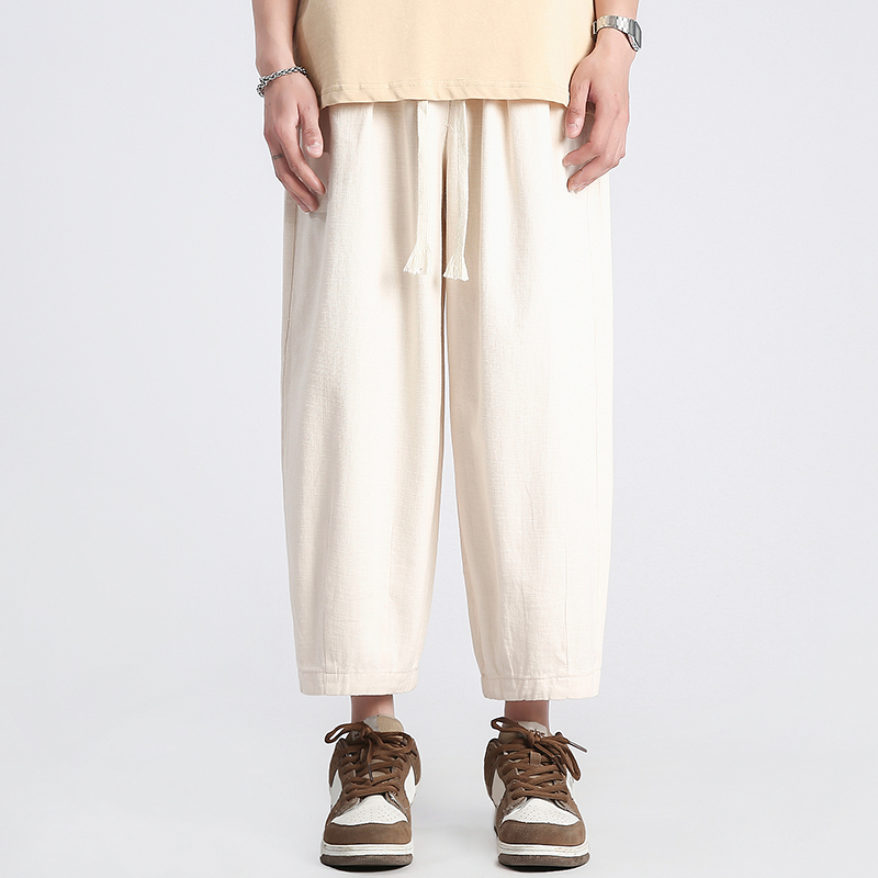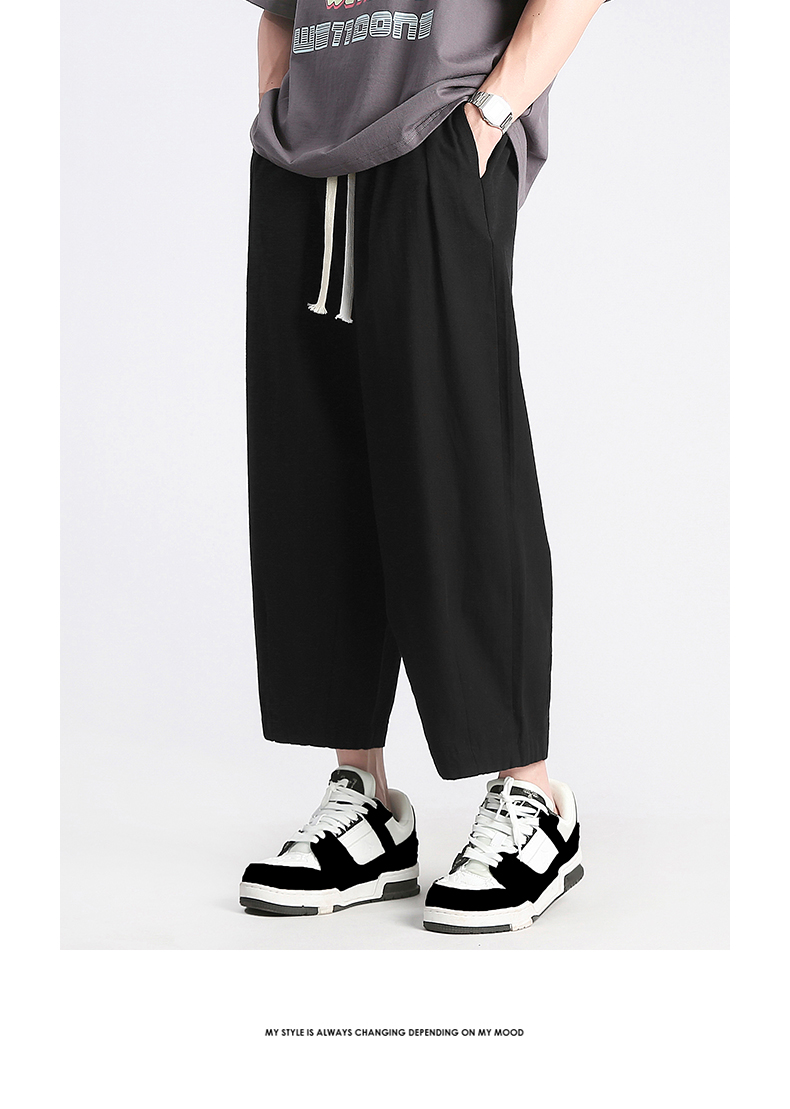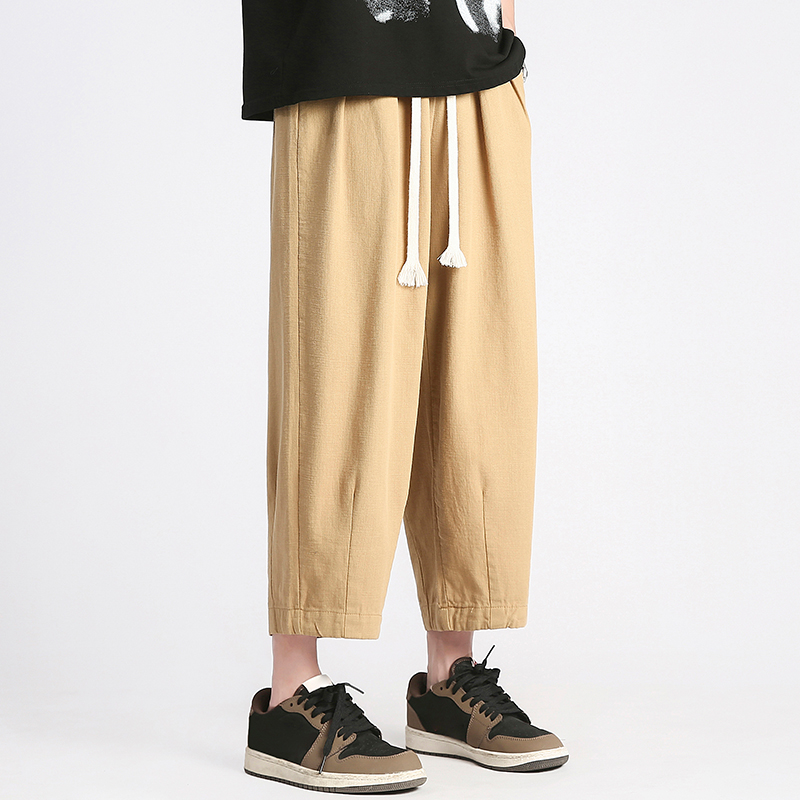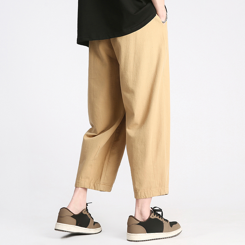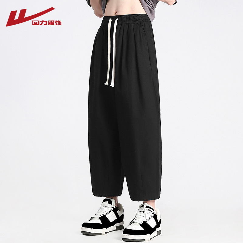 回力純棉褲子男夏季潮牌日系九分闊腿褲薄款寬鬆工裝運動休閒長褲