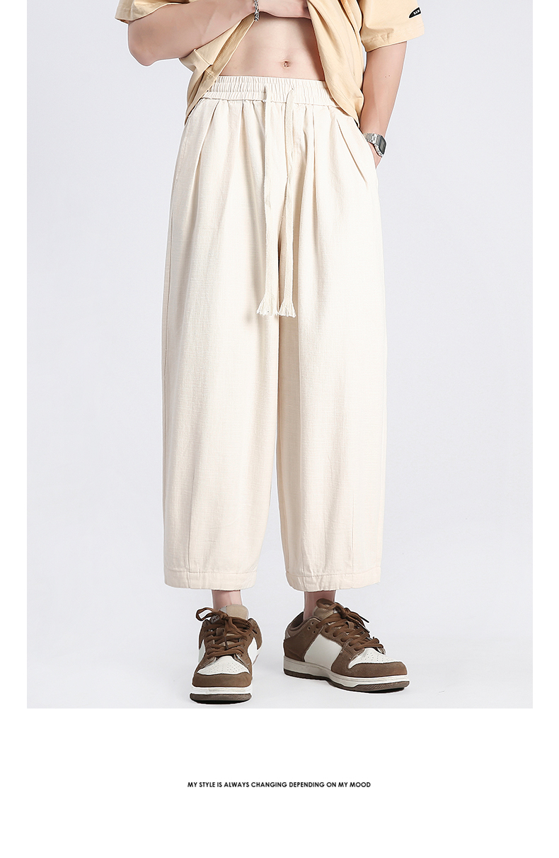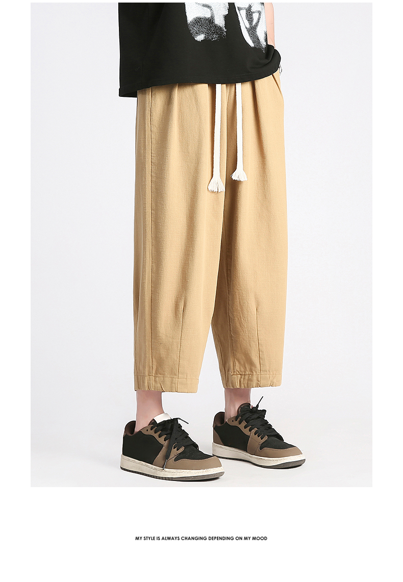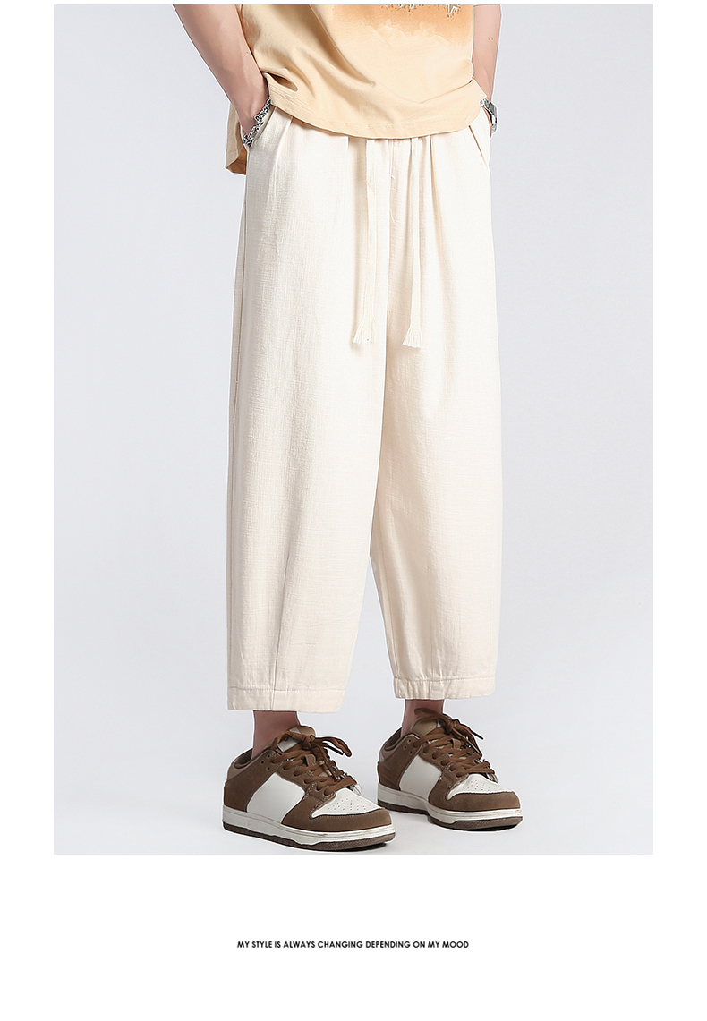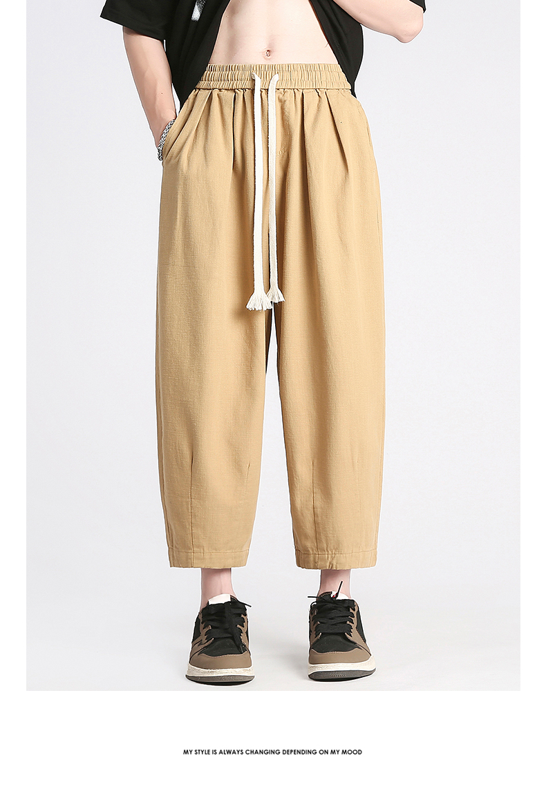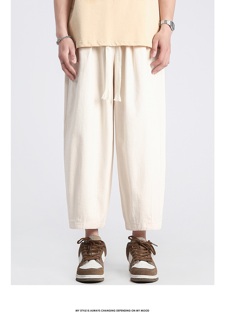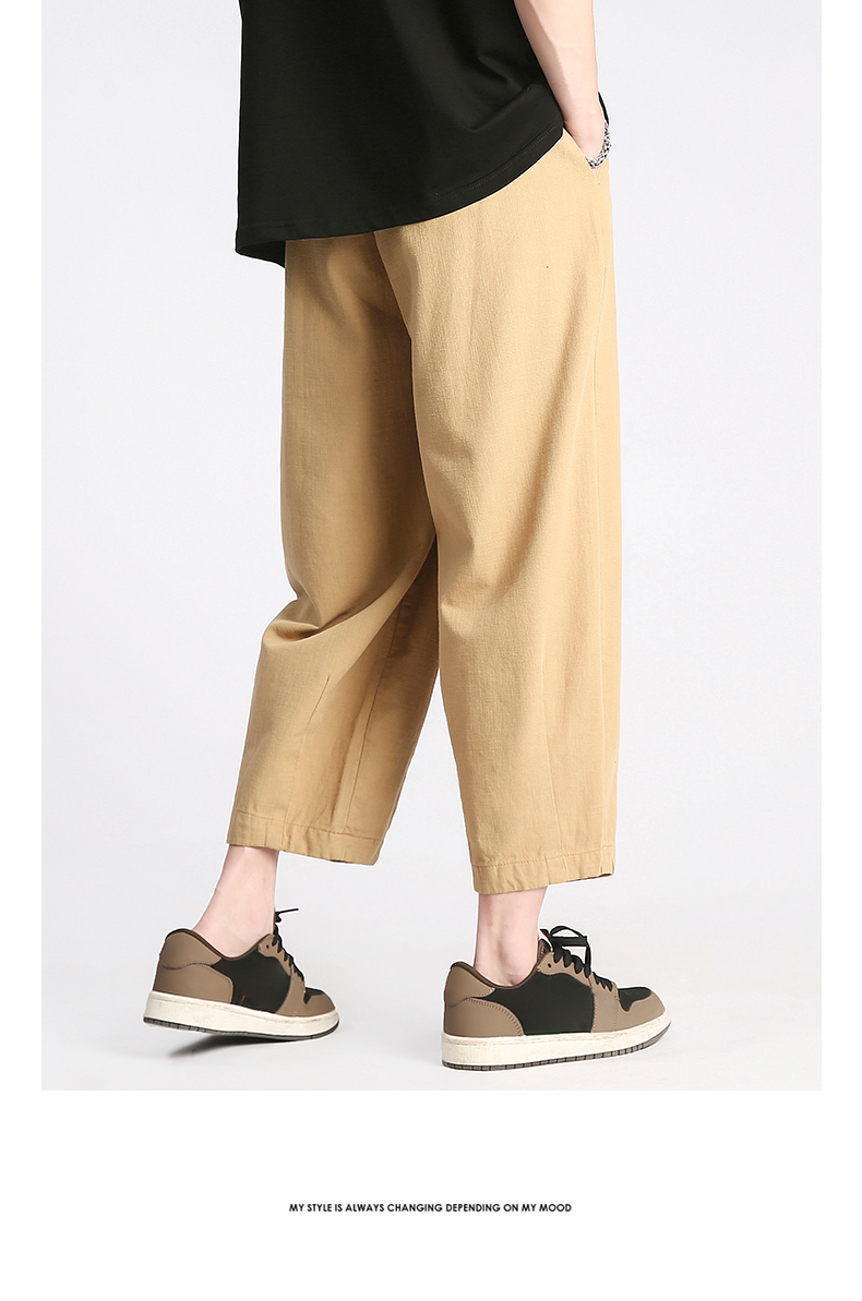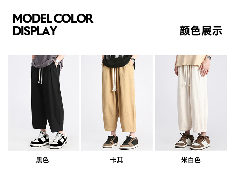 回力純棉褲子男夏季潮牌日系九分闊腿褲薄款寬鬆工裝運動休閒長褲