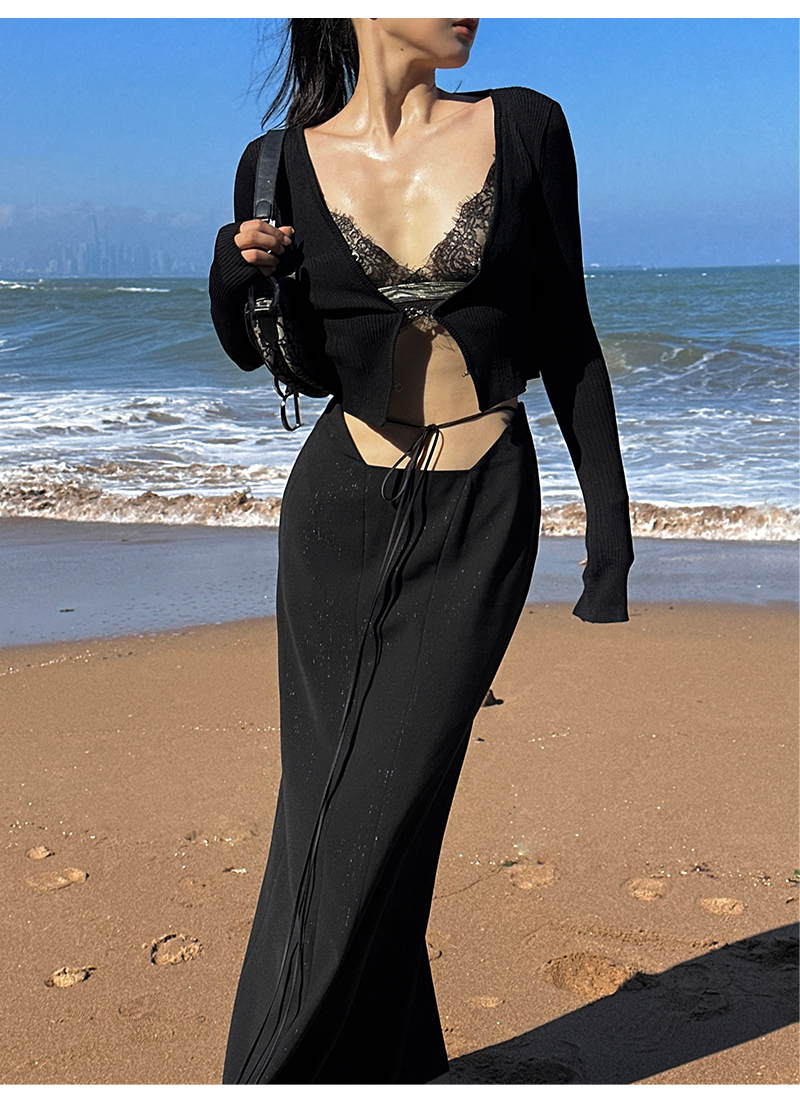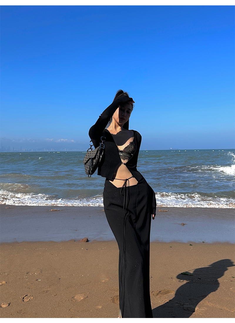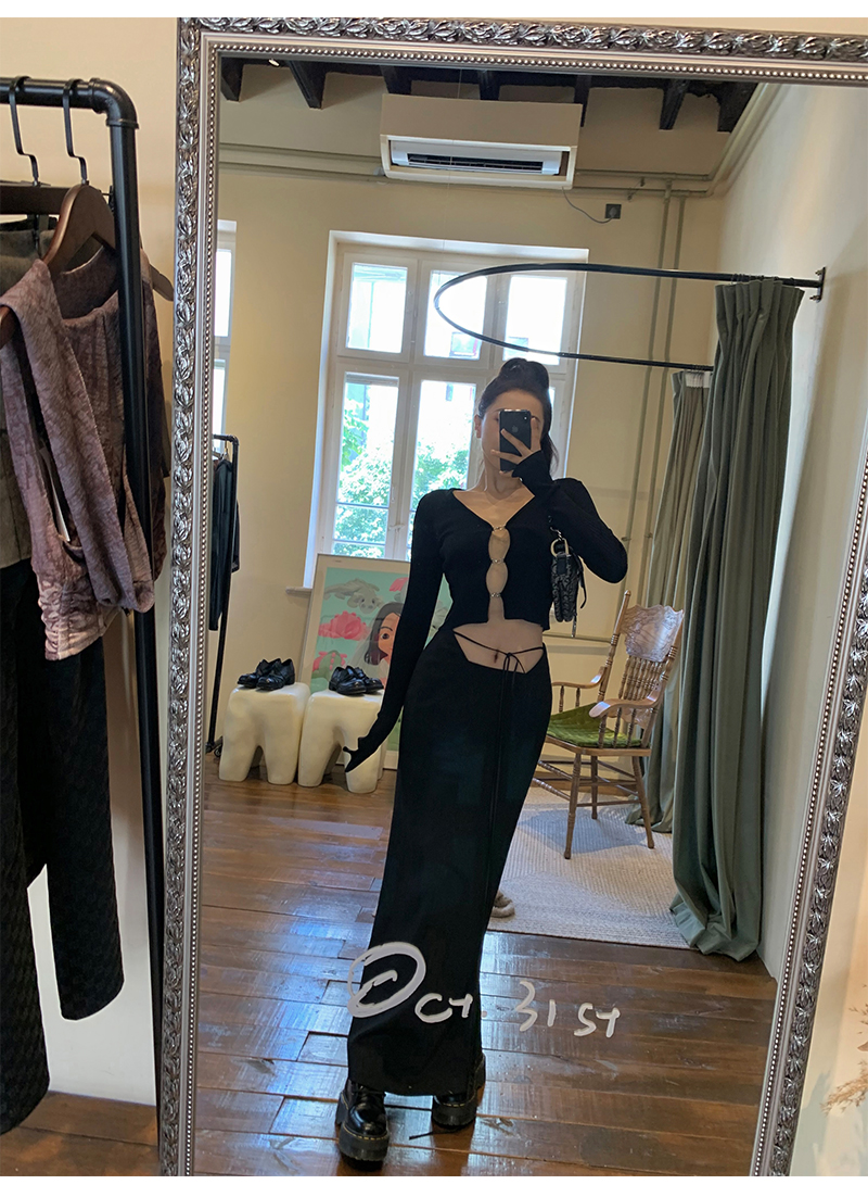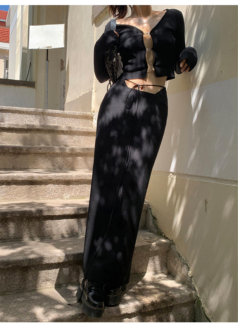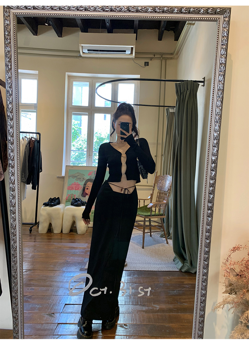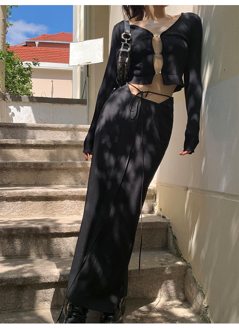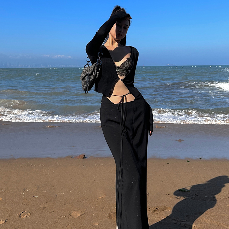 小麗XIAOLI慵懶週末黑色包臀半身長裙秋裝梨形身材小眾顯瘦裙子夏