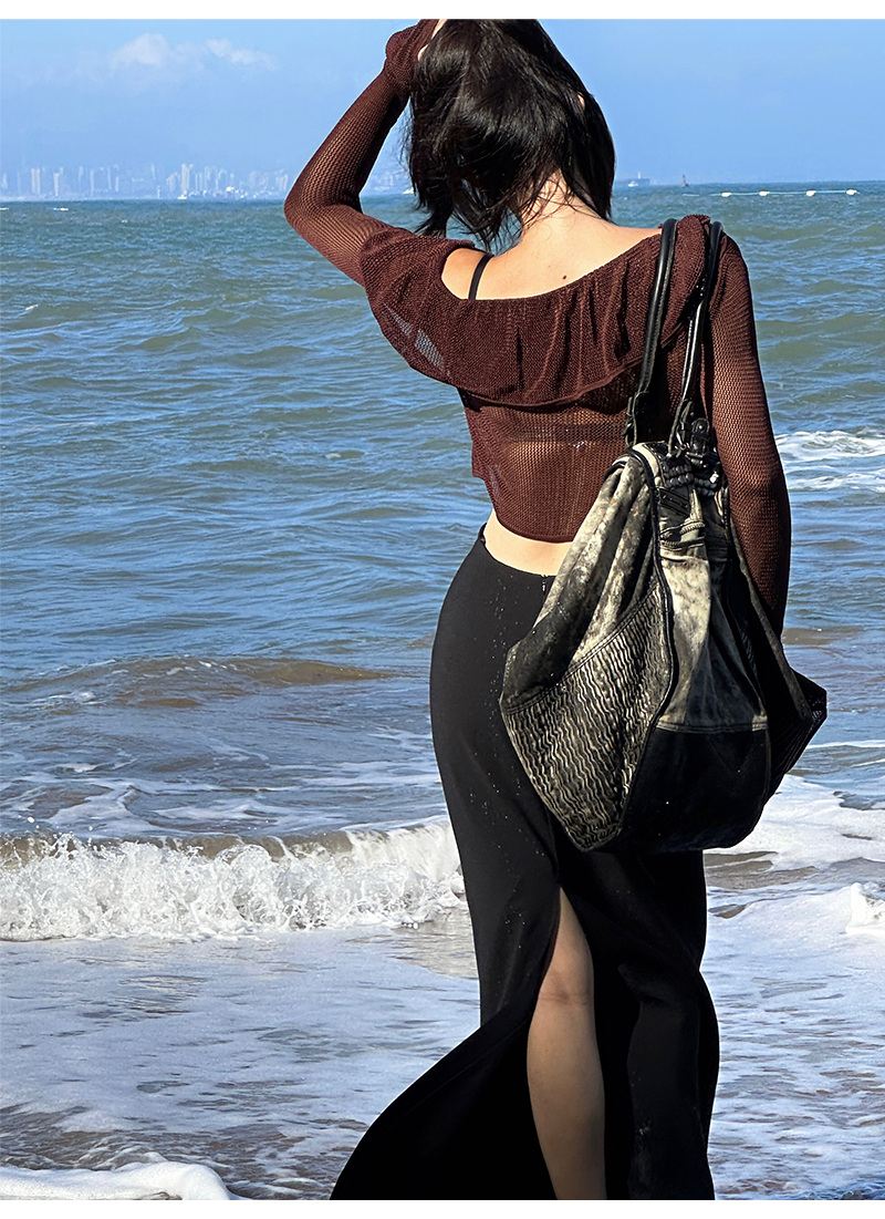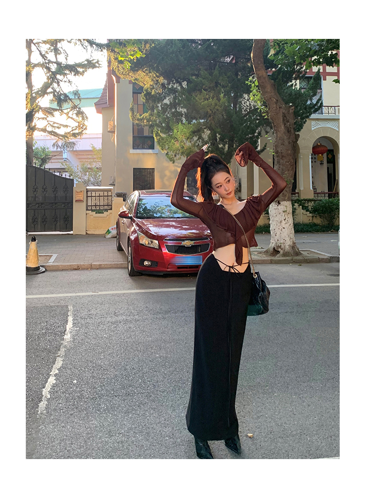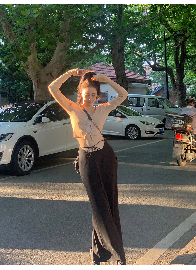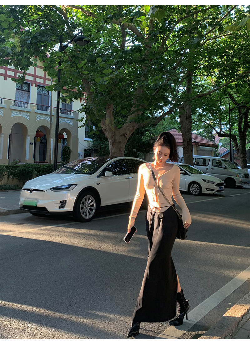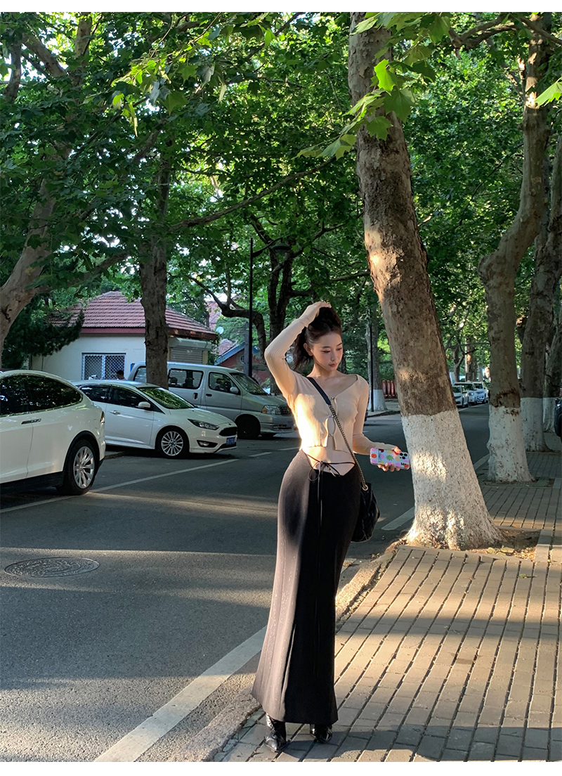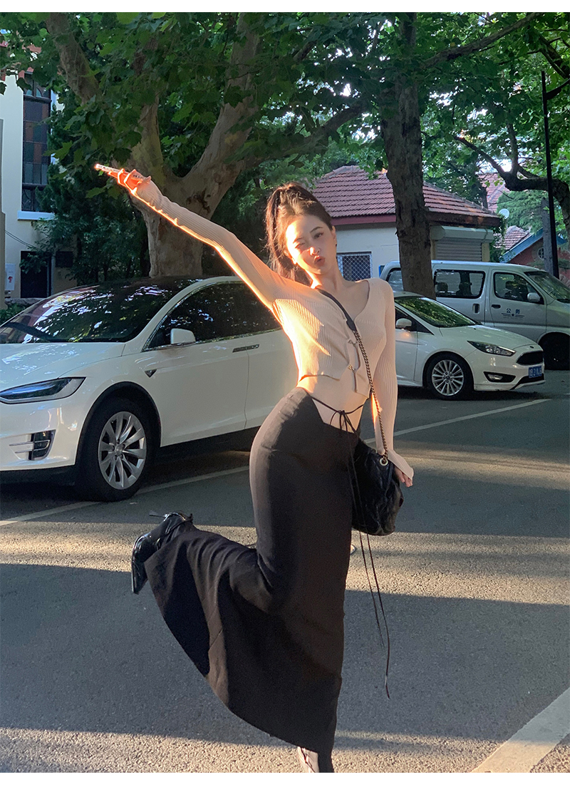 小麗XIAOLI慵懶週末黑色包臀半身長裙秋裝梨形身材小眾顯瘦裙子夏
