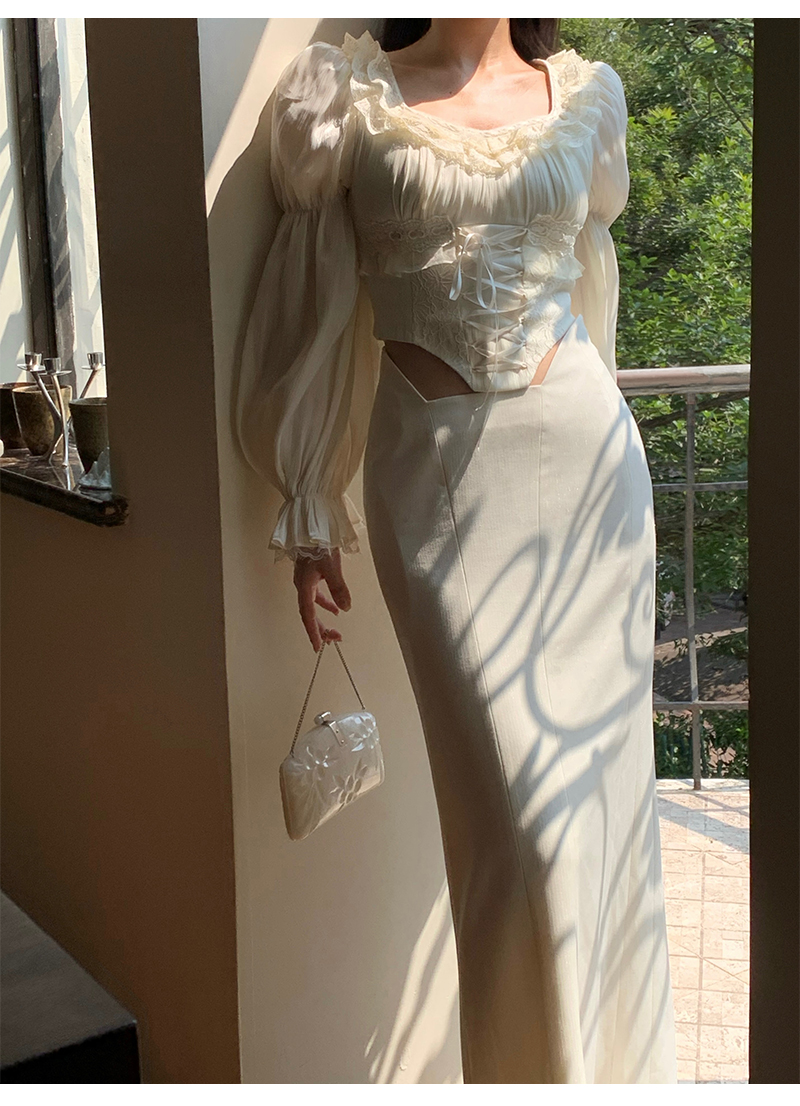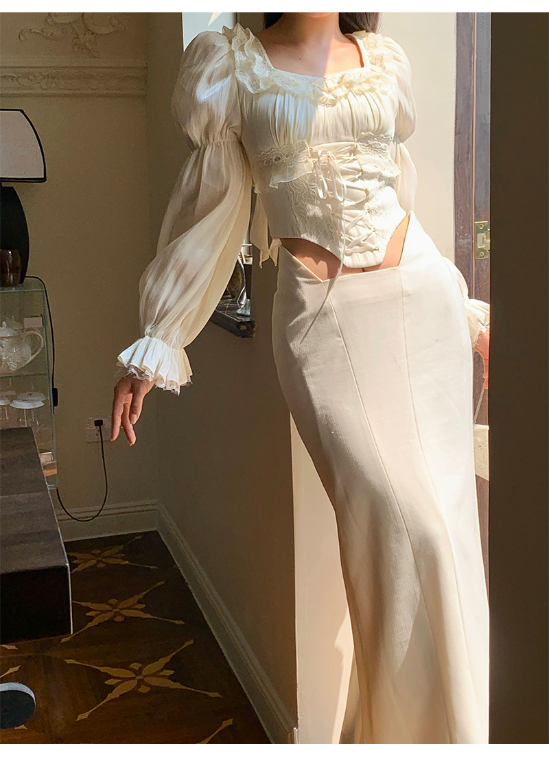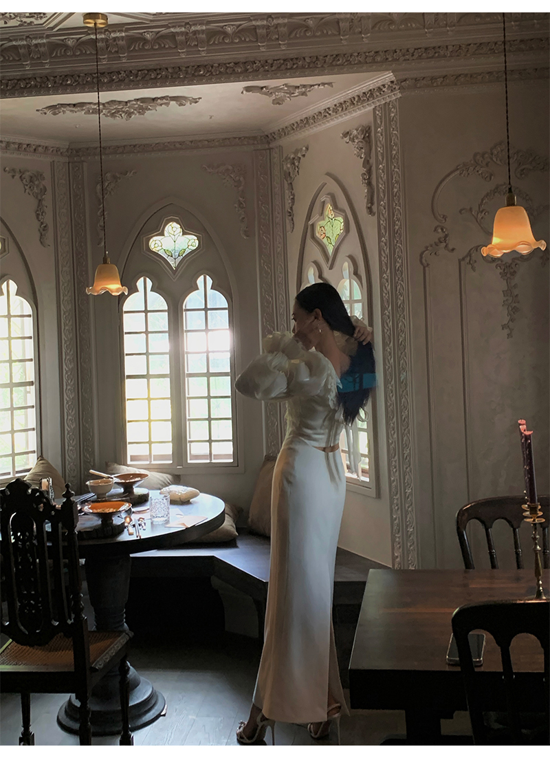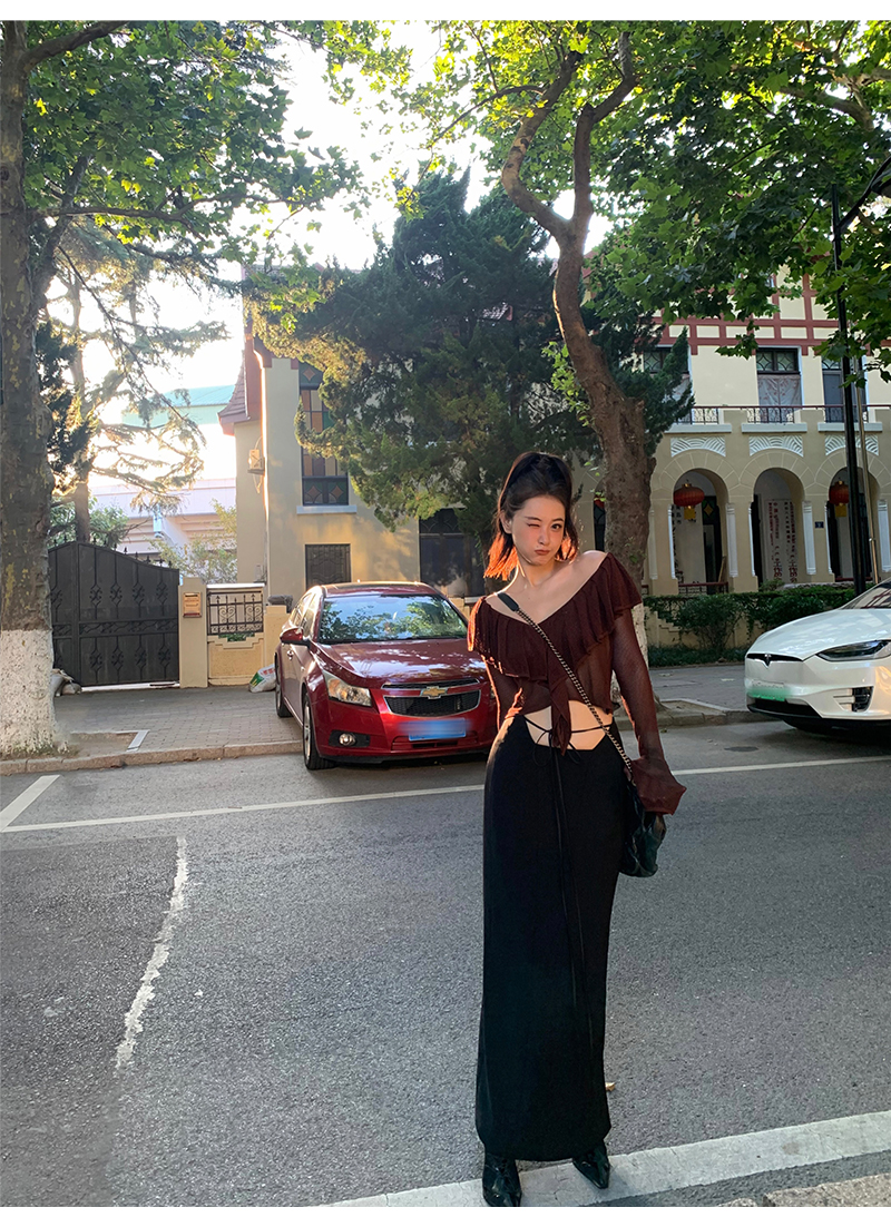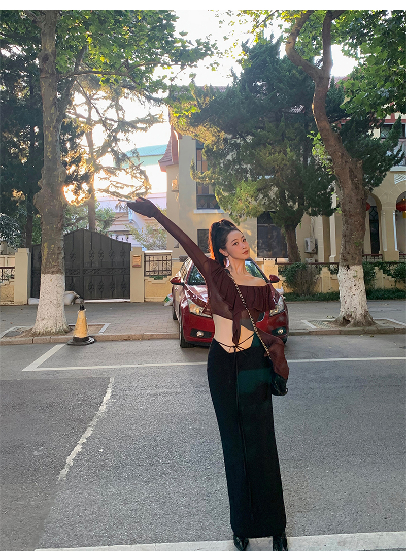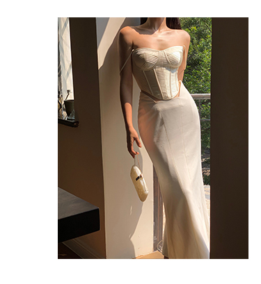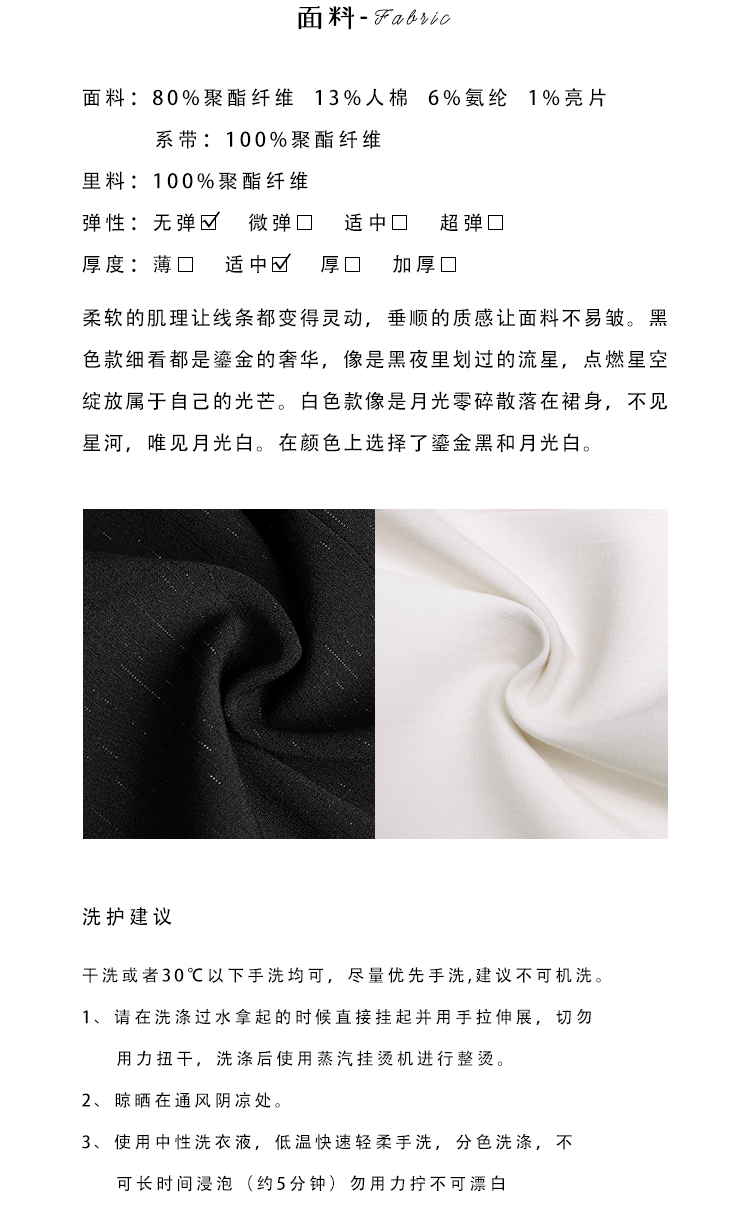 店主尺码建议:下裙是合体收腰的版型,面料无弹,建议根据胸腰围尺码挑选。