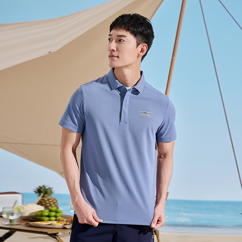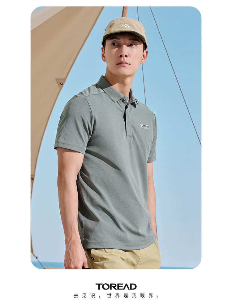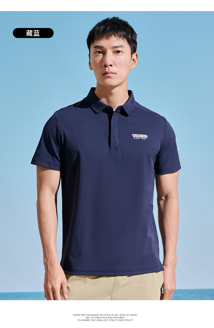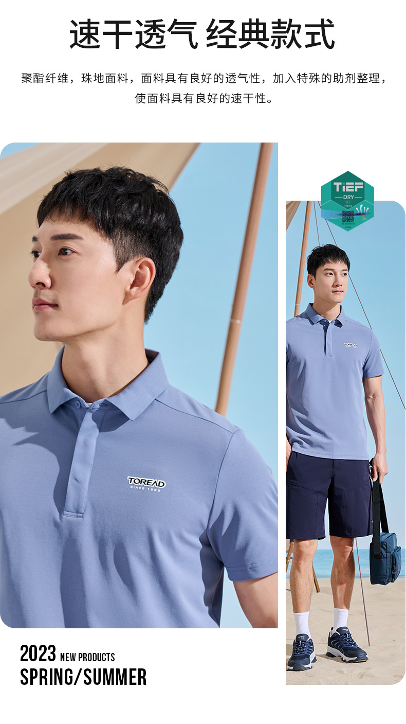 探路者T恤男23新款春夏戶外仿生速乾彈力透氣polo衫TAJJAL81241