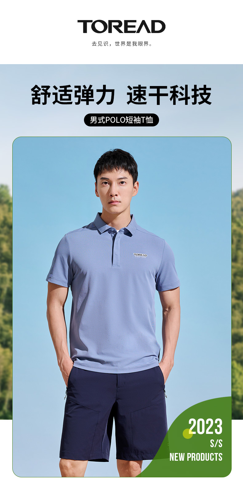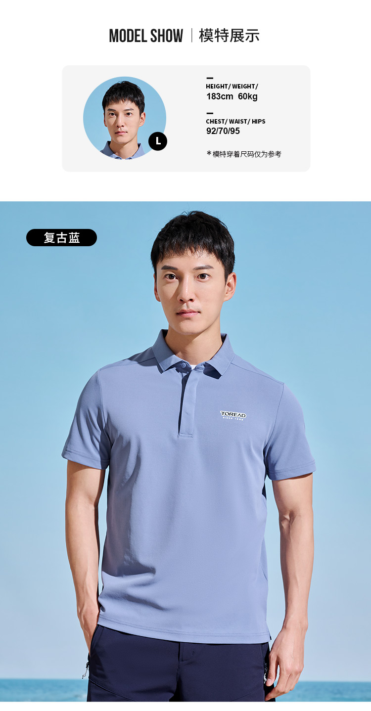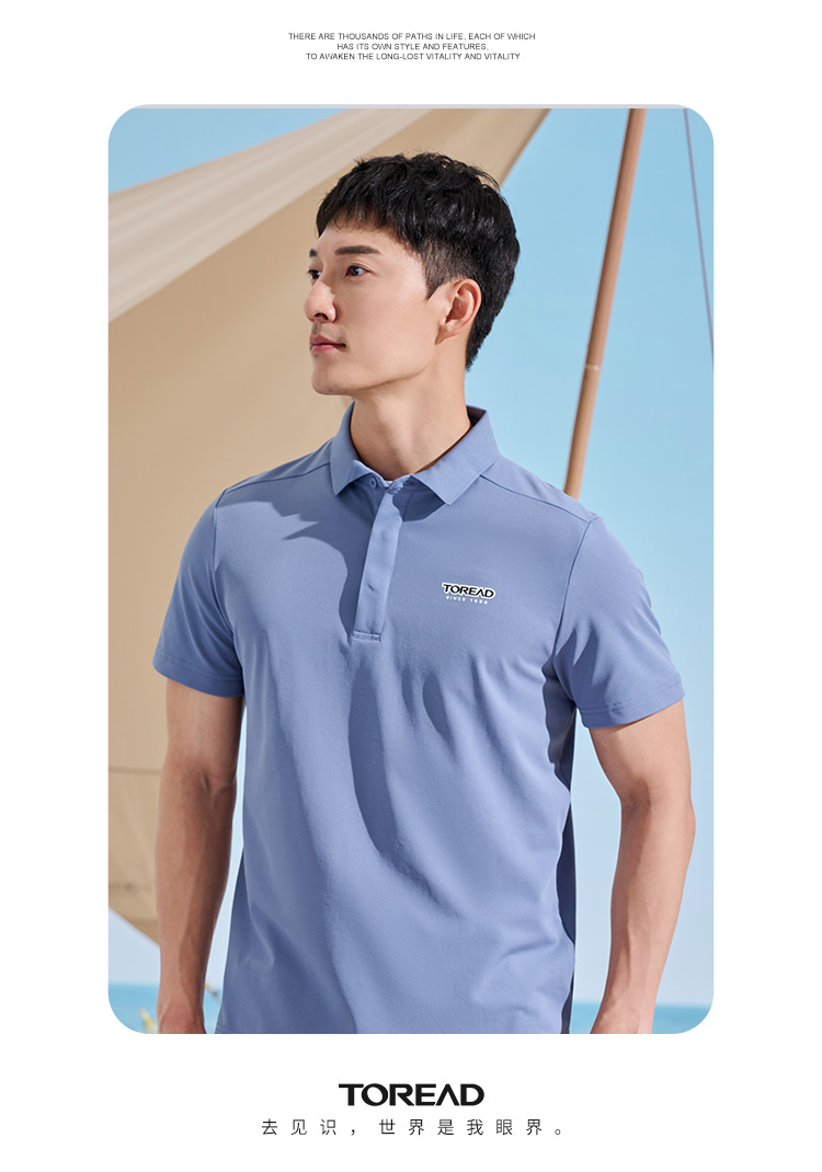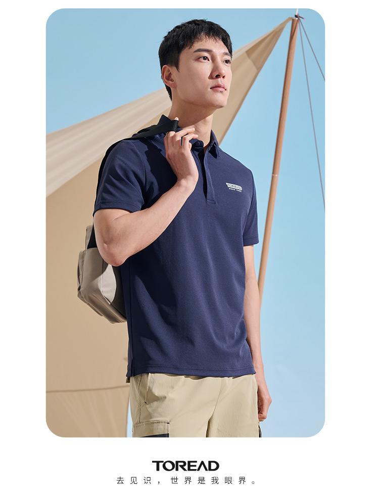 探路者T恤男23新款春夏戶外仿生速乾彈力透氣polo衫TAJJAL81241
