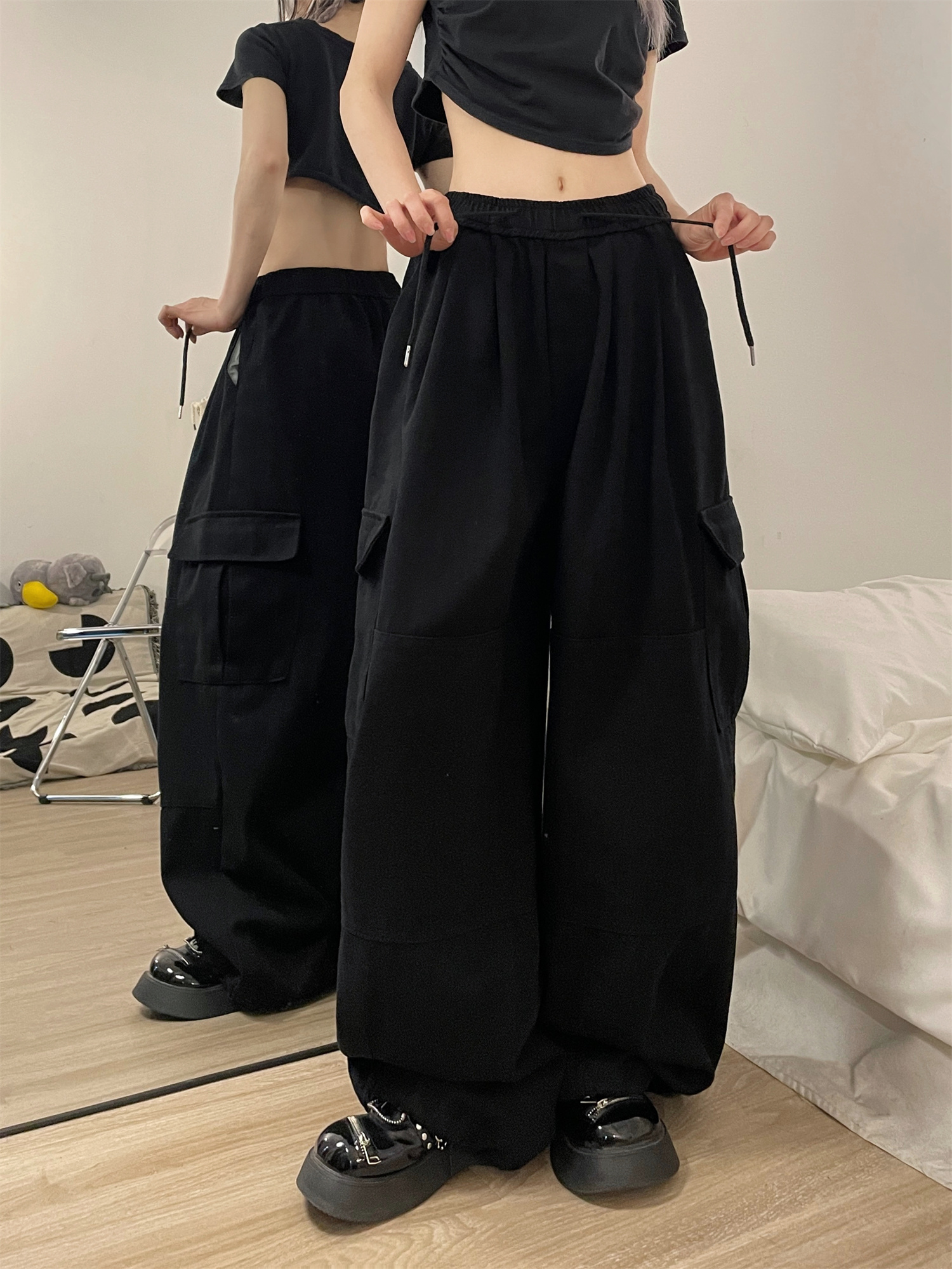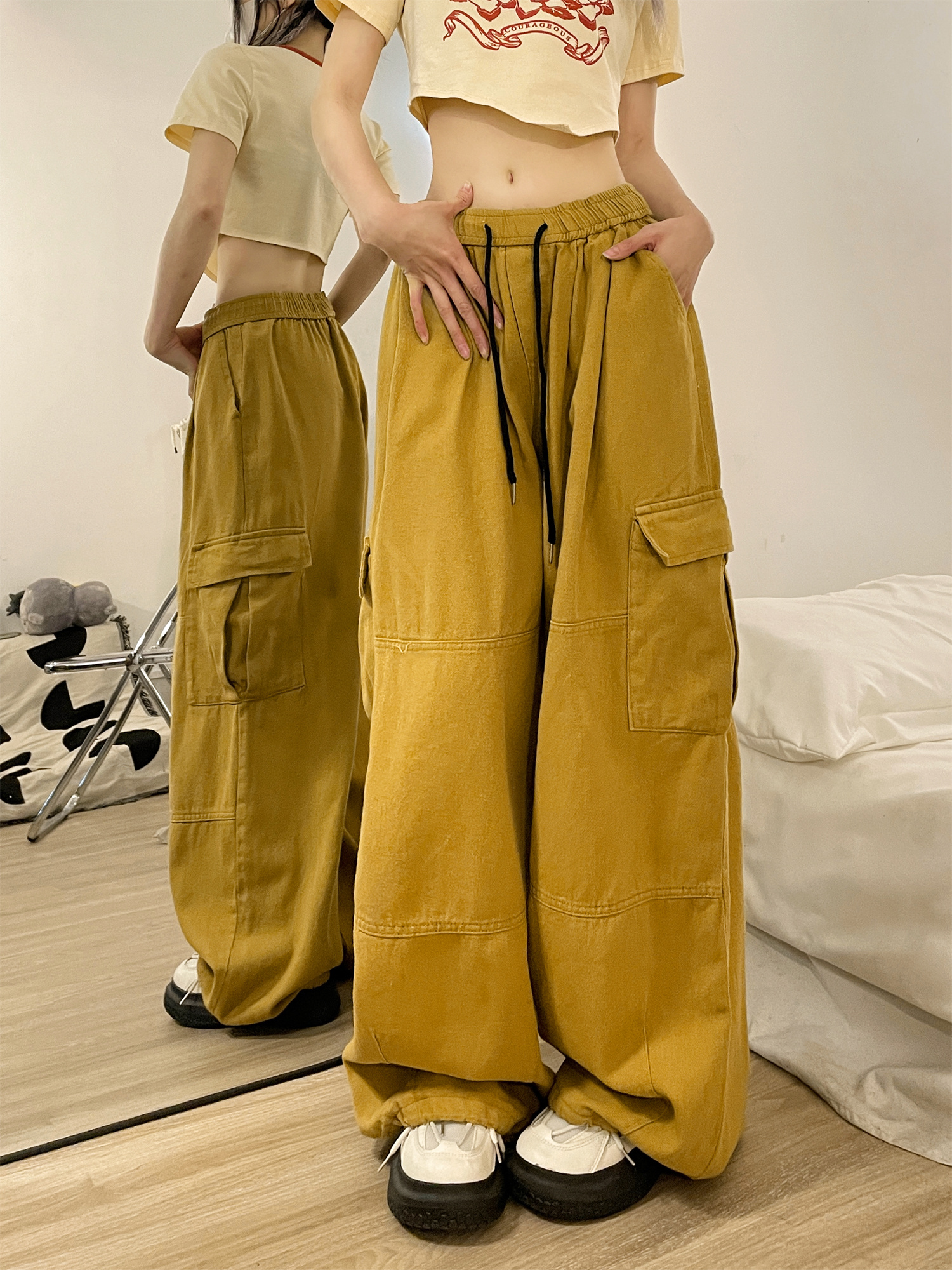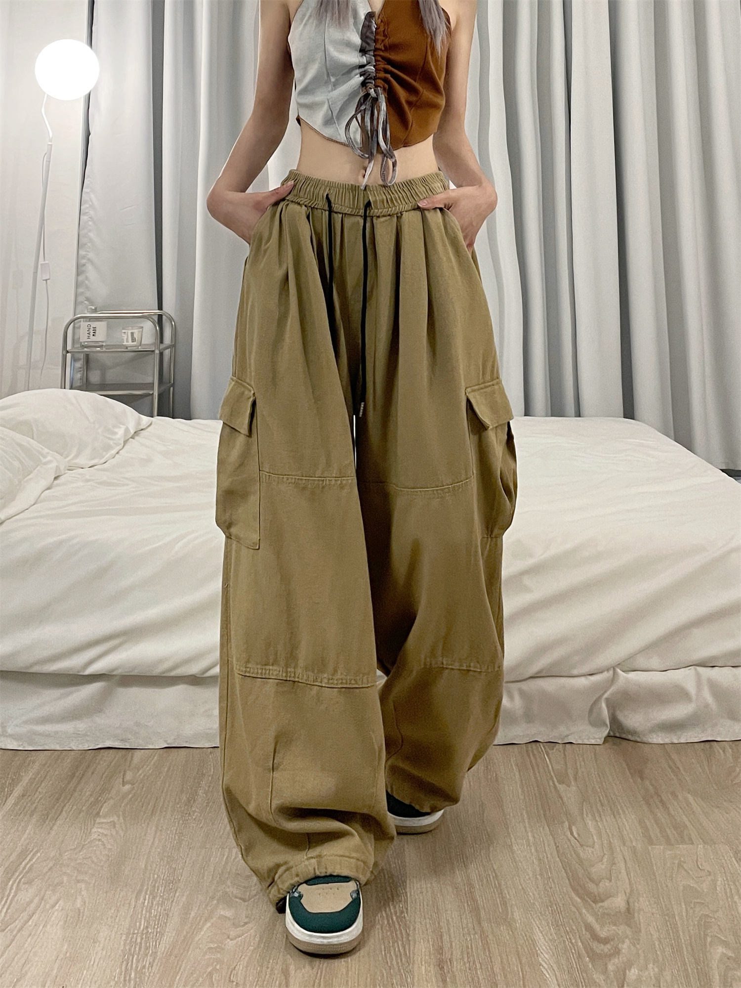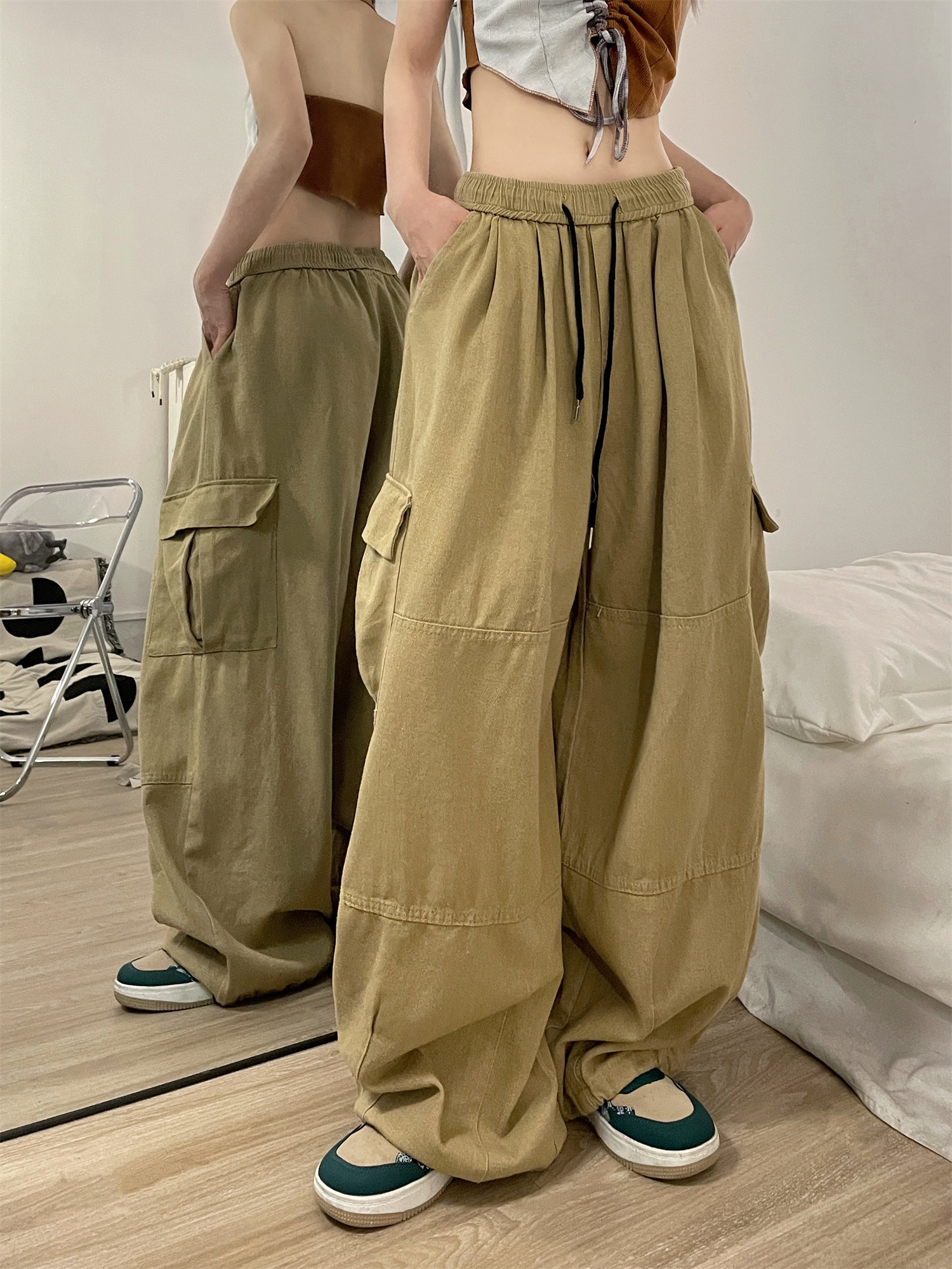 酷拽少女國潮復古工裝褲女闊腿拖地褲寬鬆顯瘦純棉休閒褲ins男女