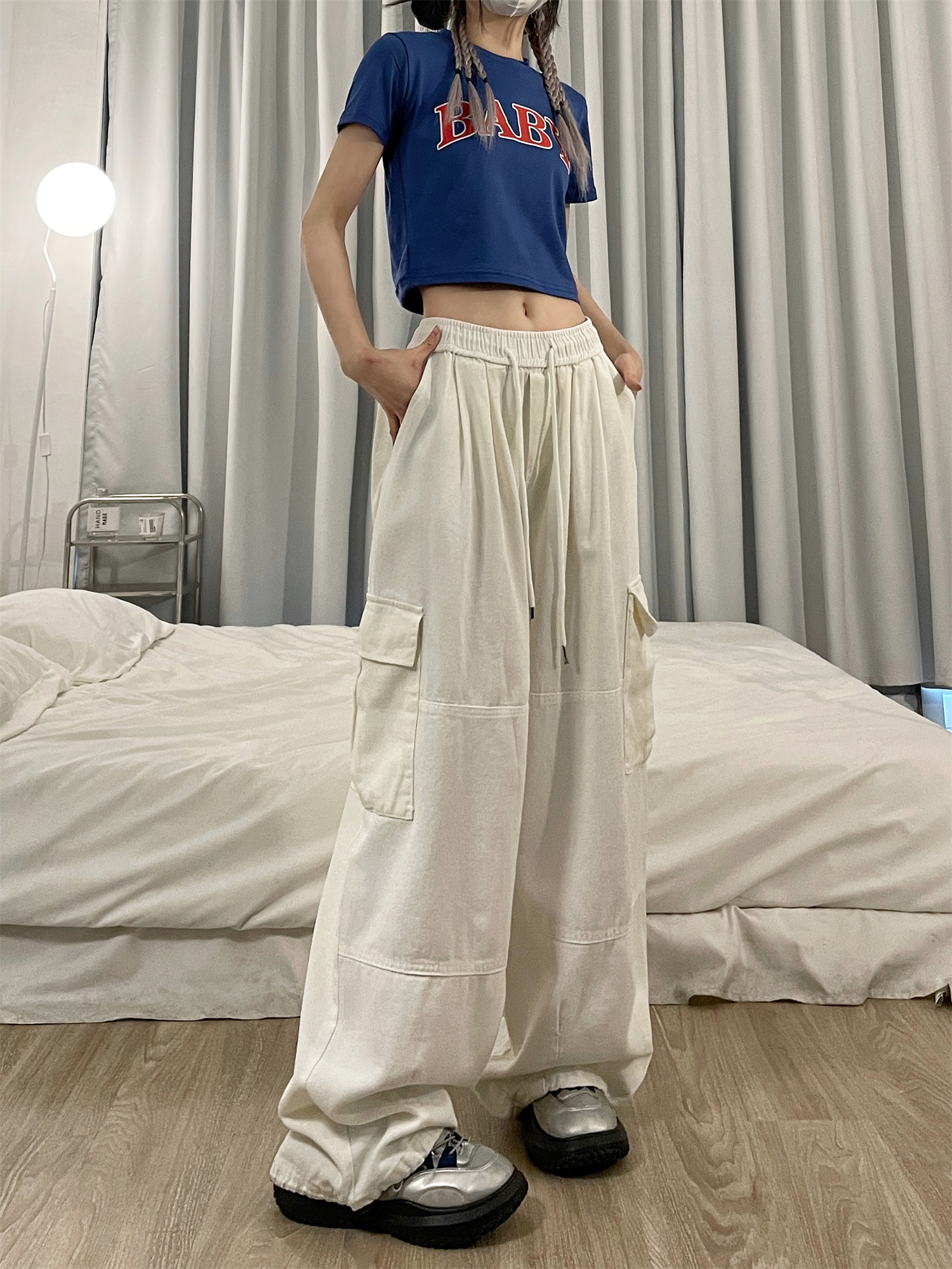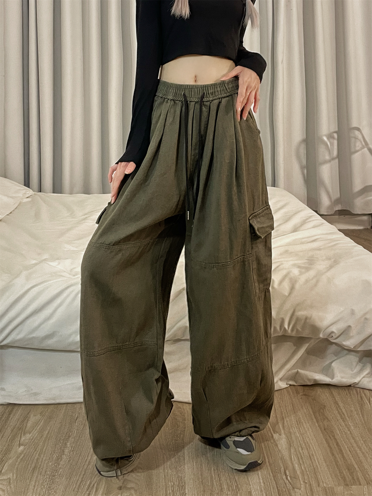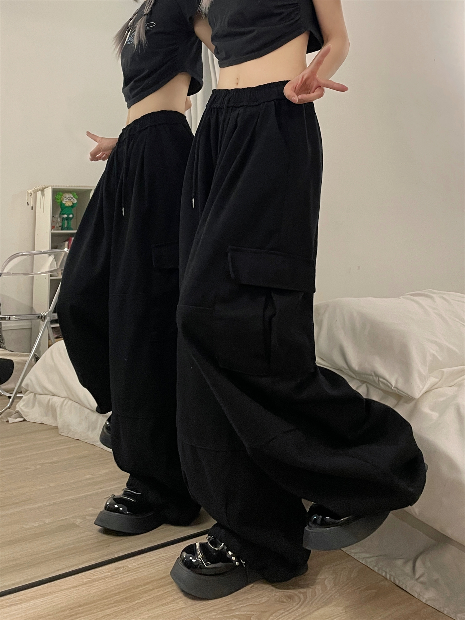 酷拽少女國潮復古工裝褲女闊腿拖地褲寬鬆顯瘦純棉休閒褲ins男女