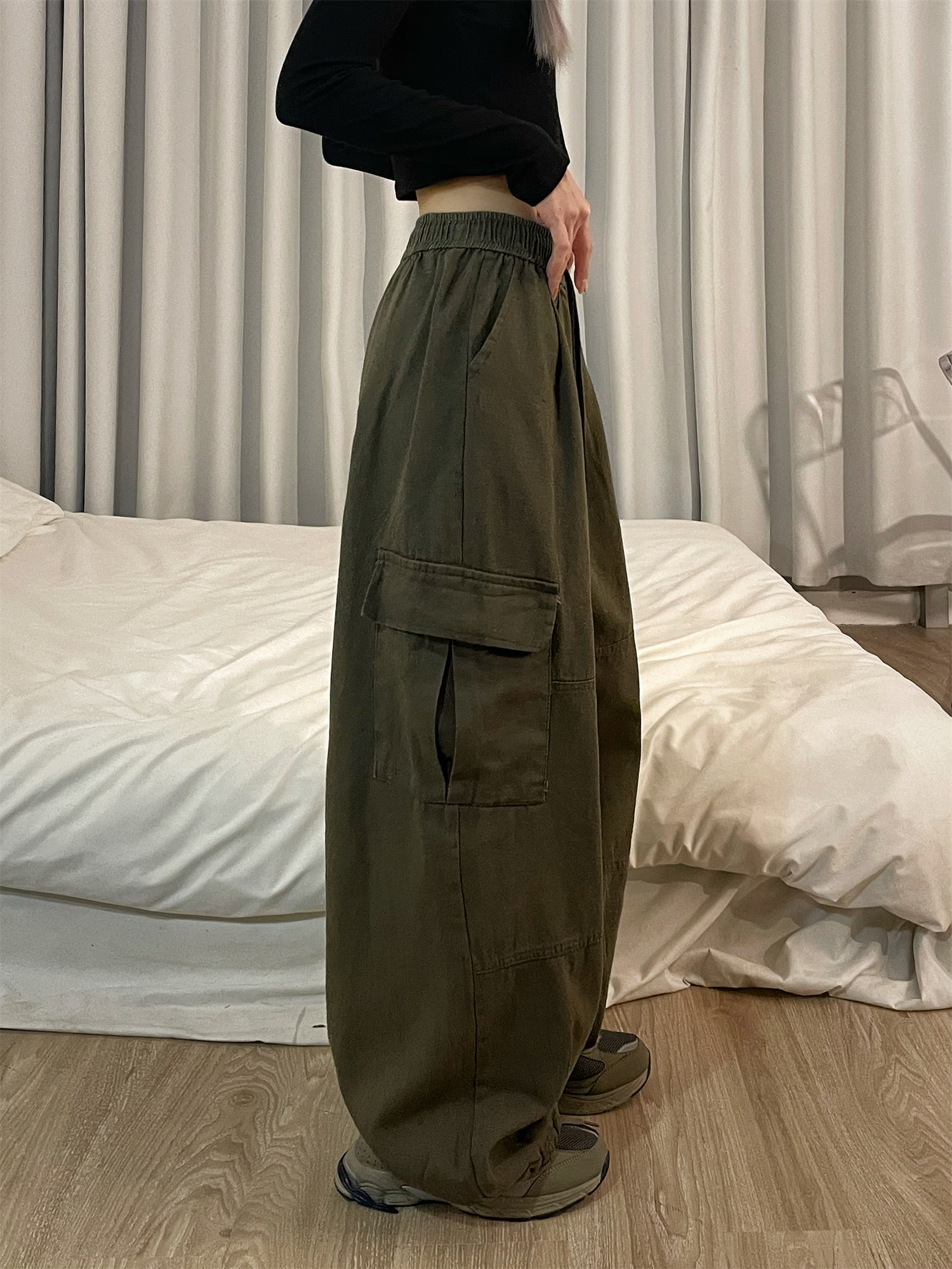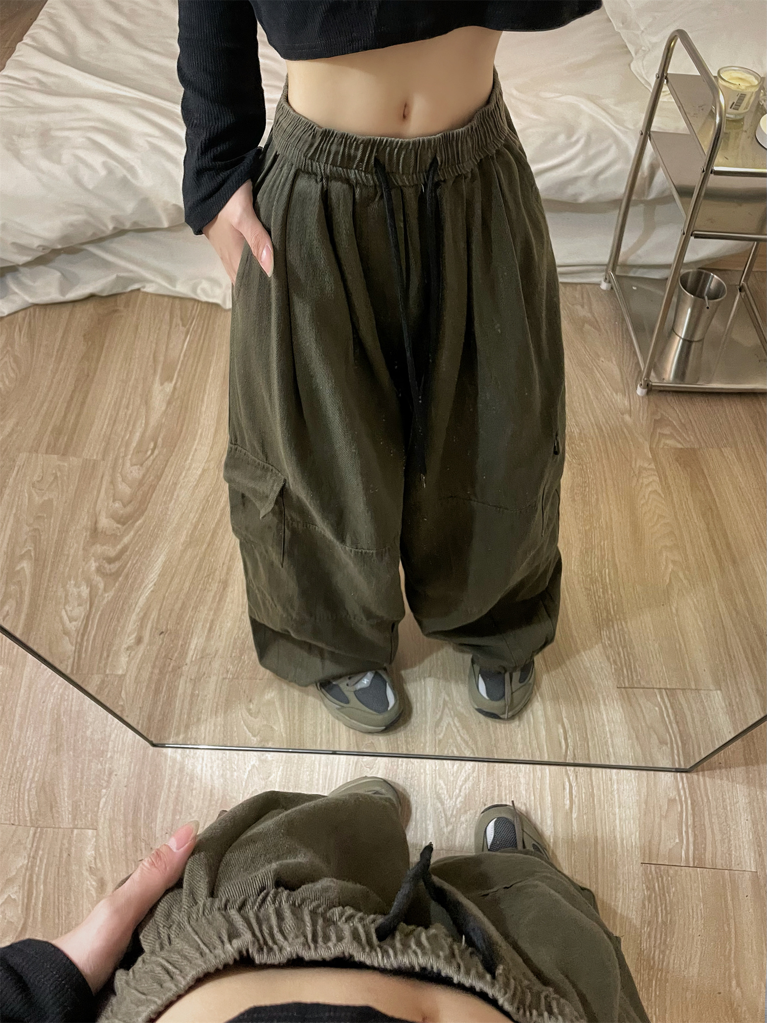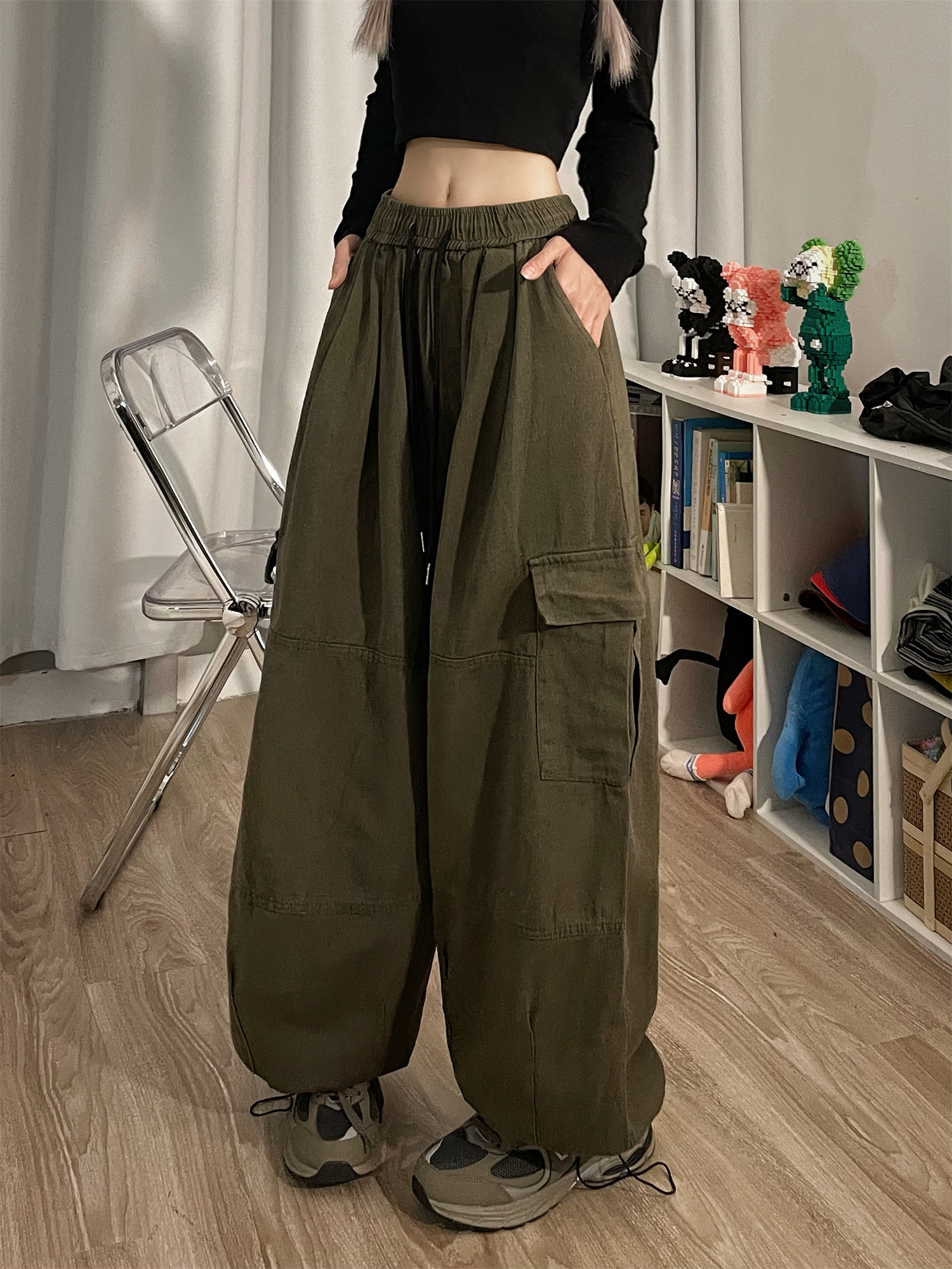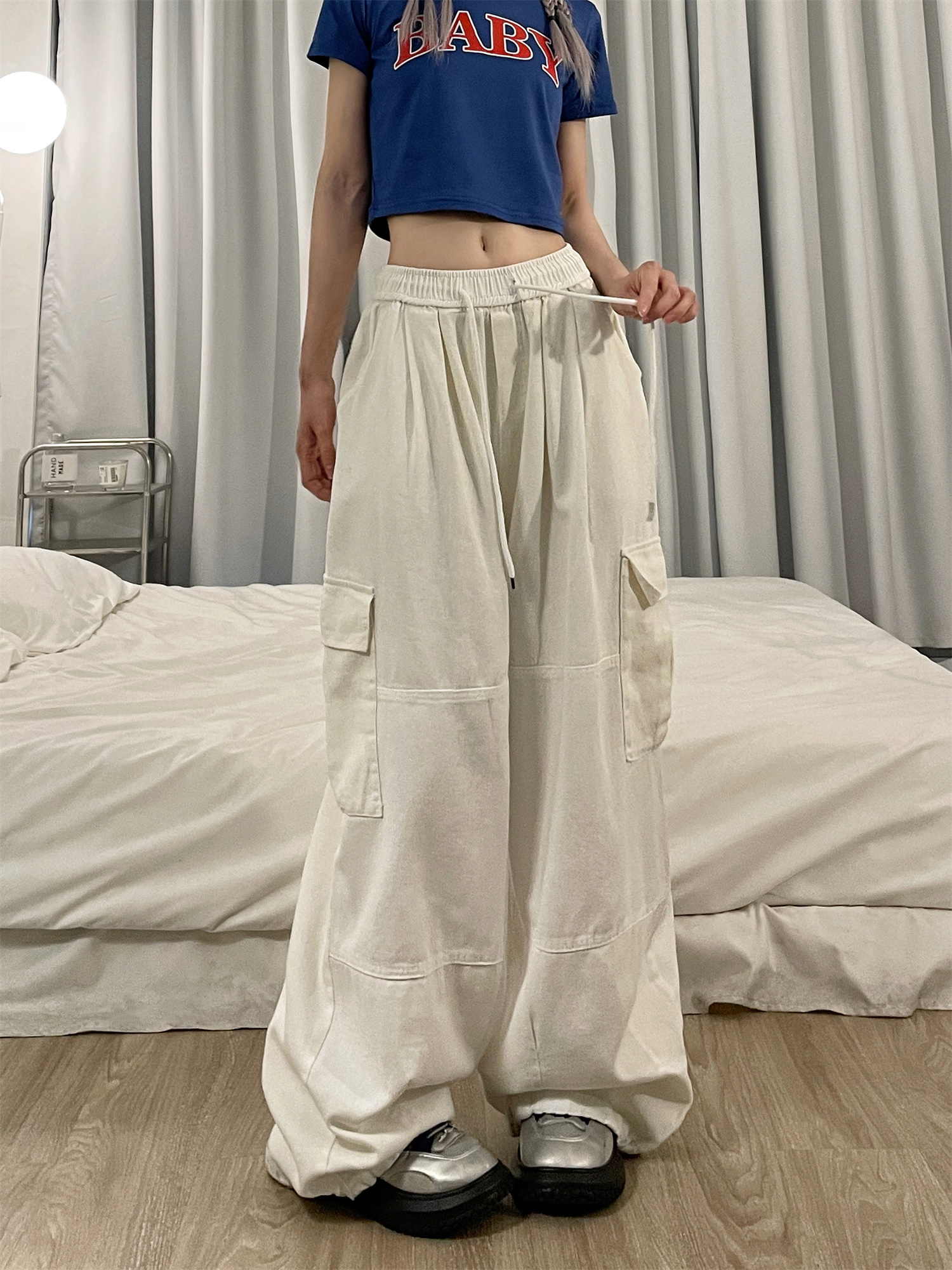 酷拽少女國潮復古工裝褲女闊腿拖地褲寬鬆顯瘦純棉休閒褲ins男女