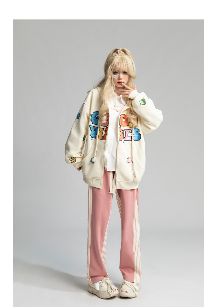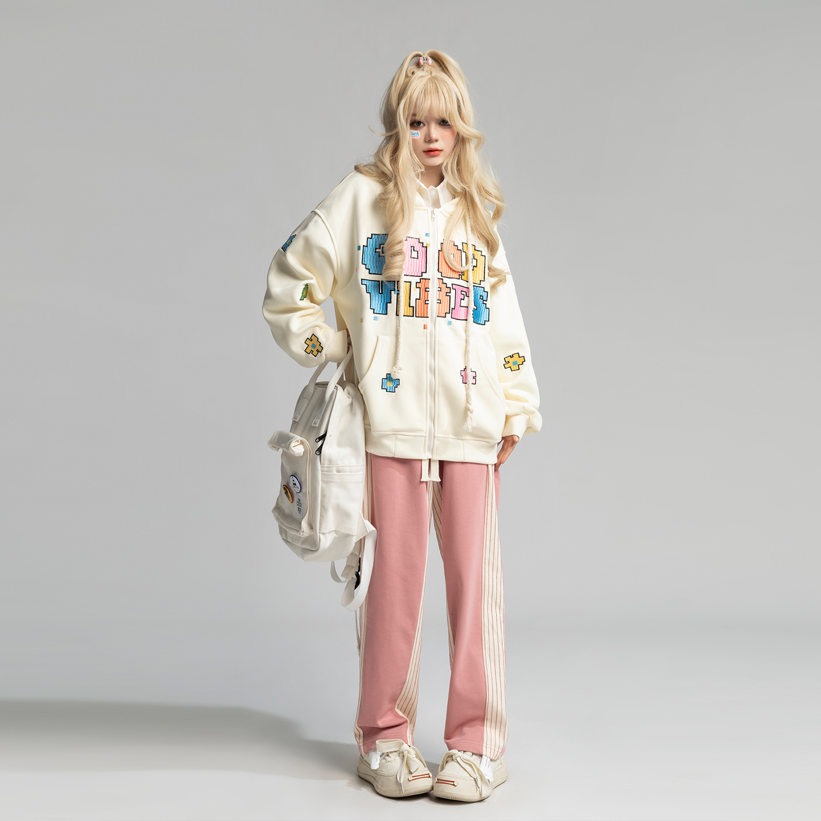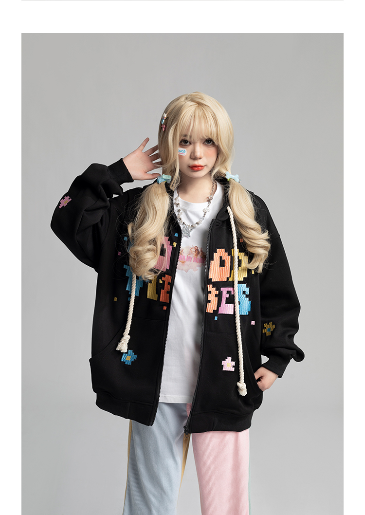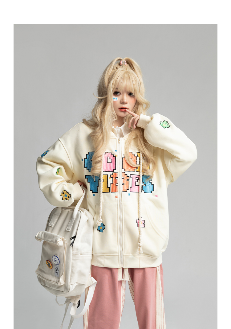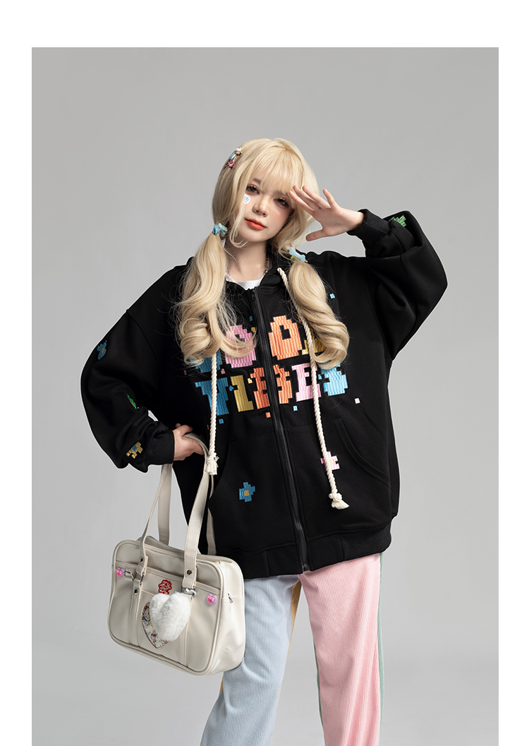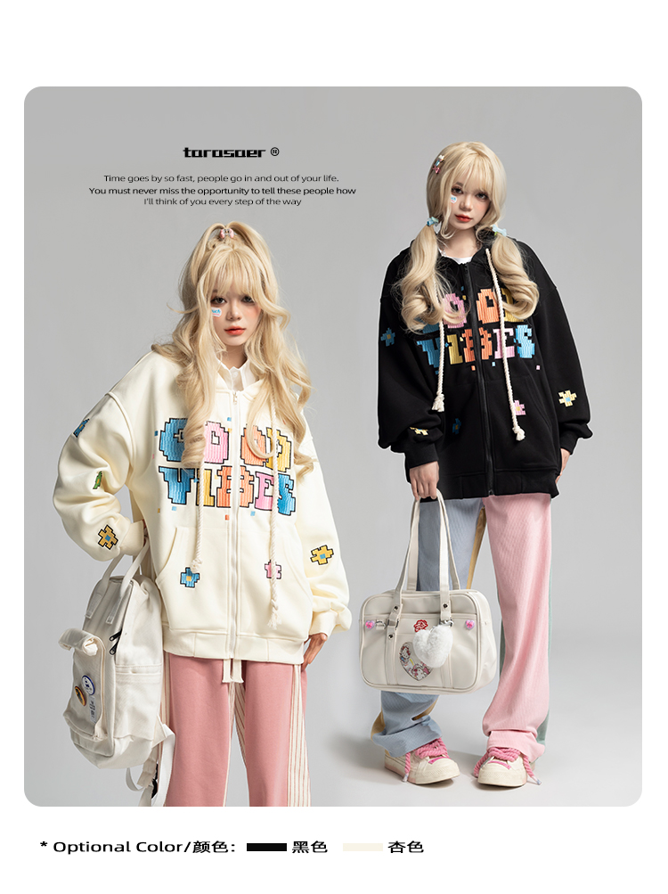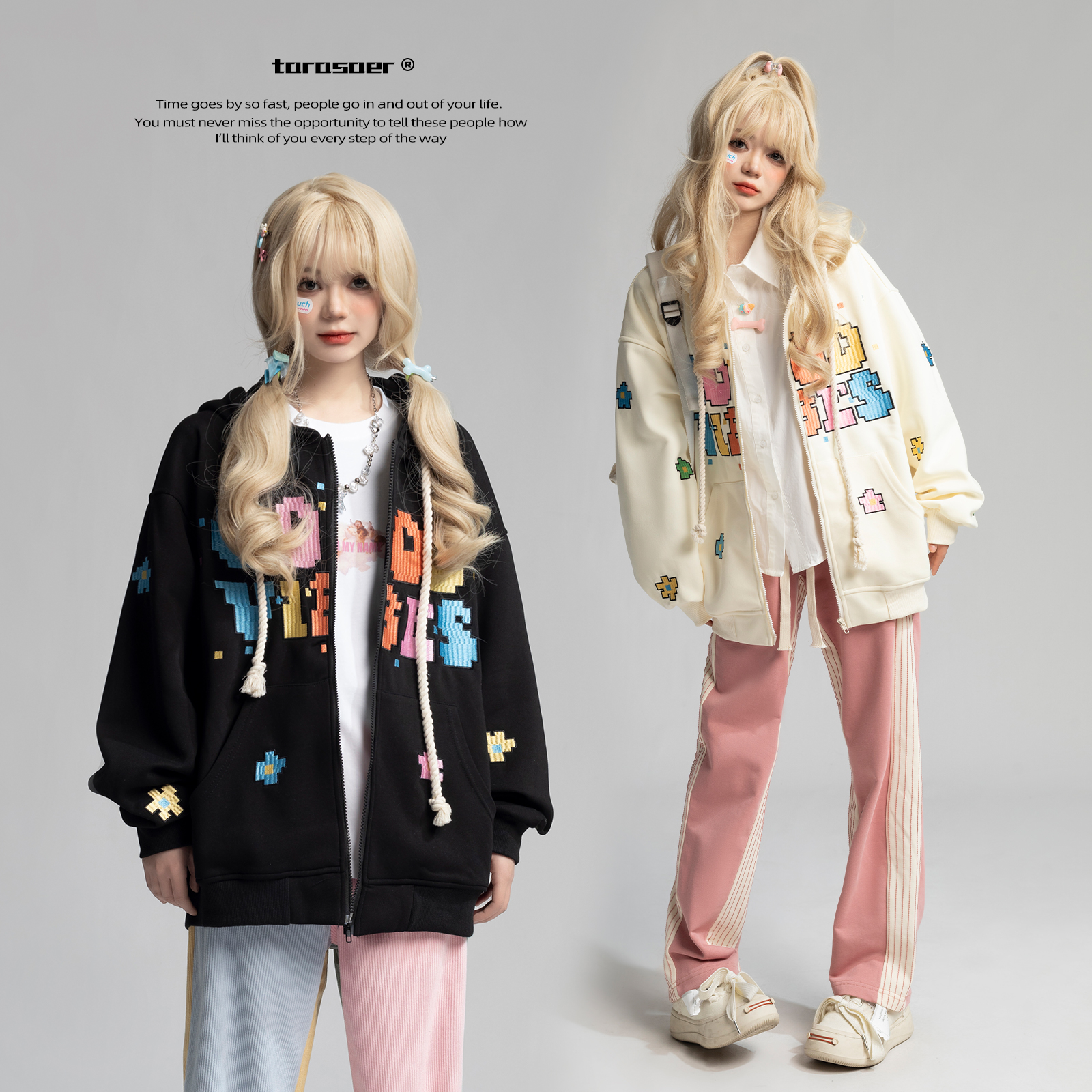 TARASAER國潮設計感字母開衫連帽外套女春季新款寬鬆百搭休閒厚棉