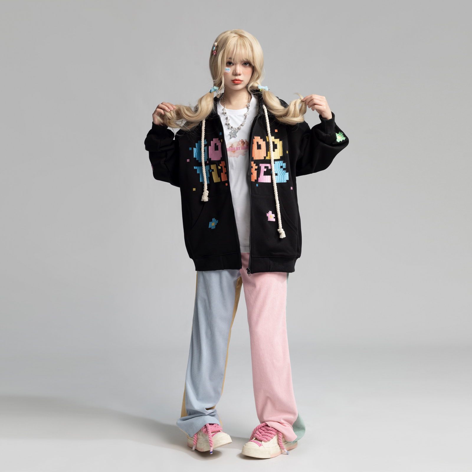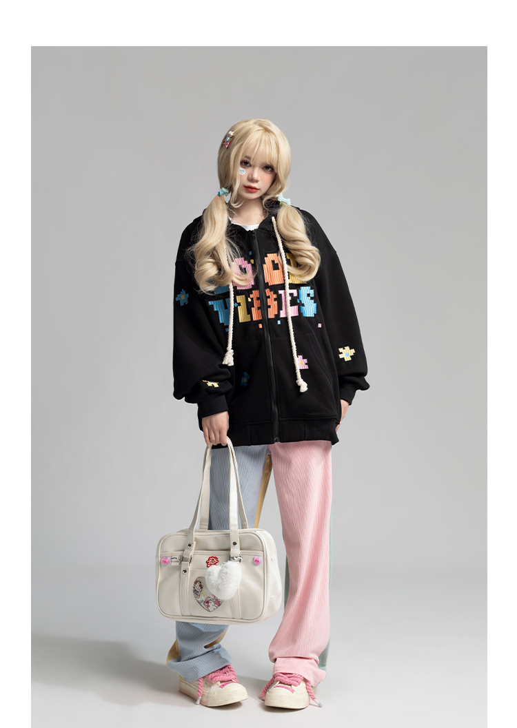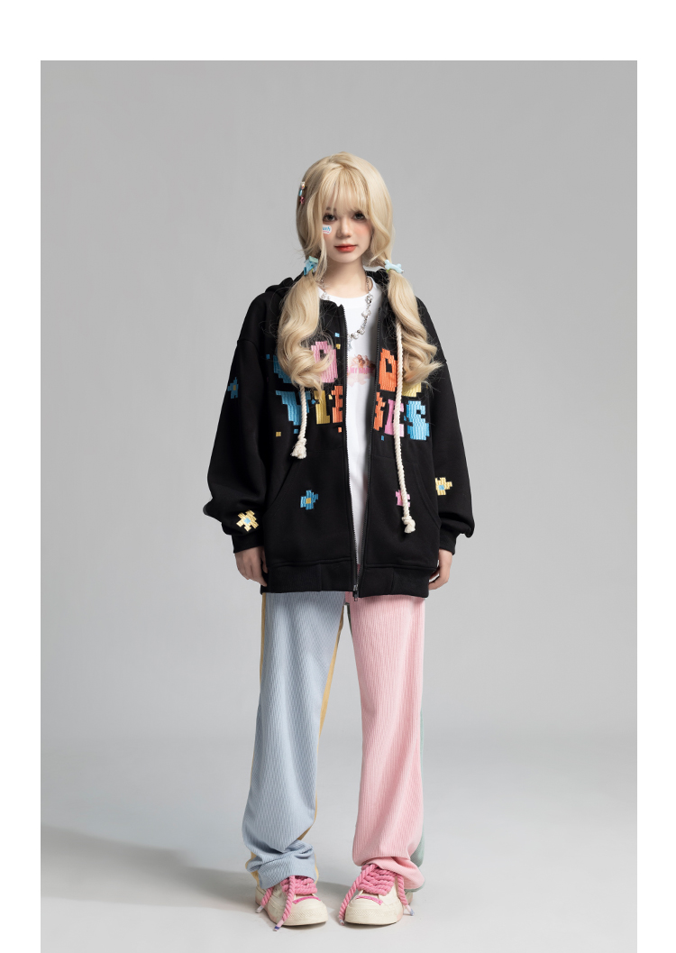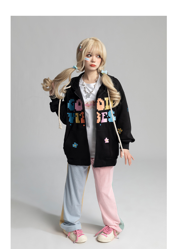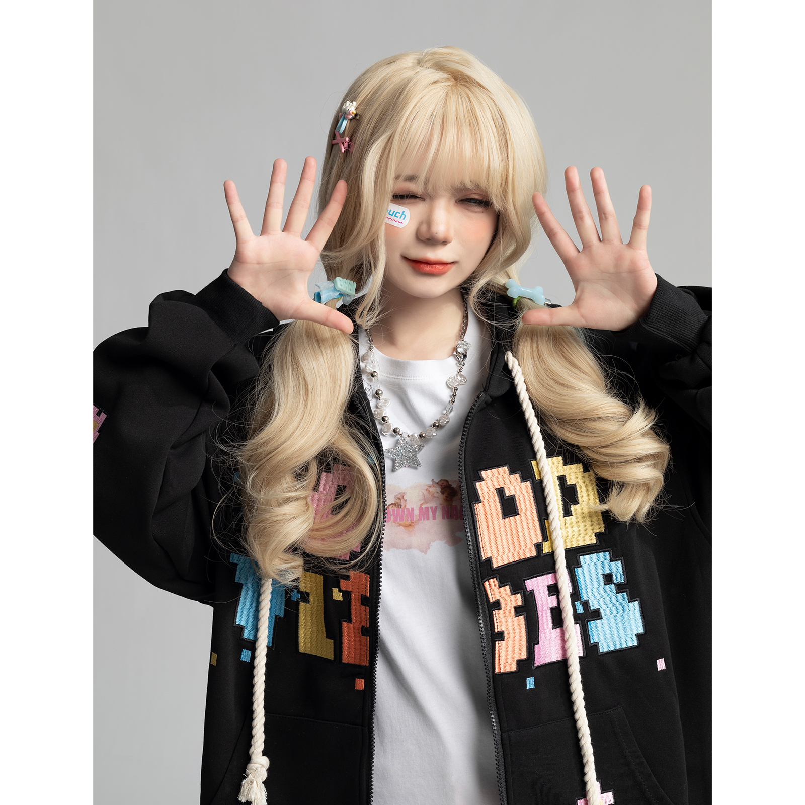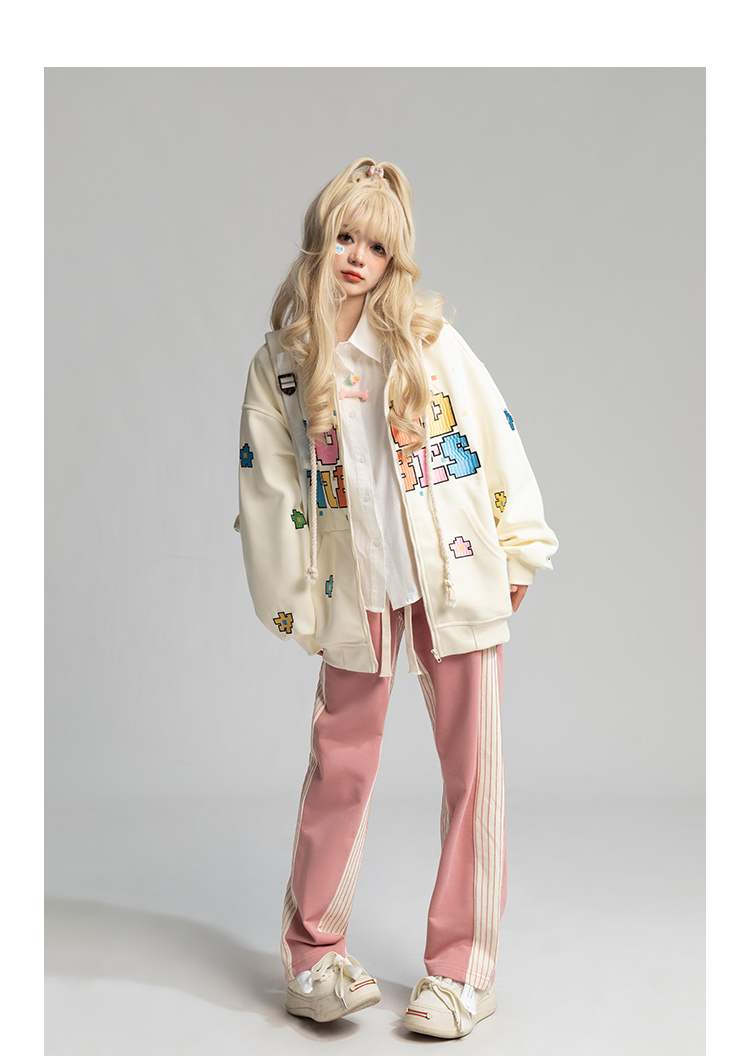 TARASAER國潮設計感字母開衫連帽外套女春季新款寬鬆百搭休閒厚棉